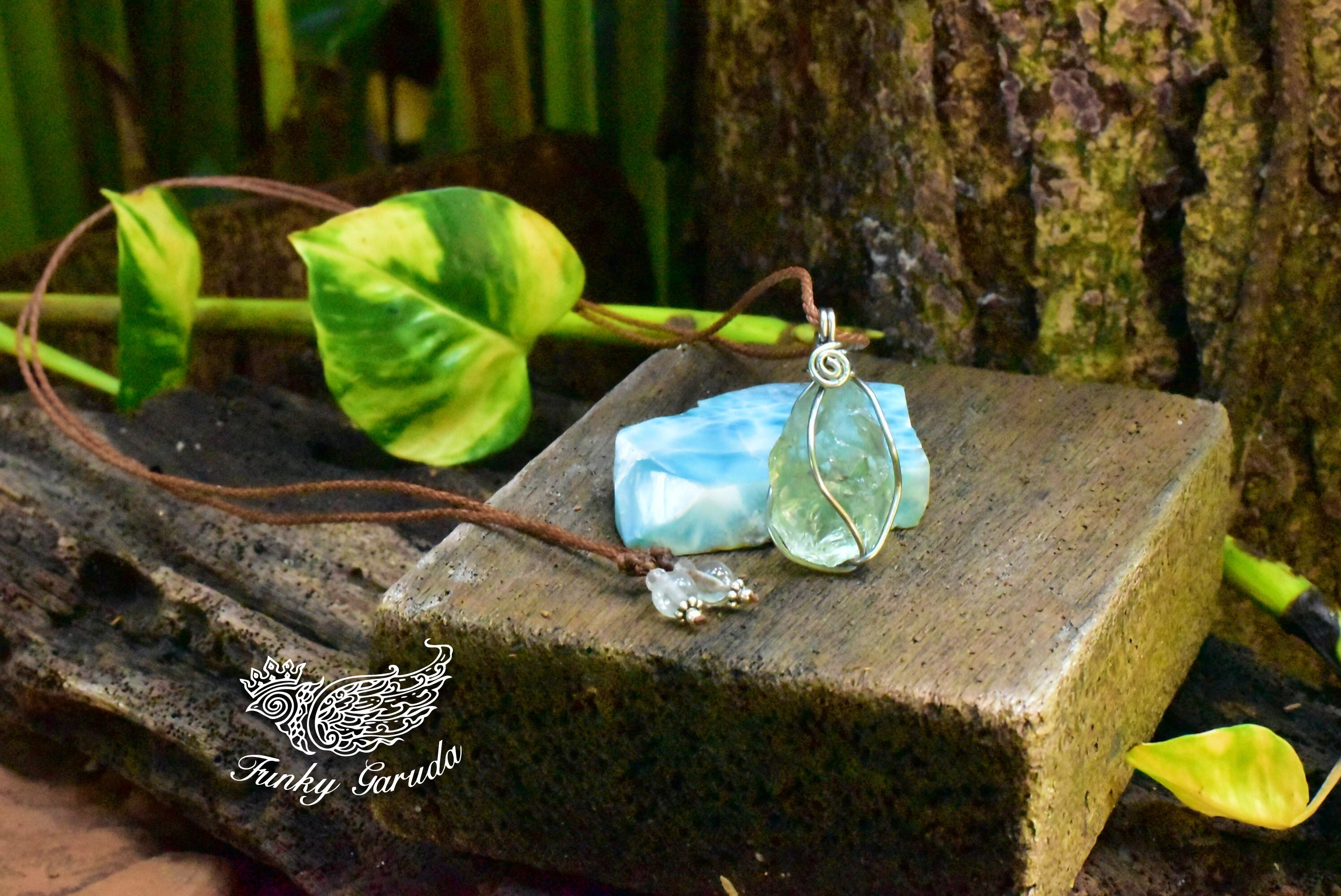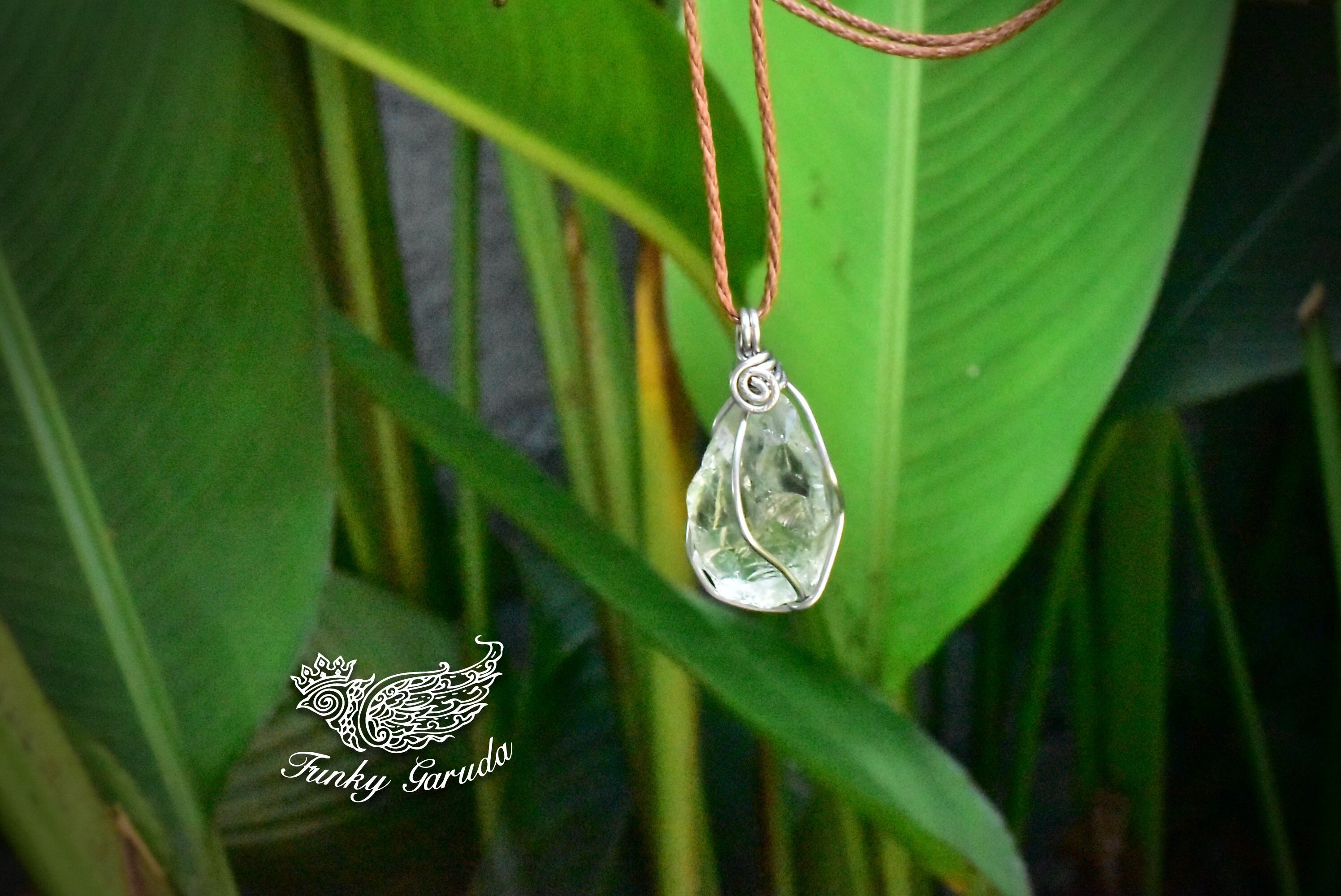 グリーンアメジスト(プラシオライト) 原石 ワイヤーアートペンダントgame002
