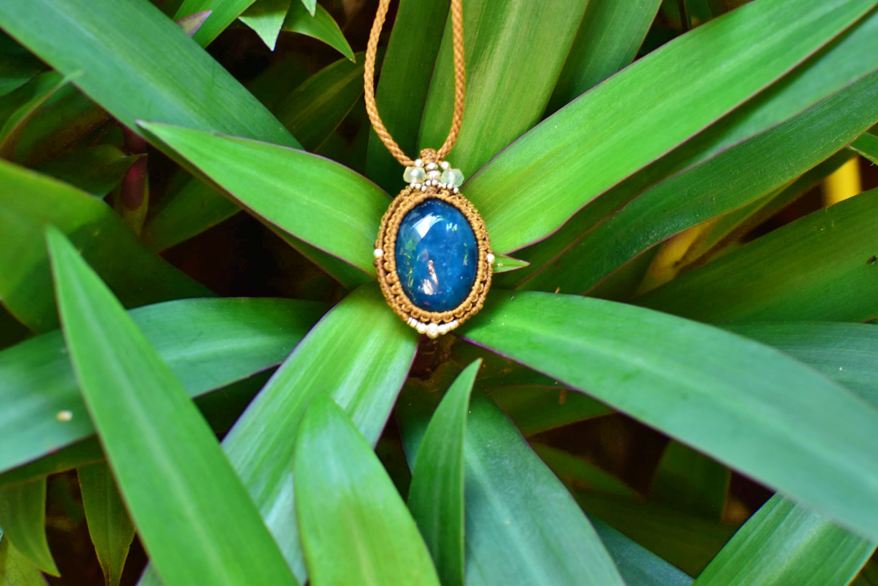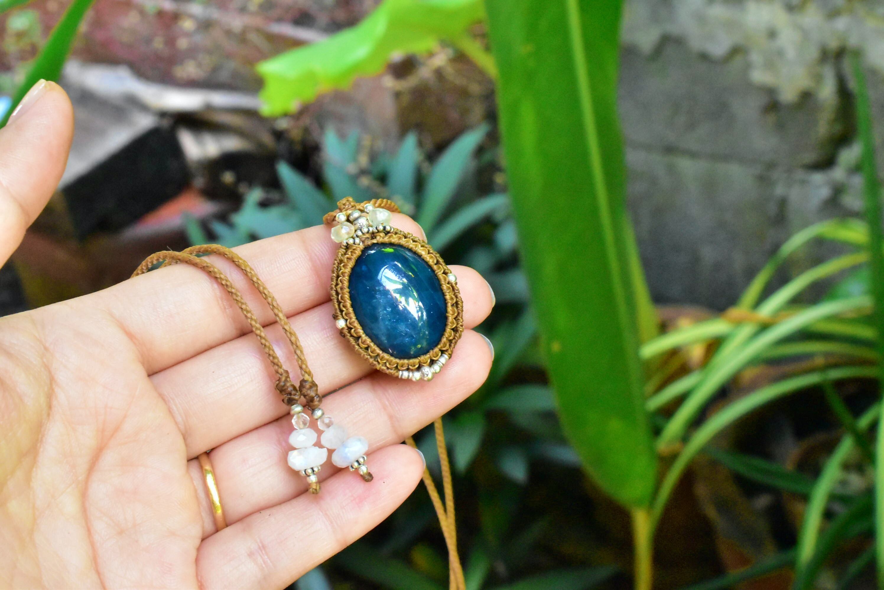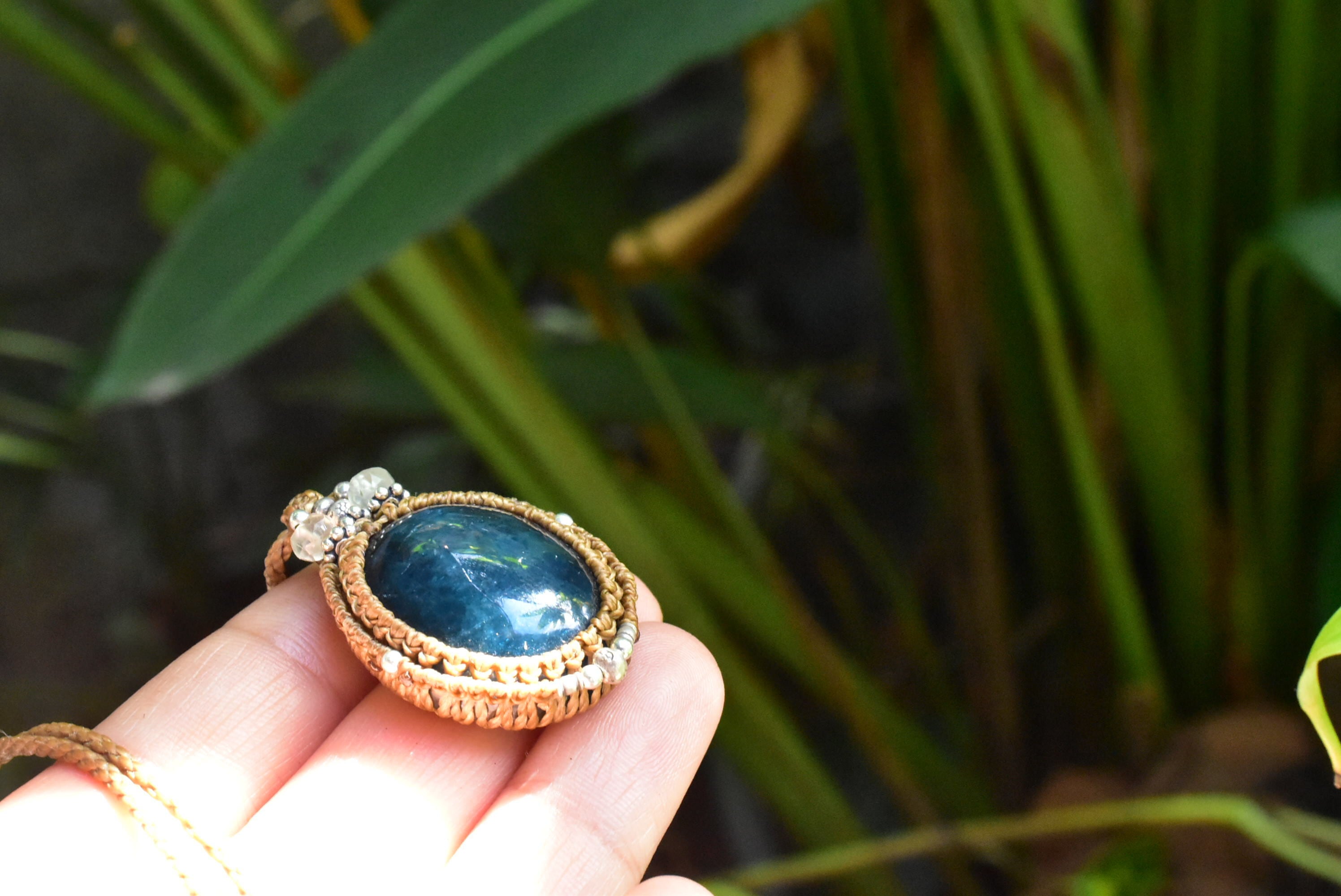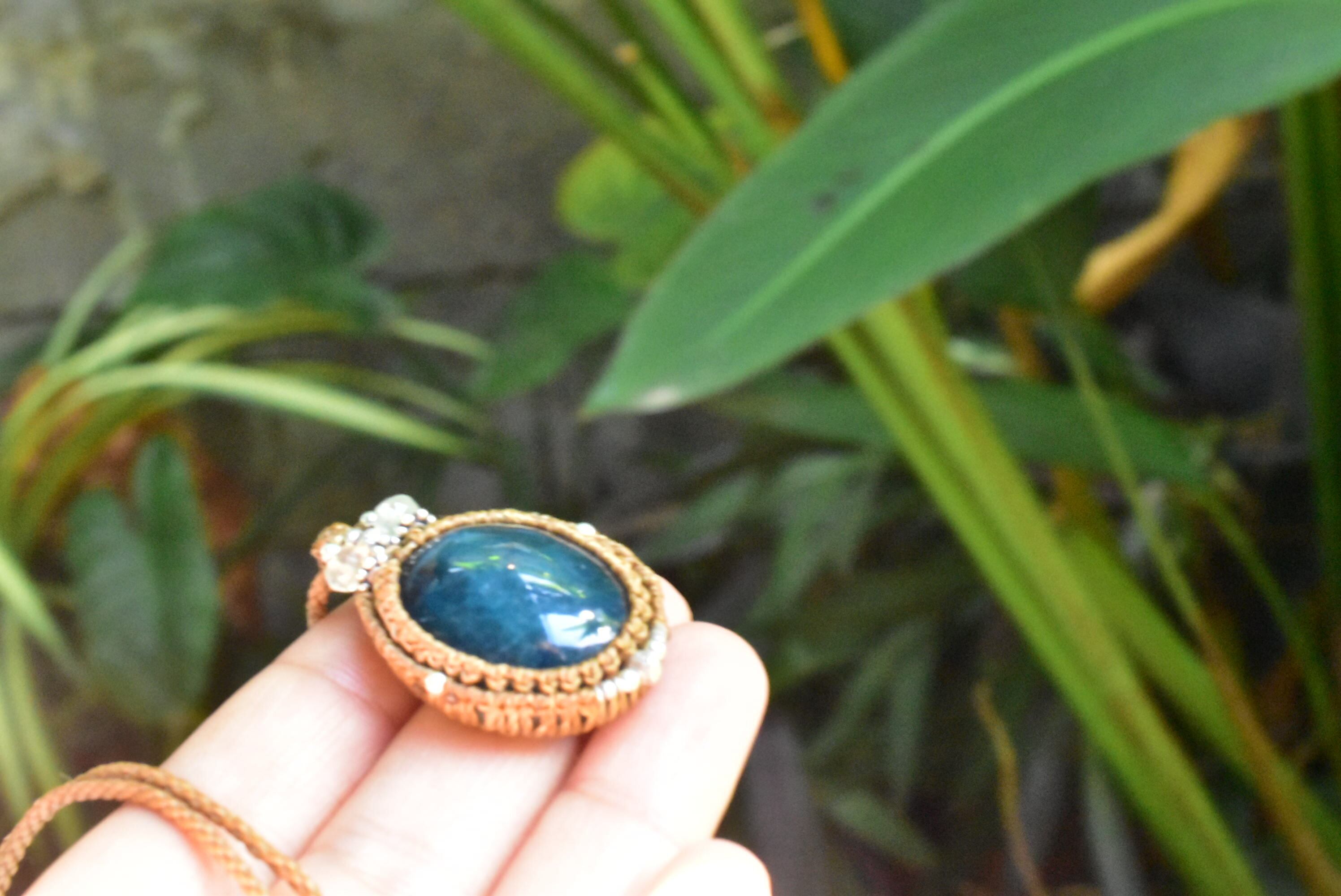高品質★透け感とキャッツアイシラー★ブルーアパタイト マクラメペンダントapa007