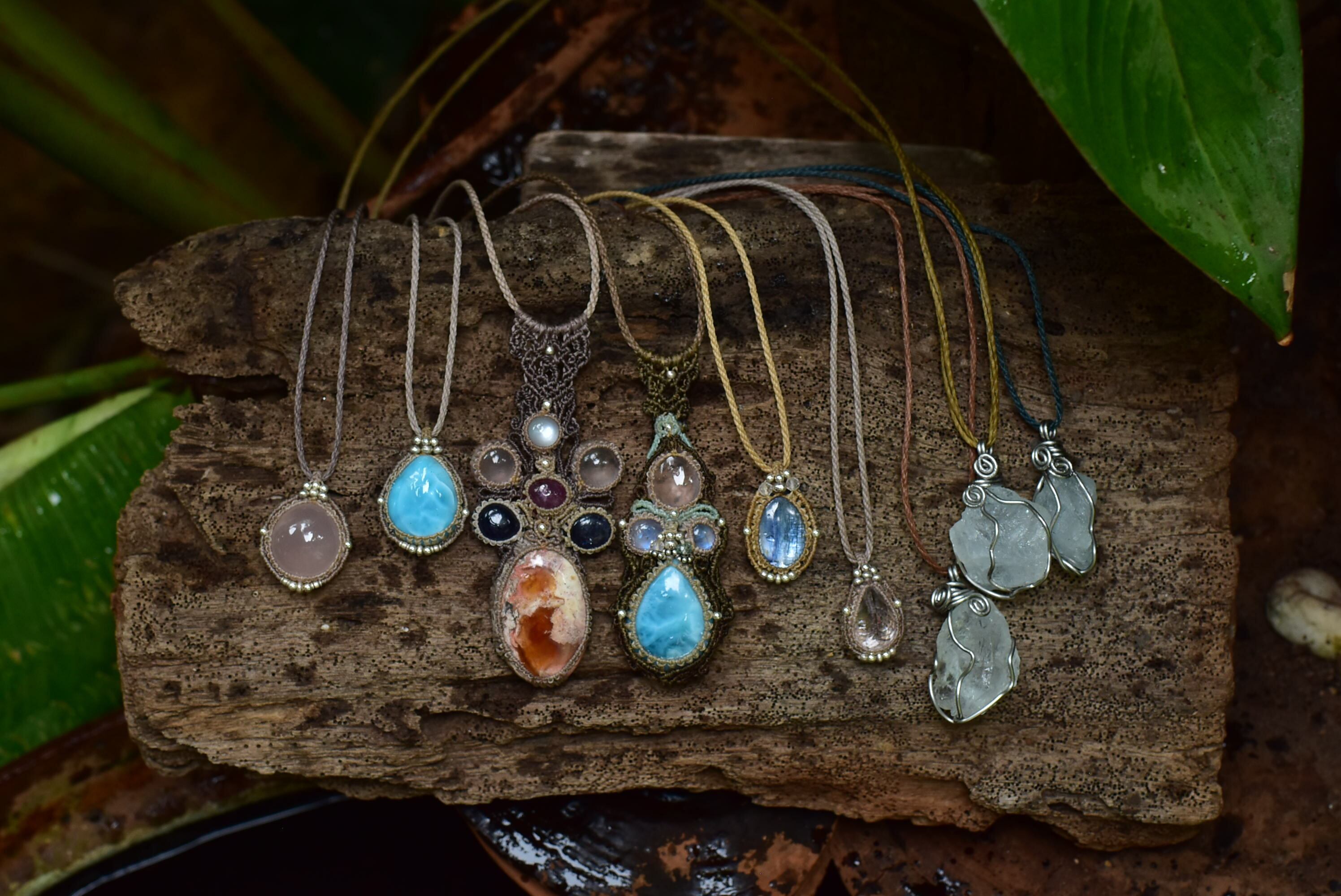 自然の原石の天然石の形をフォローしたワイヤーワークをお楽しみください。