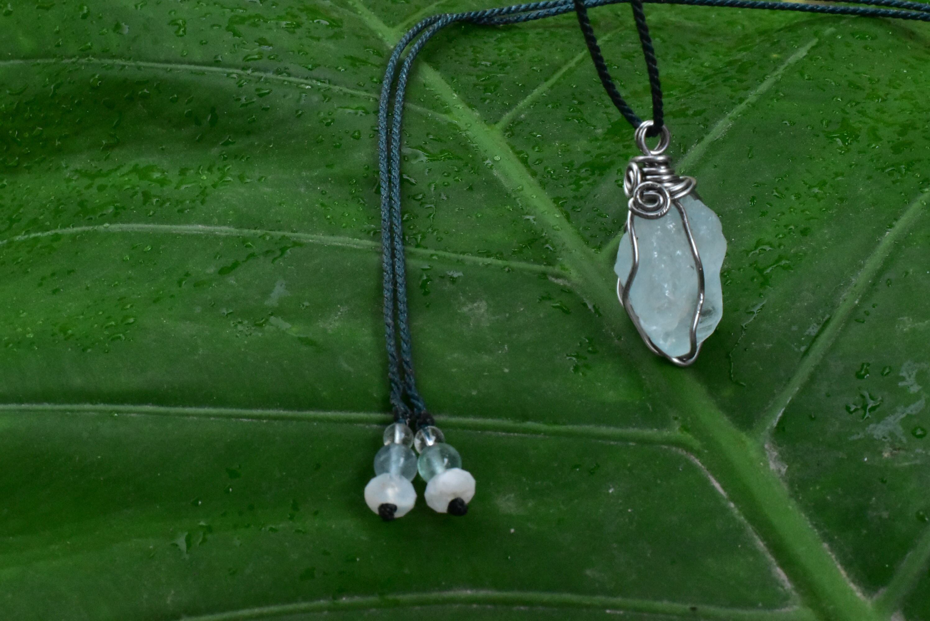 透明感溢れるアクアマリンの原石を使用しています。