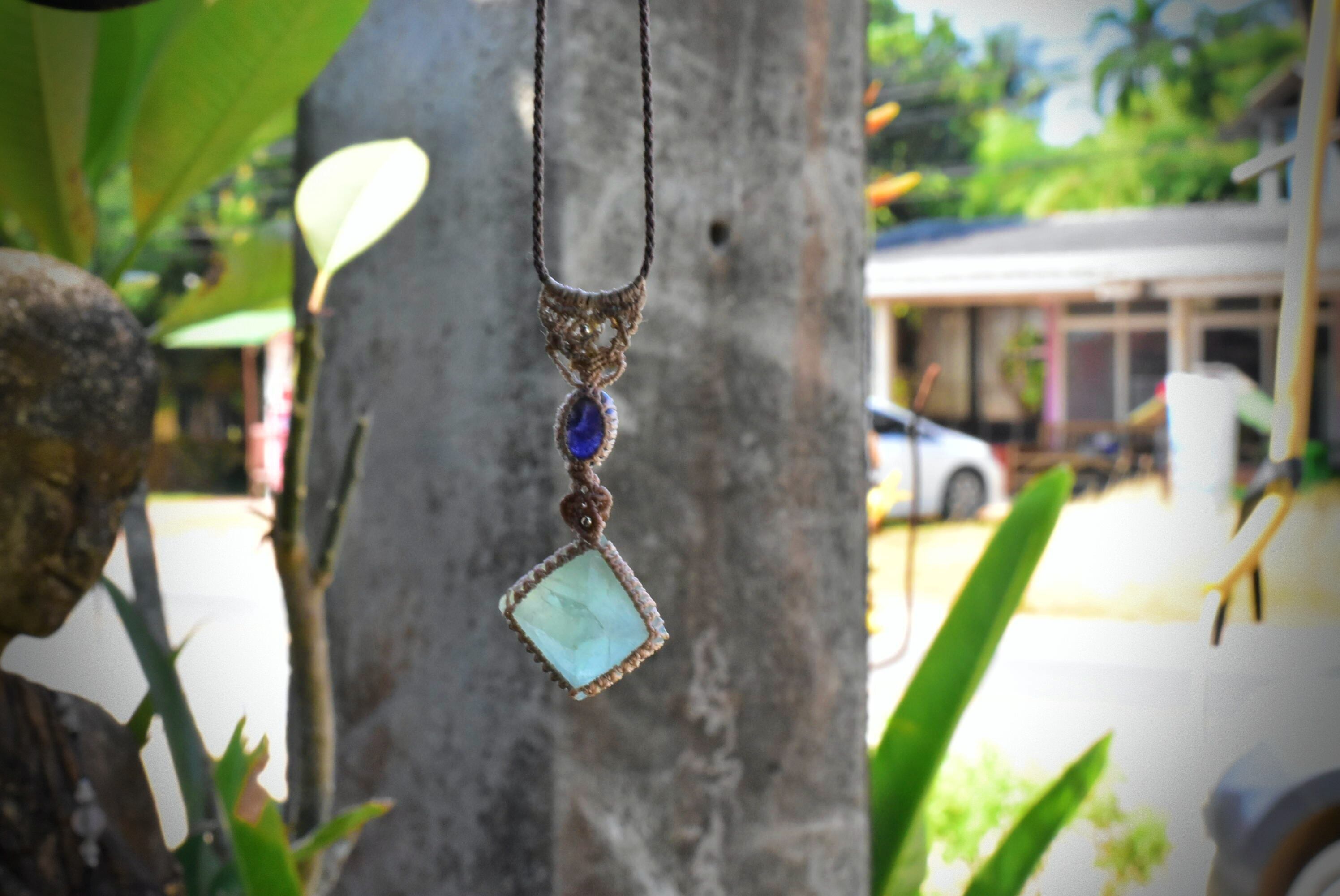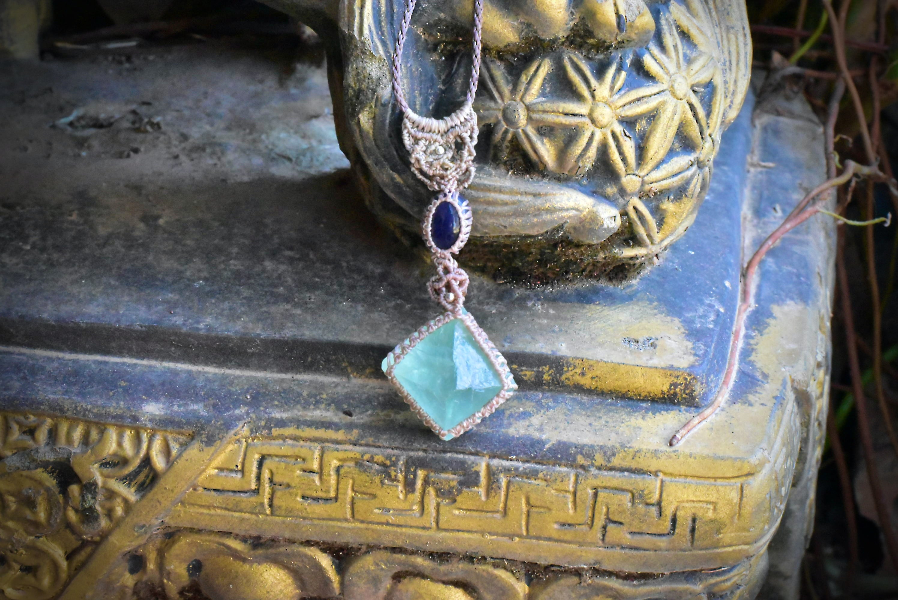 水の滴り★アイオライト+フローライト マクラメネックレスaio010