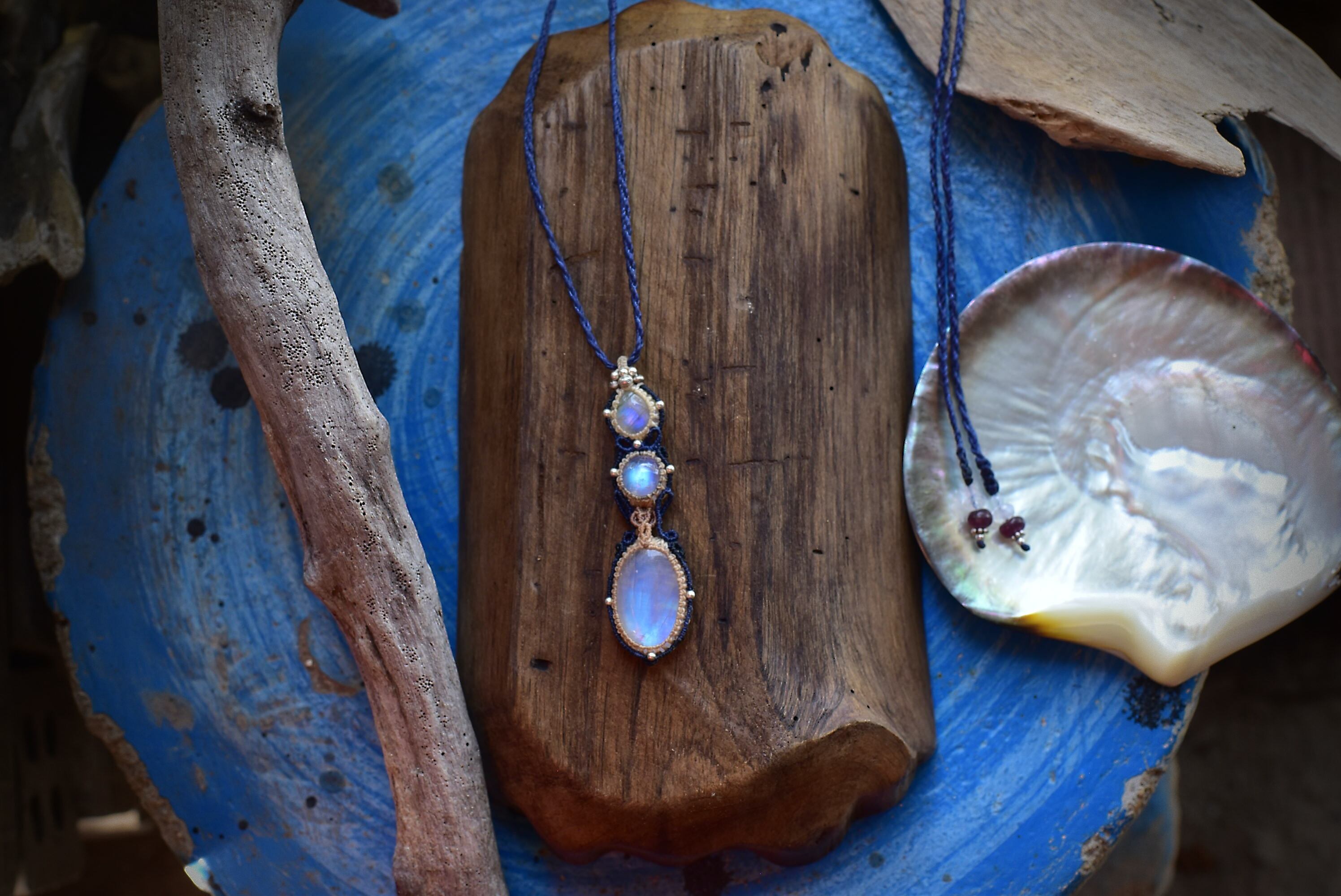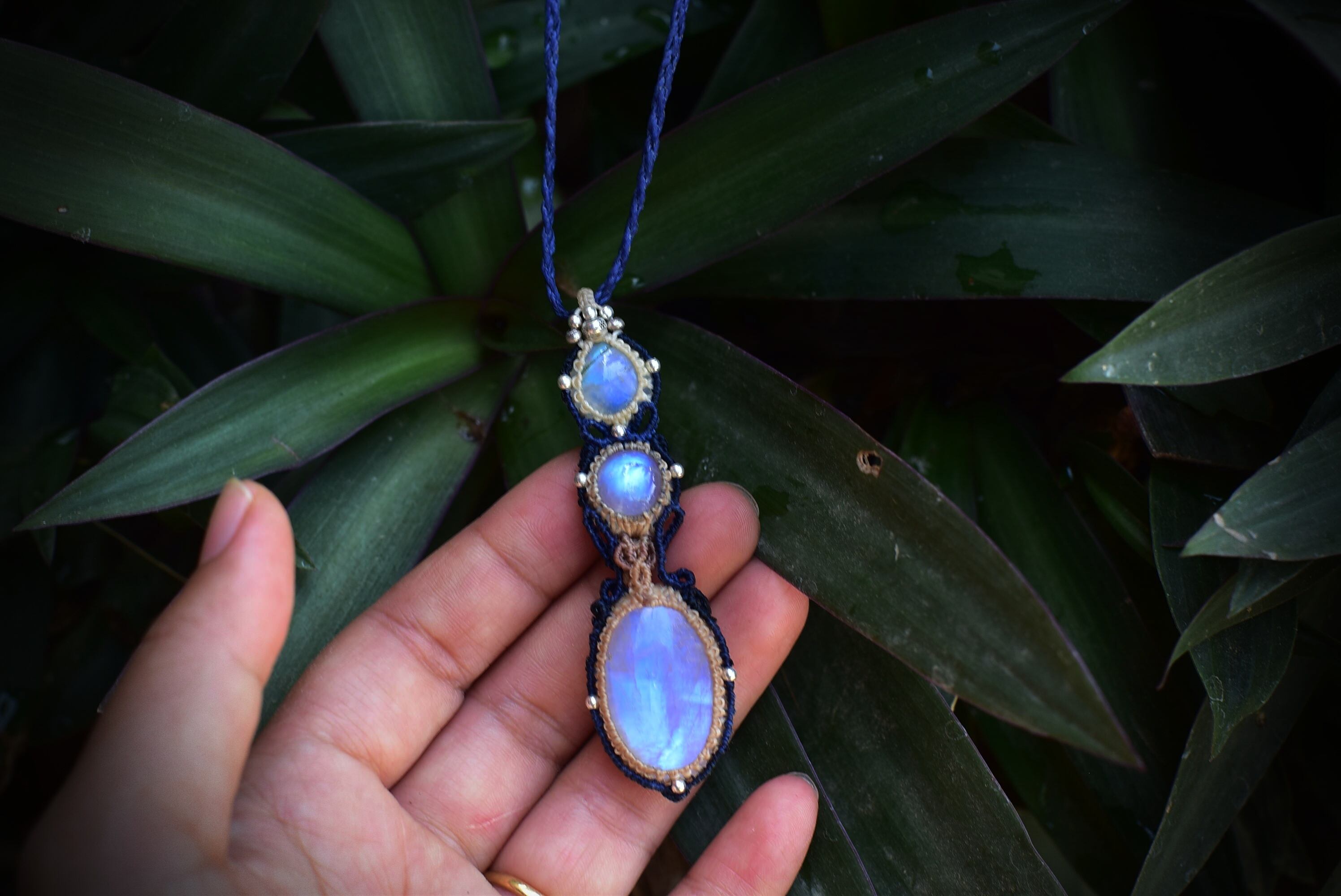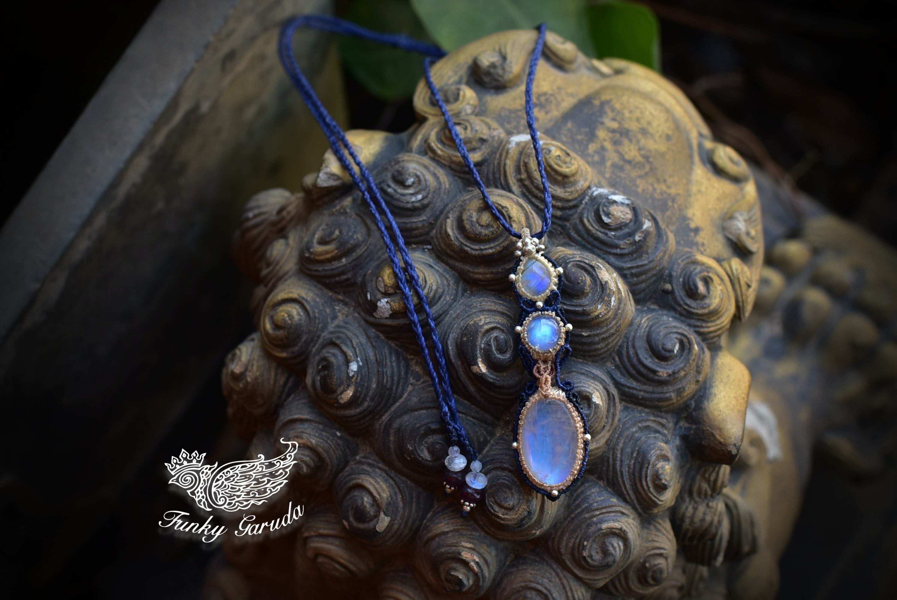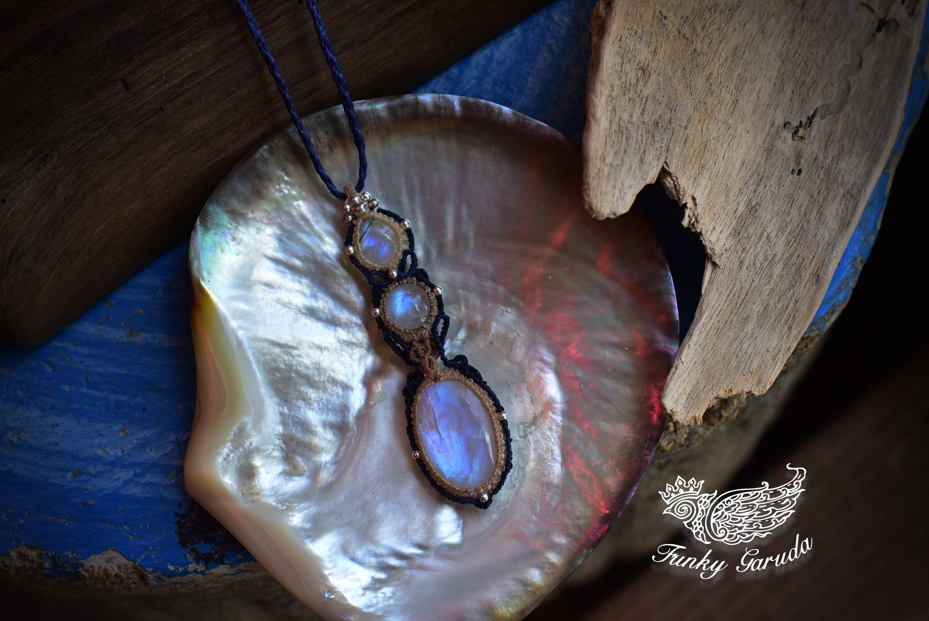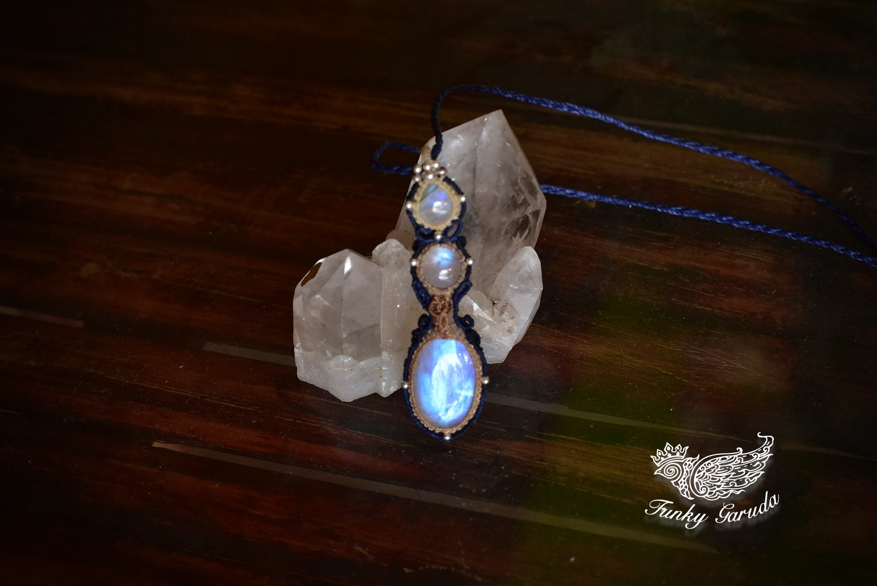 3つの月★ブルームーンストーン マクラメペンダントmoon039