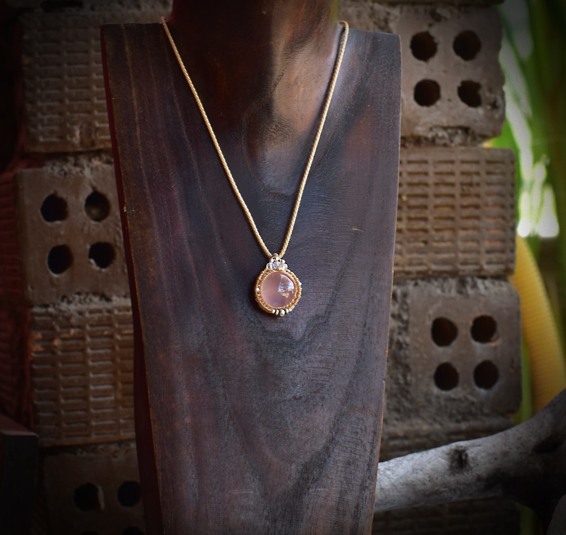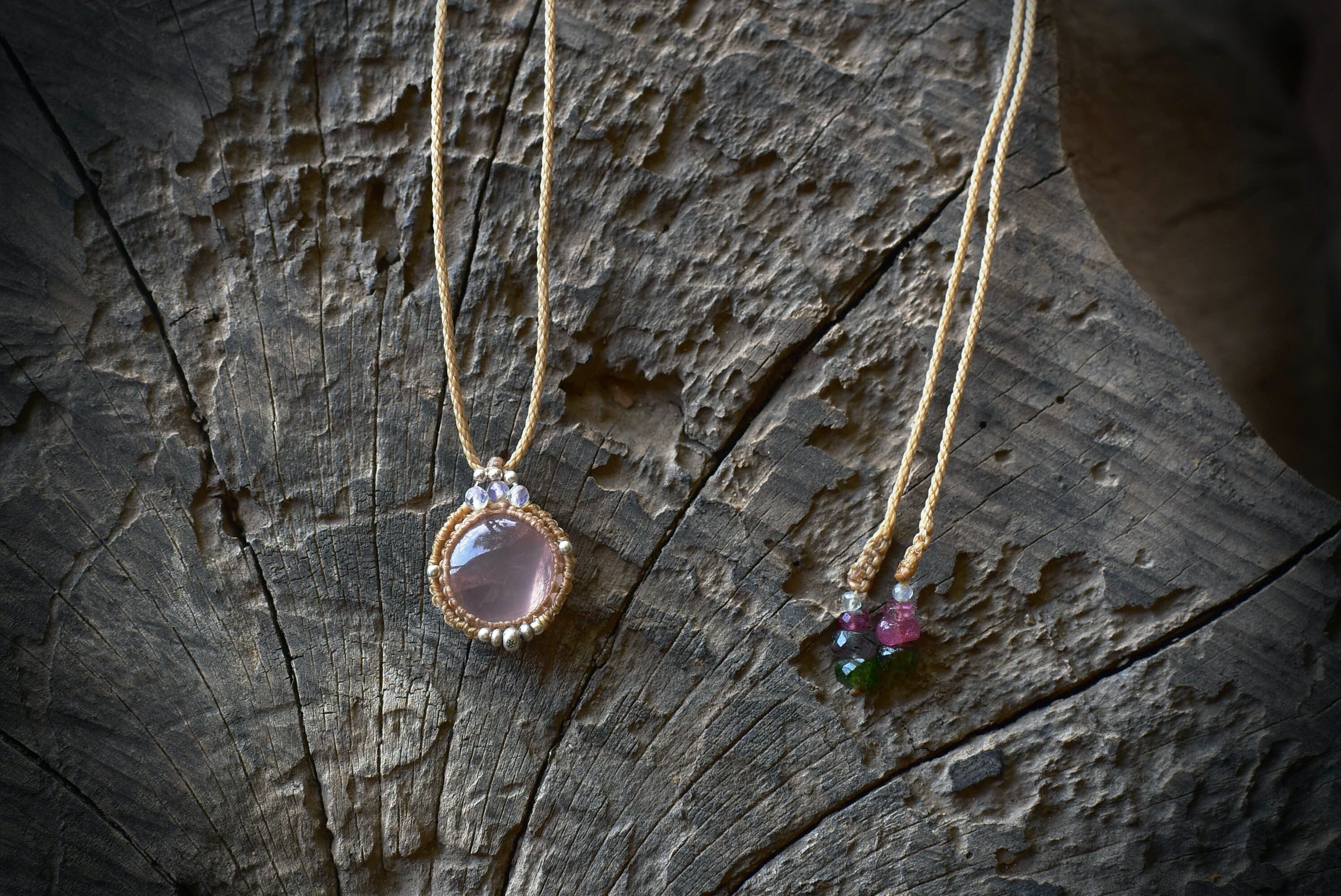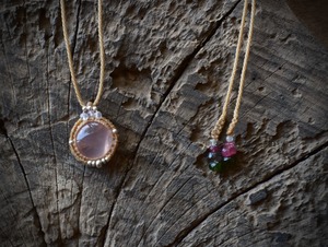 ピンクの呟き★小粒スターローズクォーツ シンプルマクラメペンダントsrose010