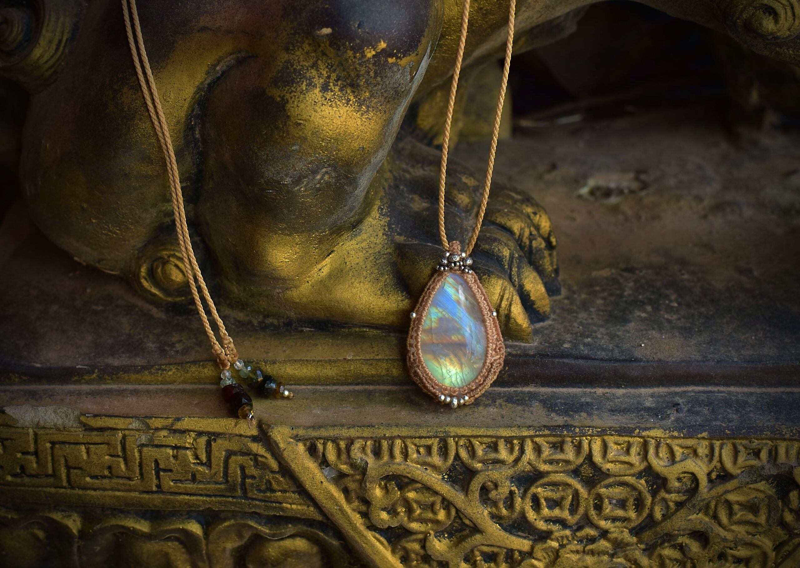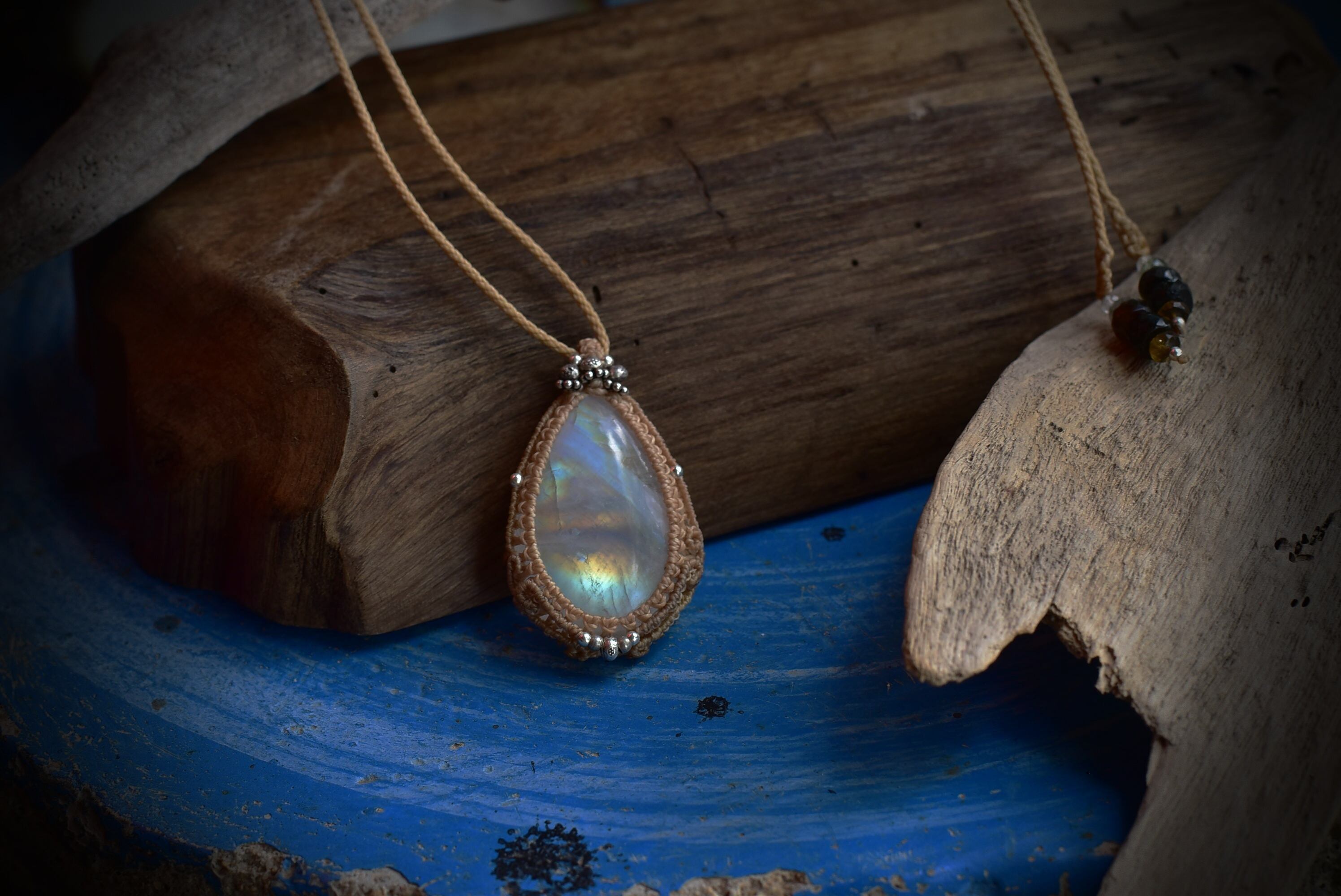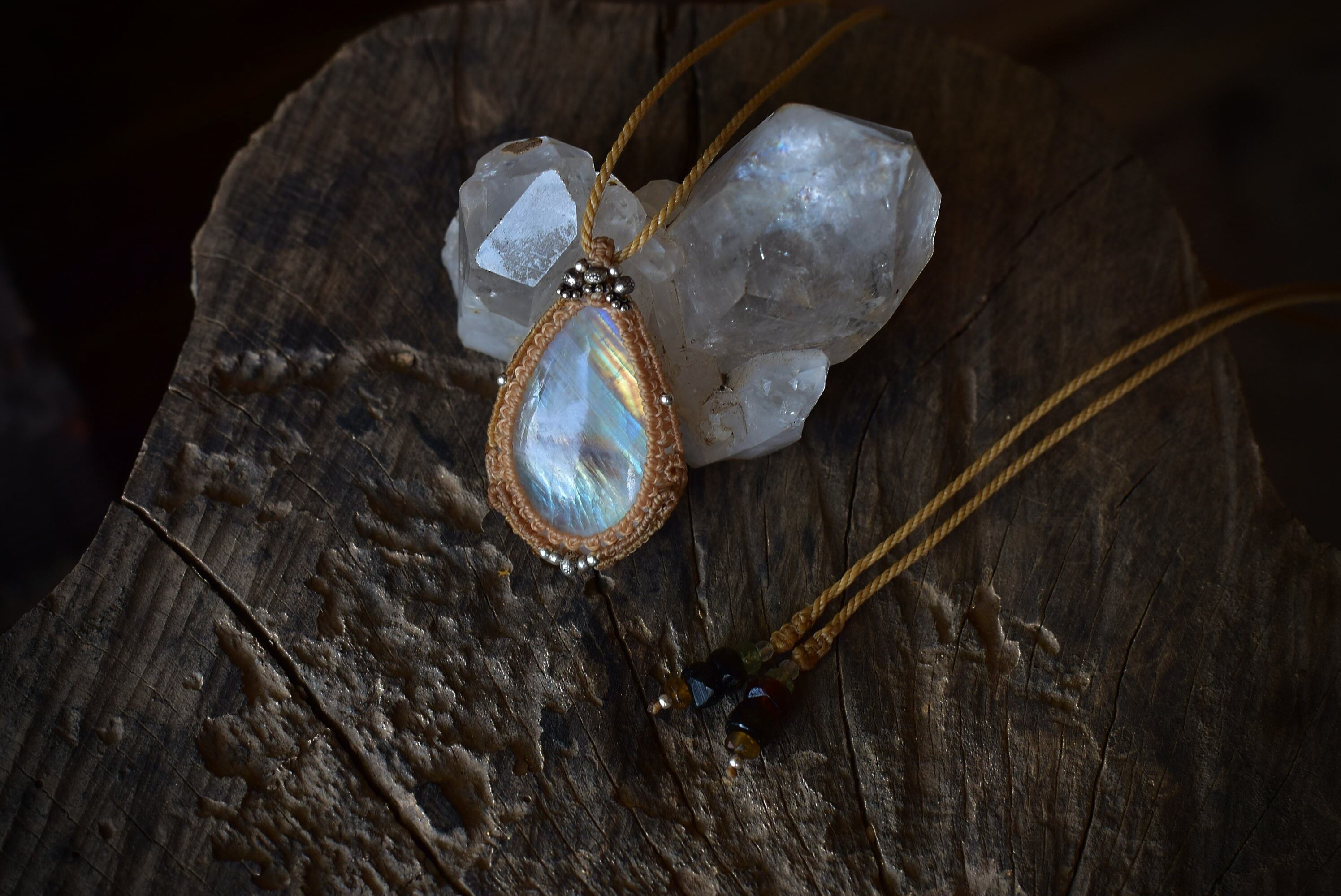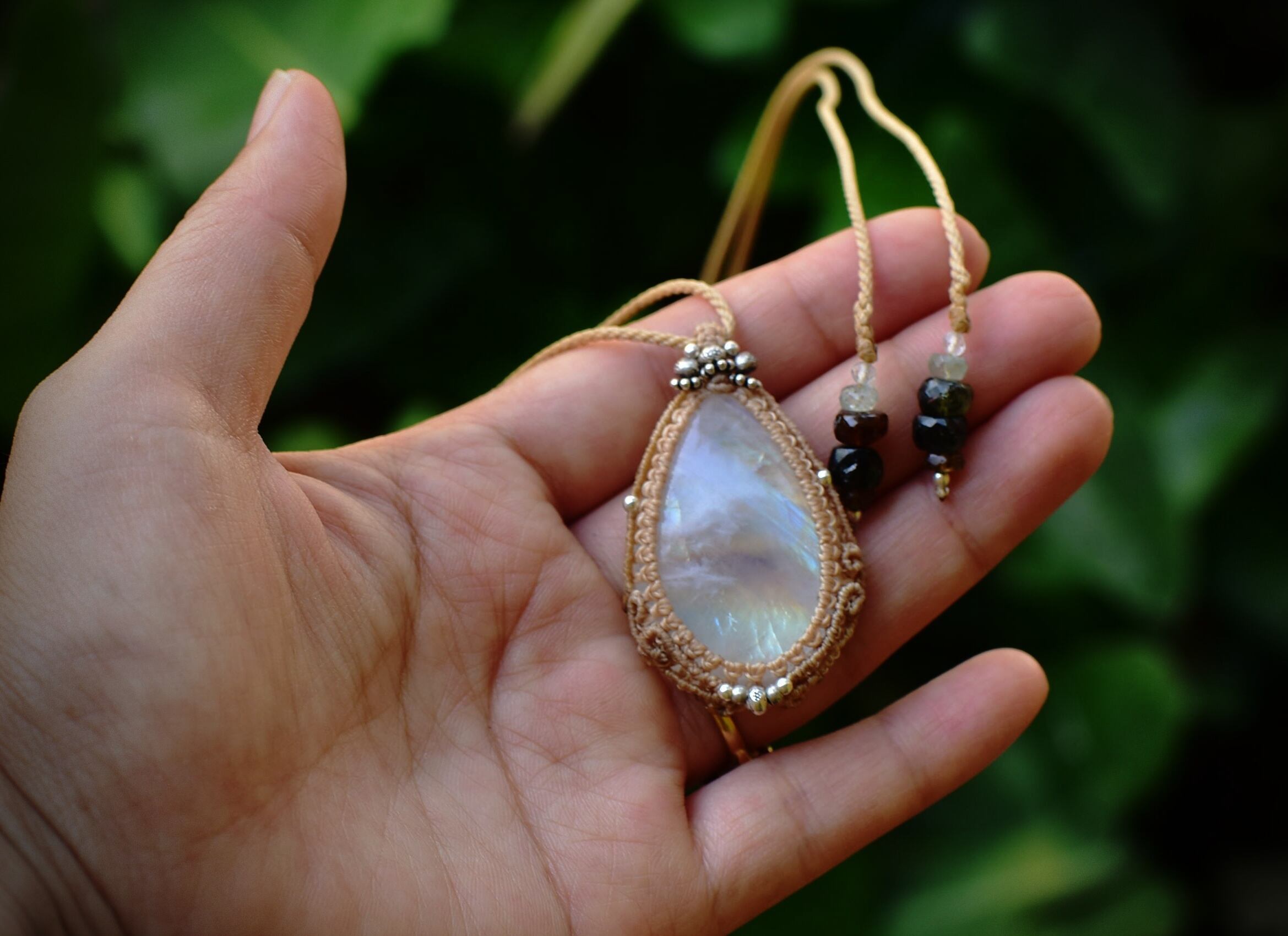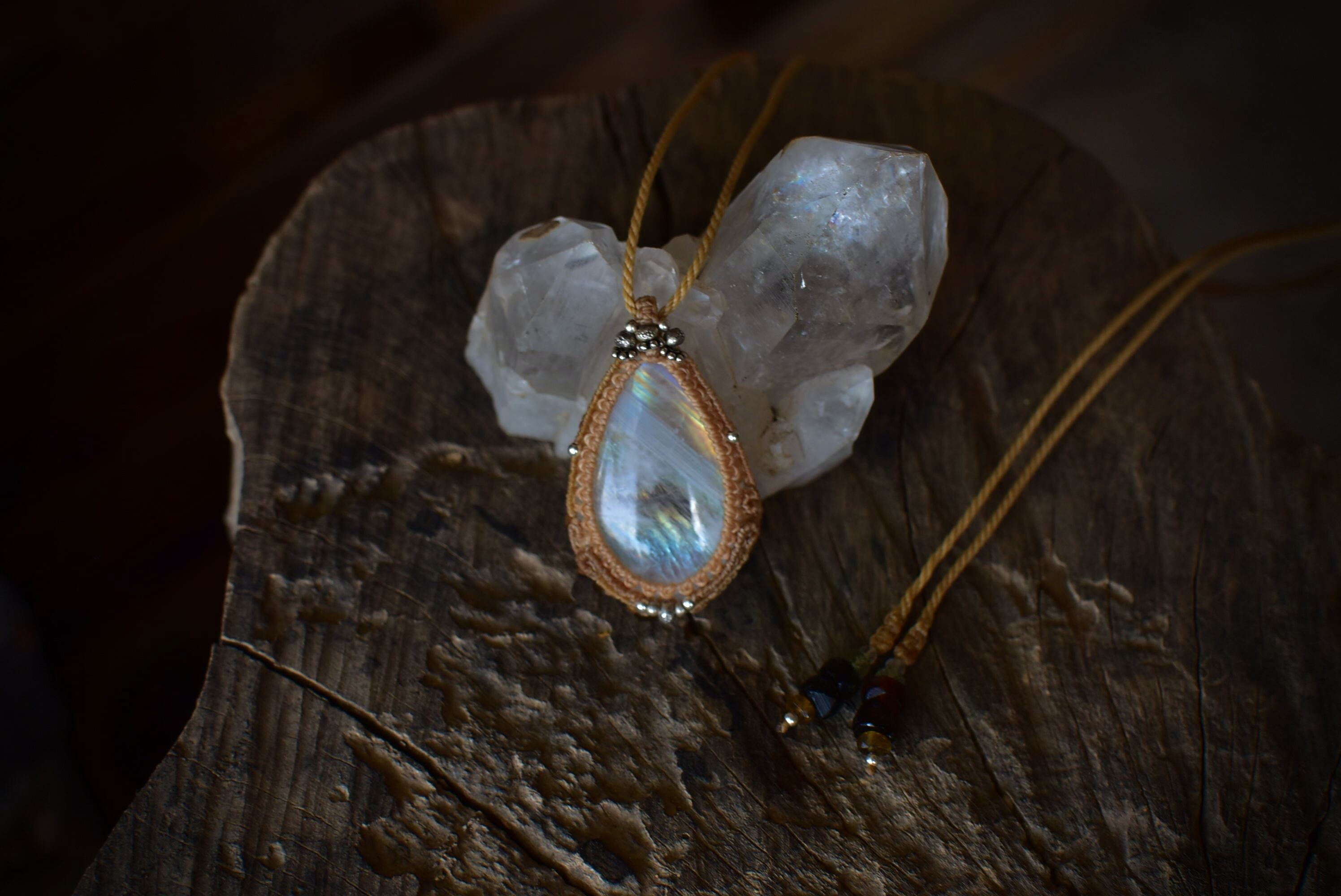 天使のシラー★レインボームーンストーン マクラメペンダントmoon041