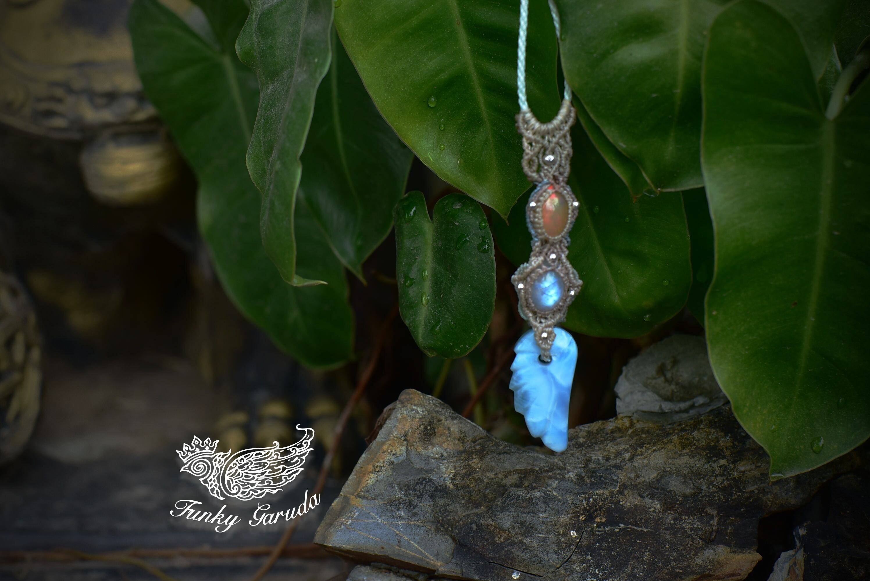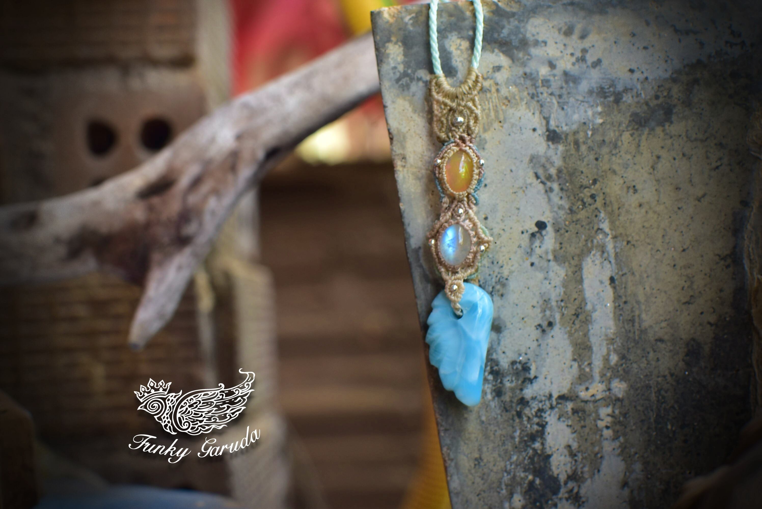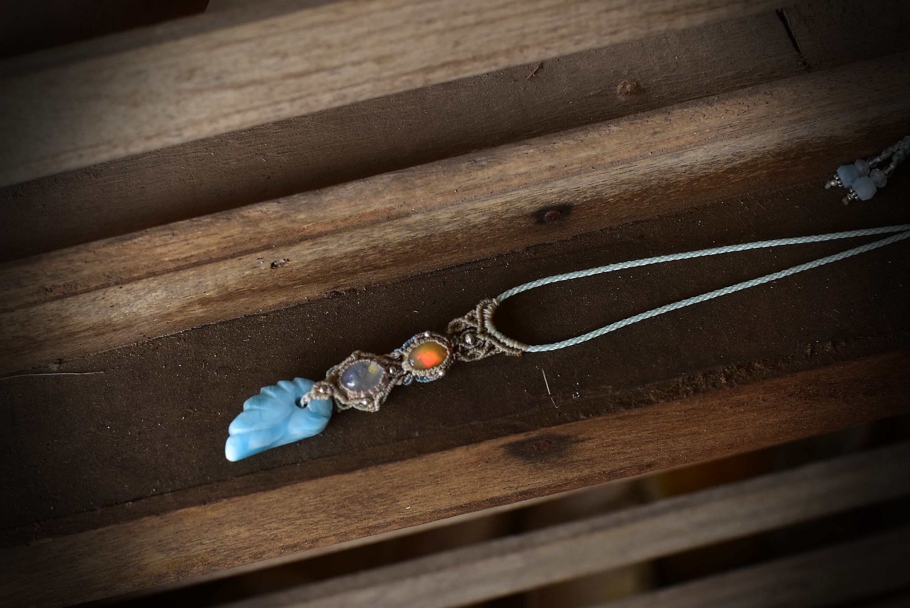 羽根ラリマー★オパールと月 マクラメペンダントlari035