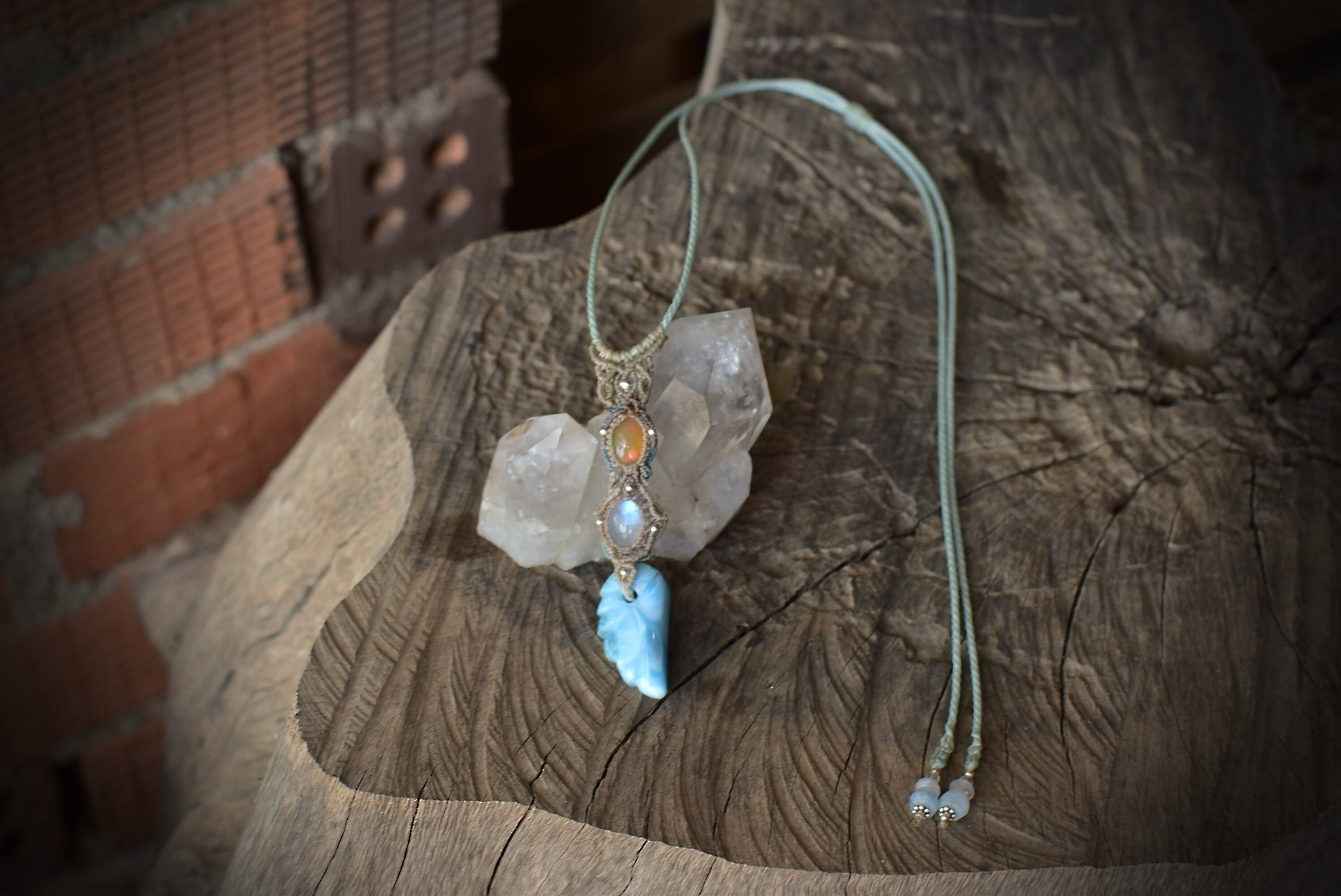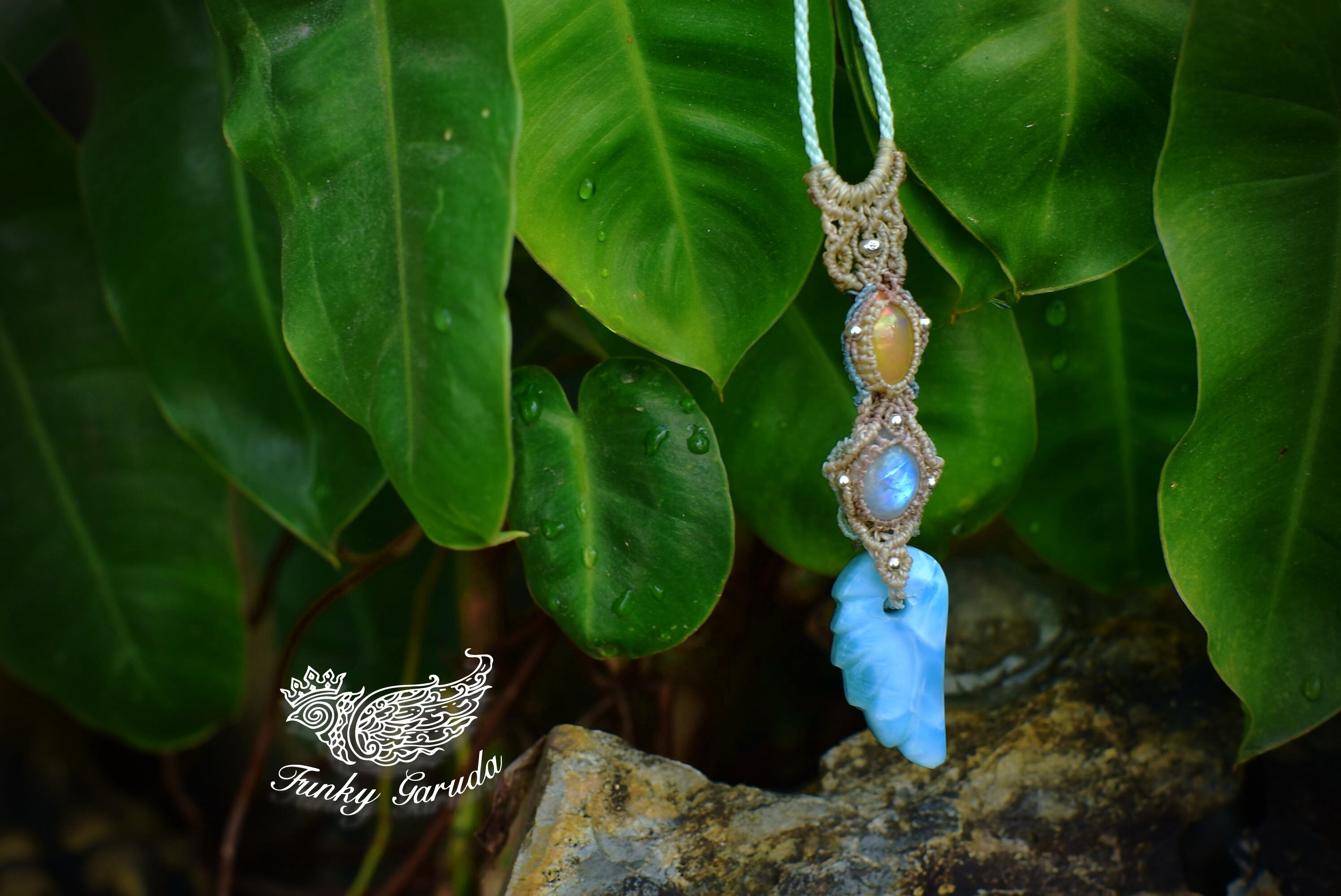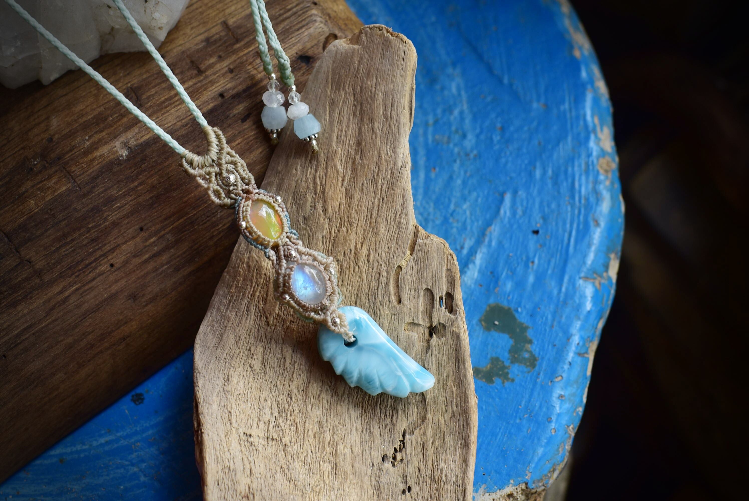 羽根ラリマー★オパールと月 マクラメペンダントlari035