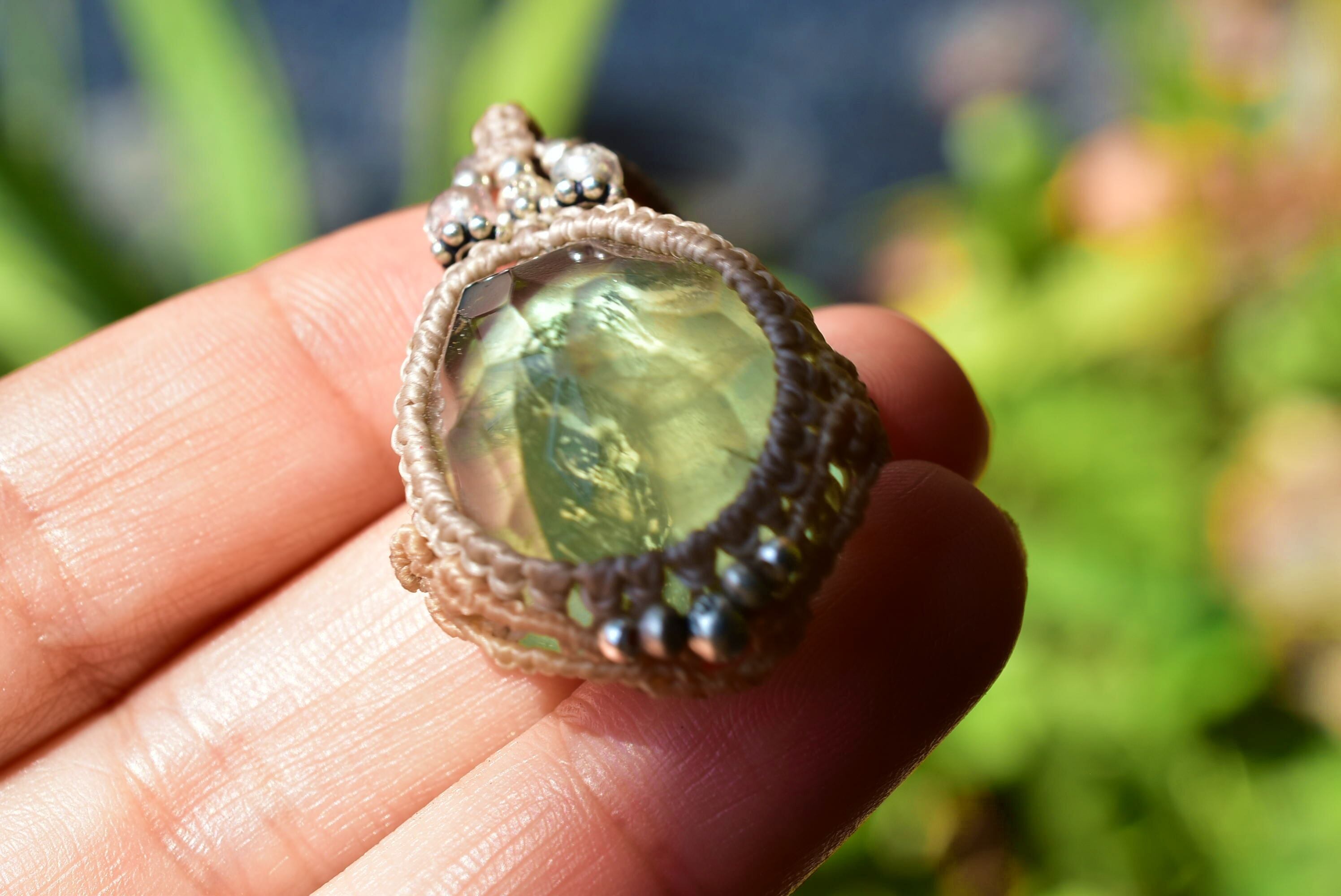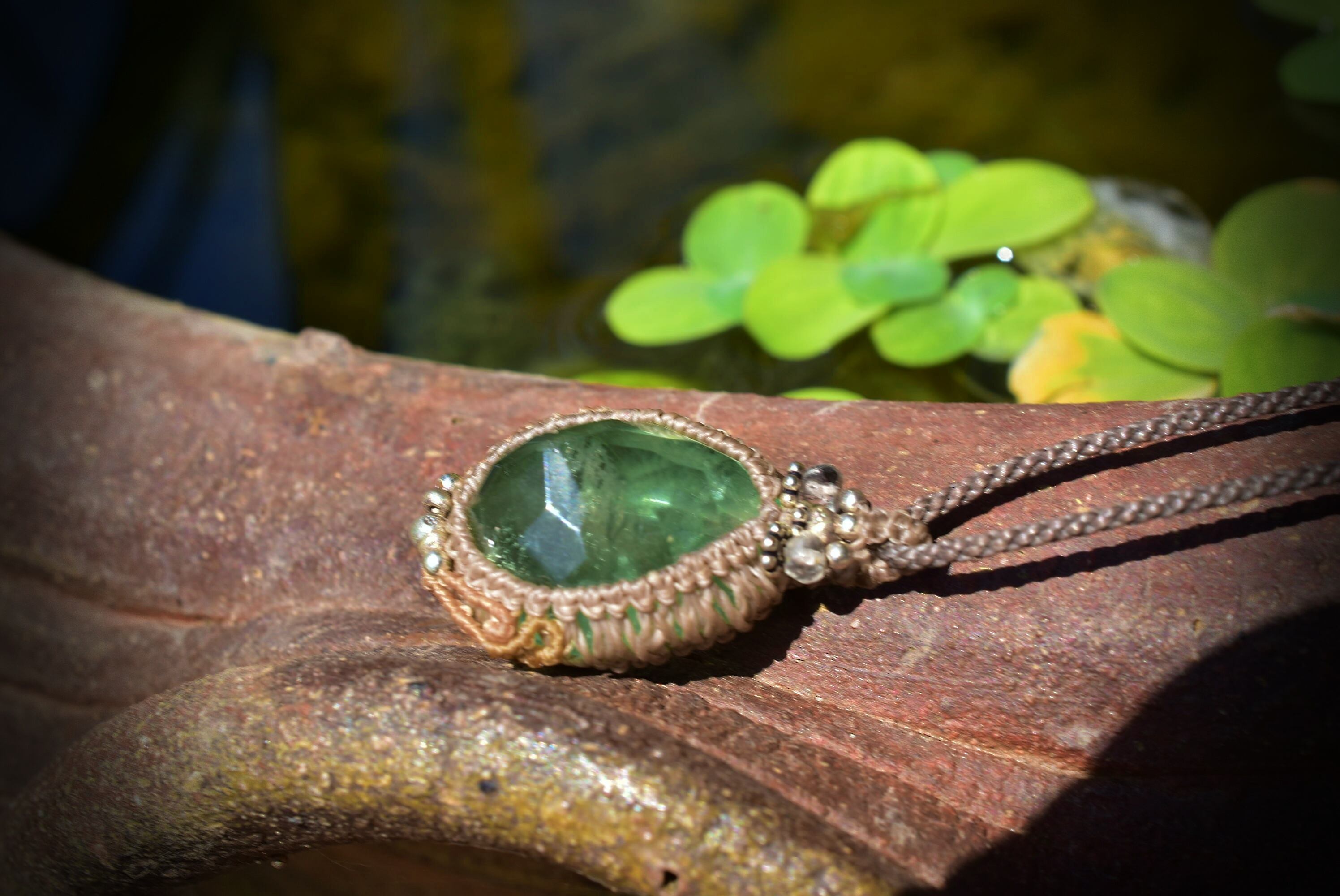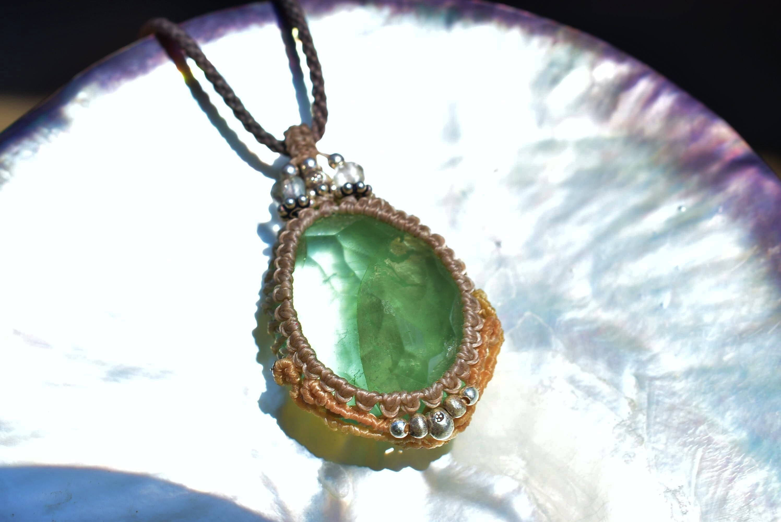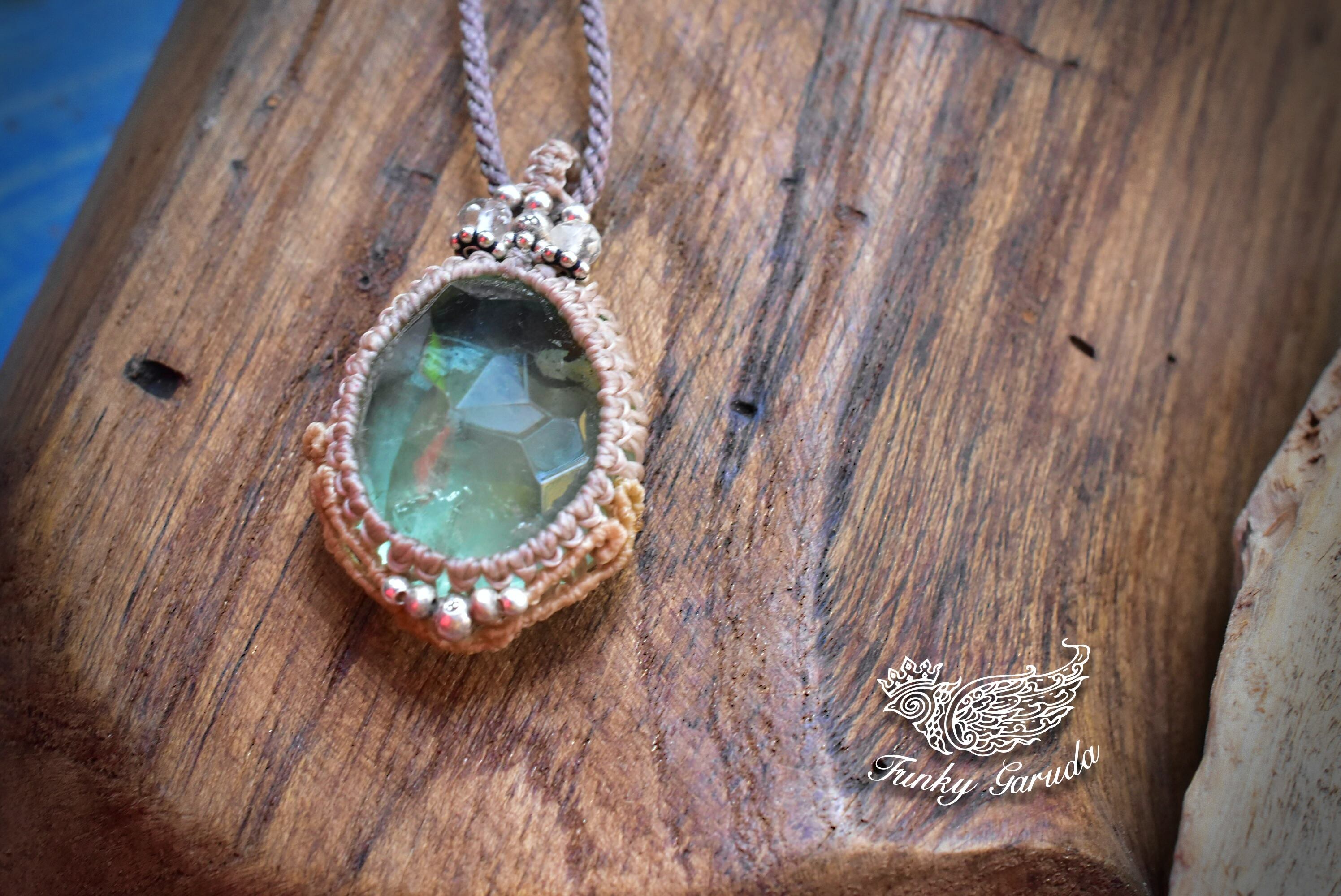 カット入りグリーンフローライト マクラメペンダントflo008