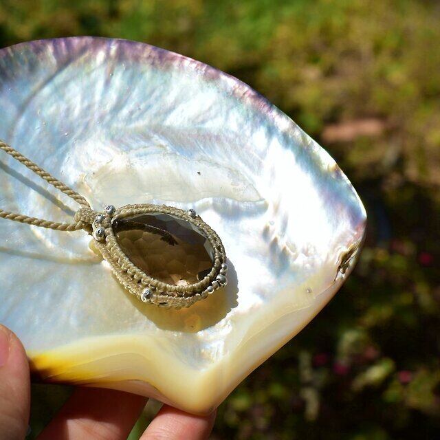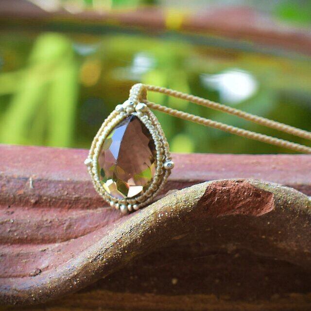 60ctファセットカット スモーキークォーツ マクラメペンダントsmo003