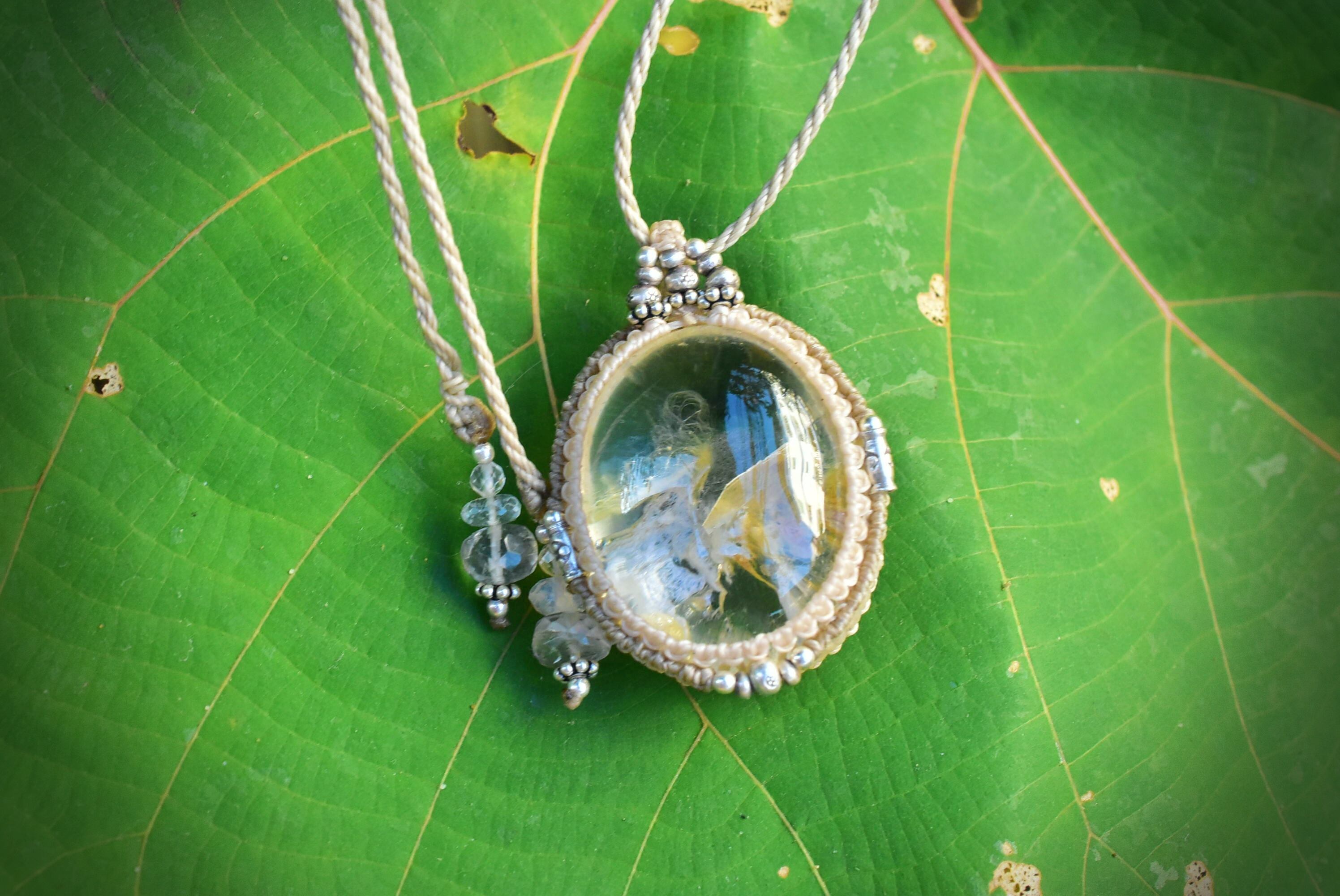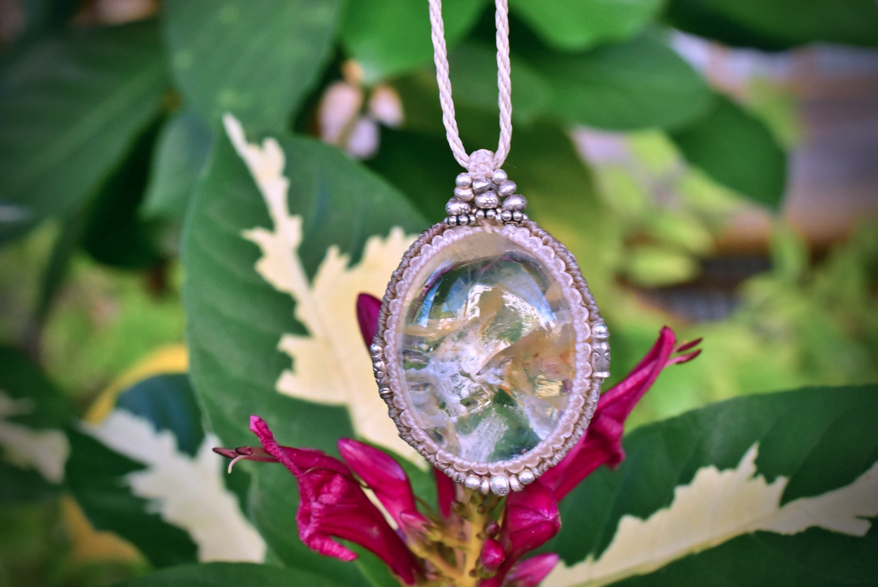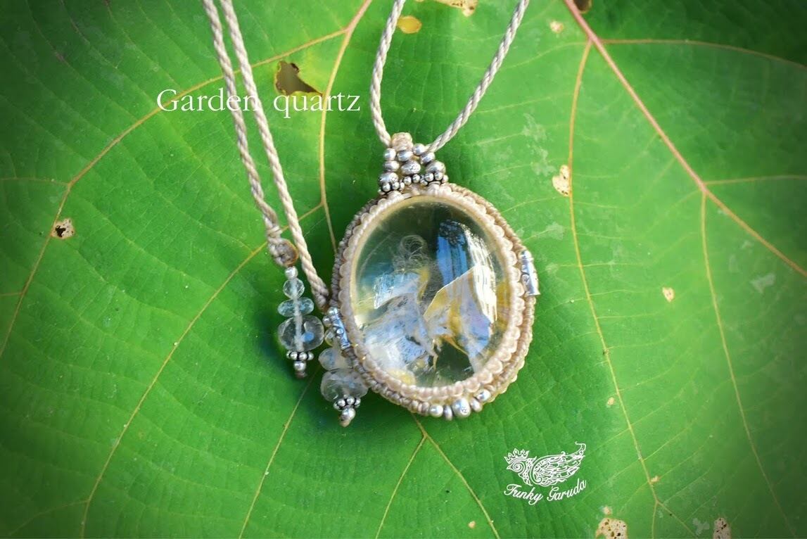 中粒レア★成長する水晶★ホワイト★クォーツインクォーツ マクラメペンダント garm122