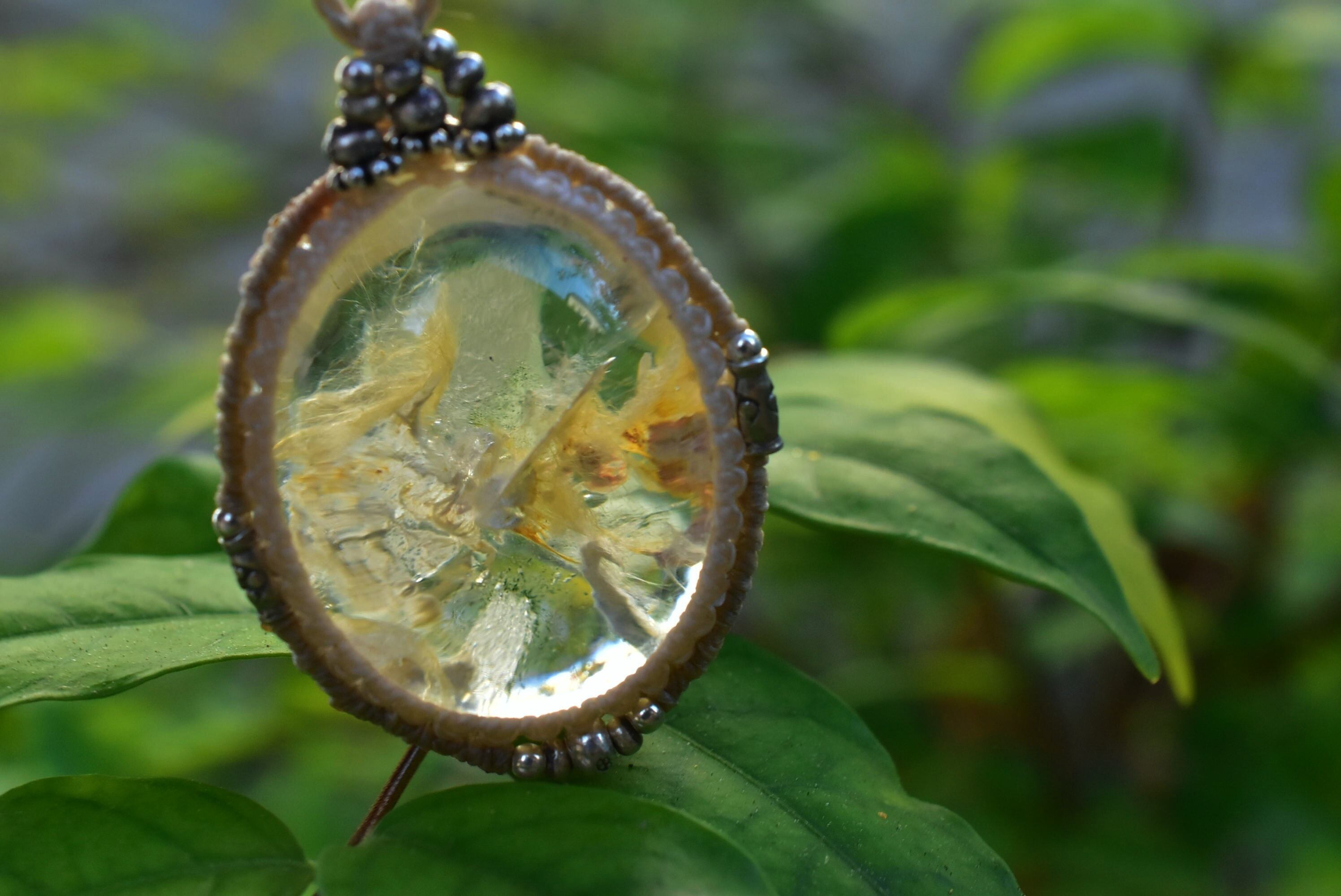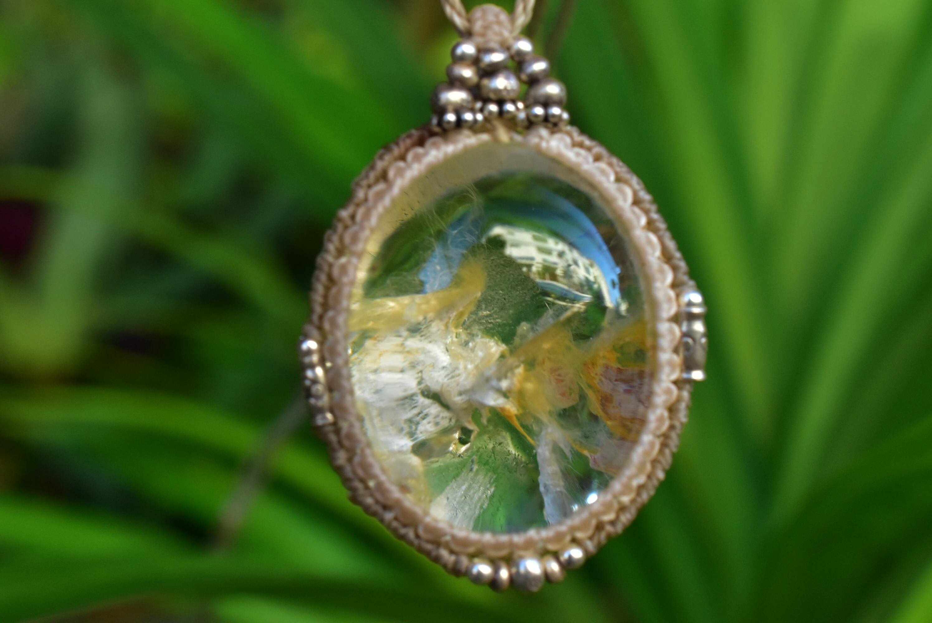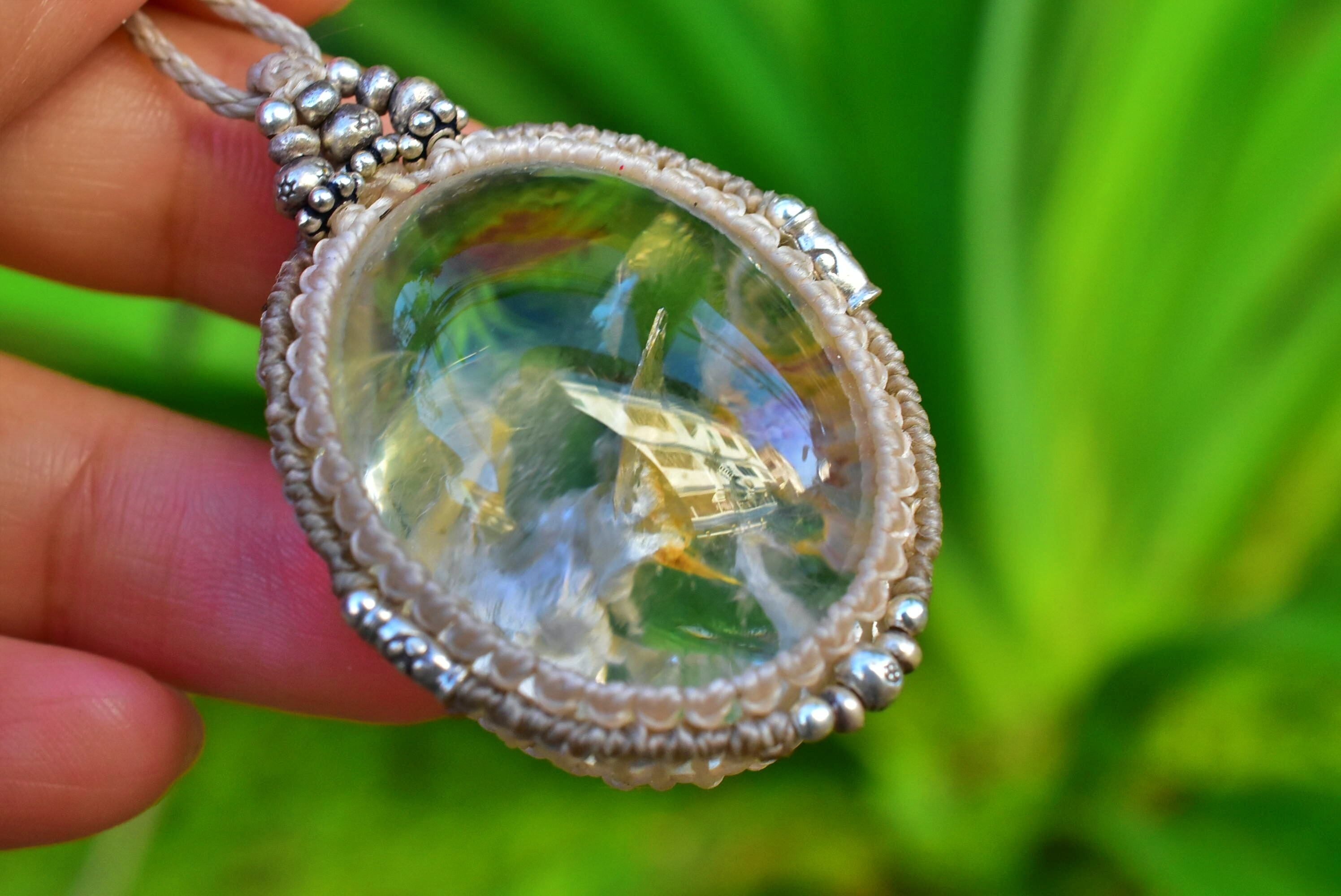 中粒レア★成長する水晶★ホワイト★クォーツインクォーツ マクラメペンダント garm122