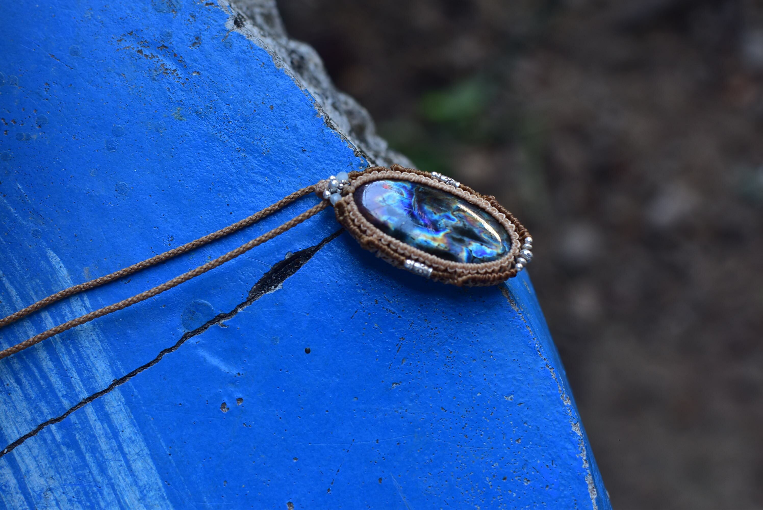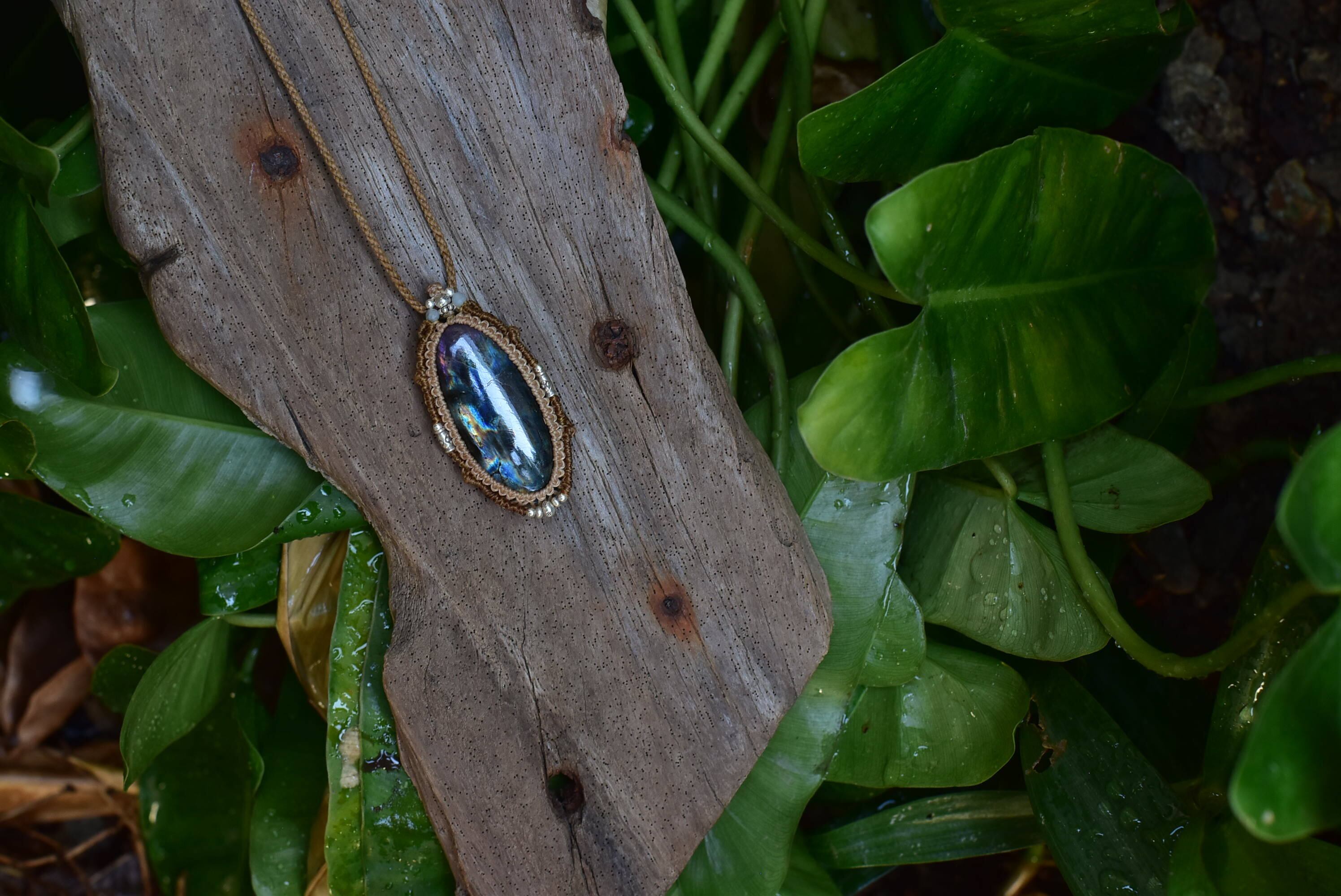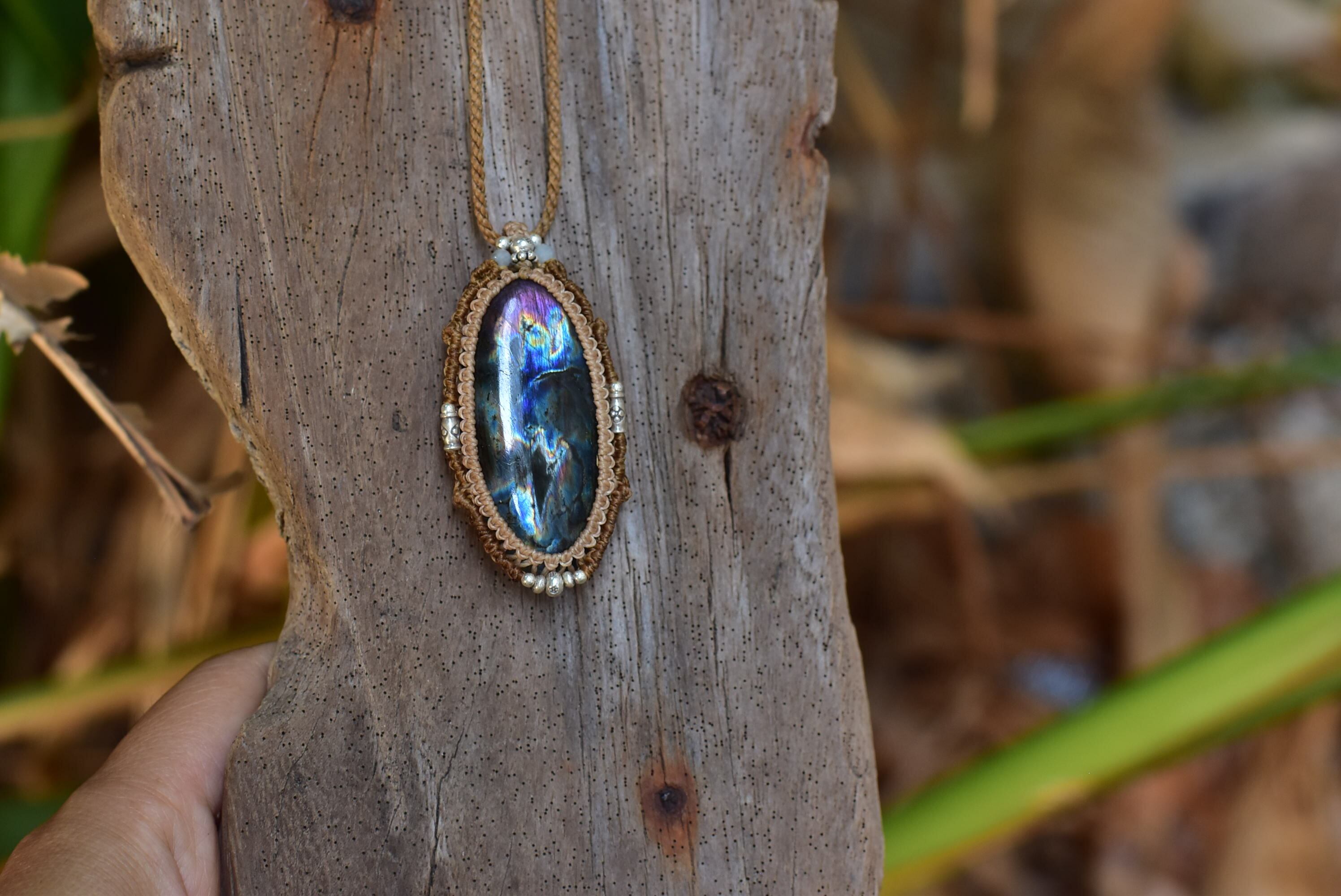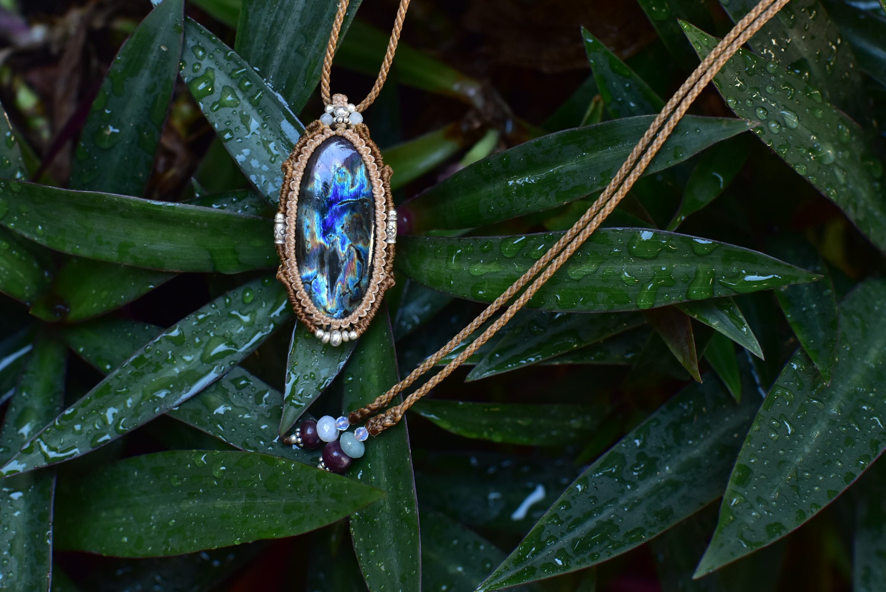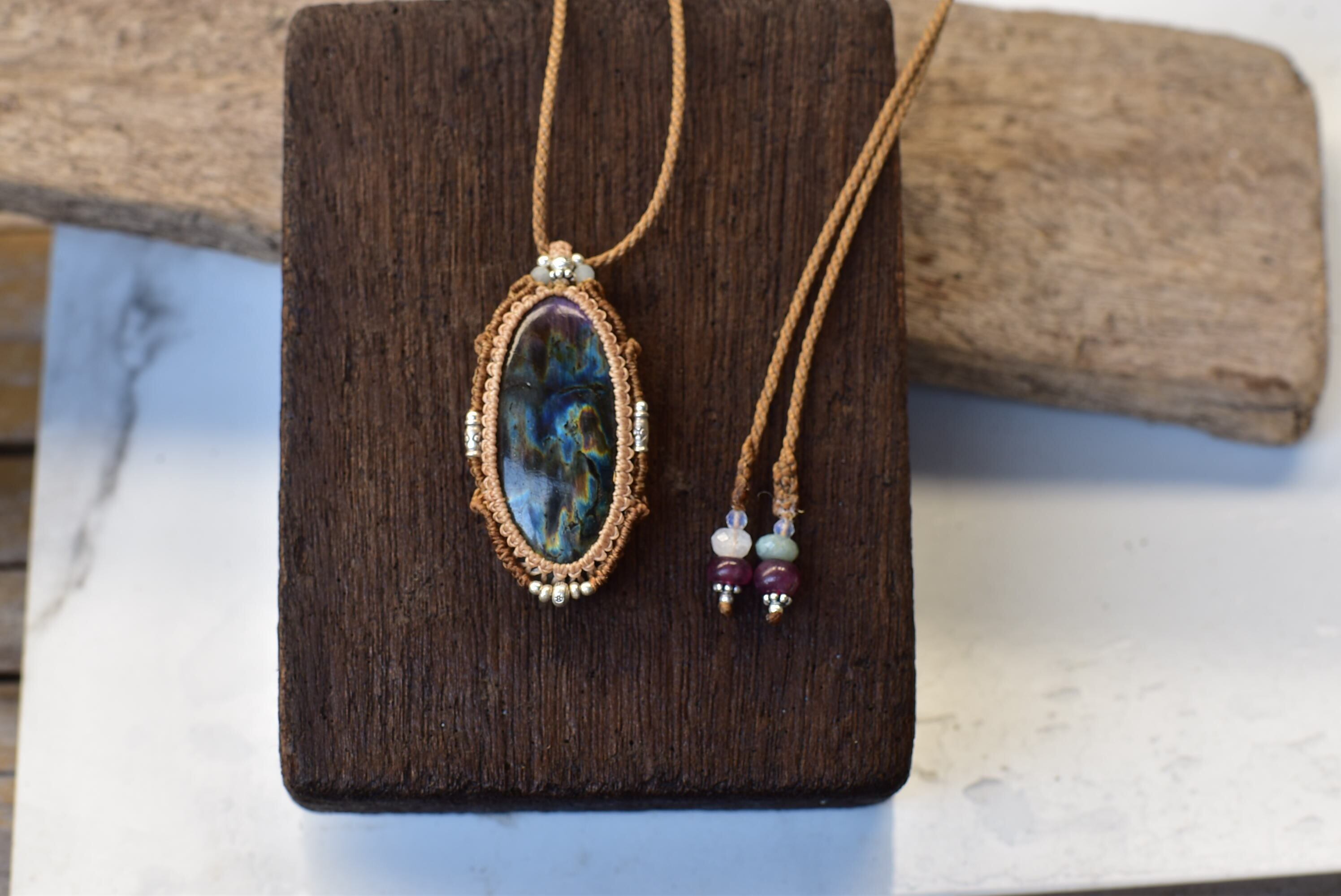 宇宙★サイケデリック★レインボーラブラドライト マクラメペンダントlabb039
