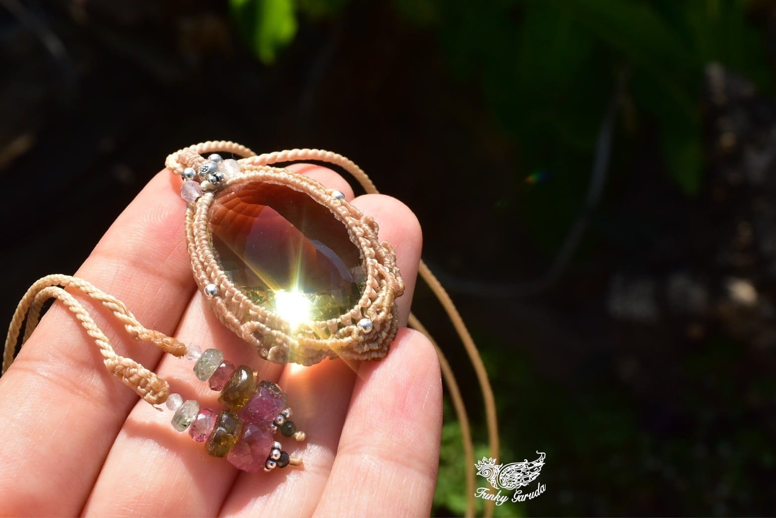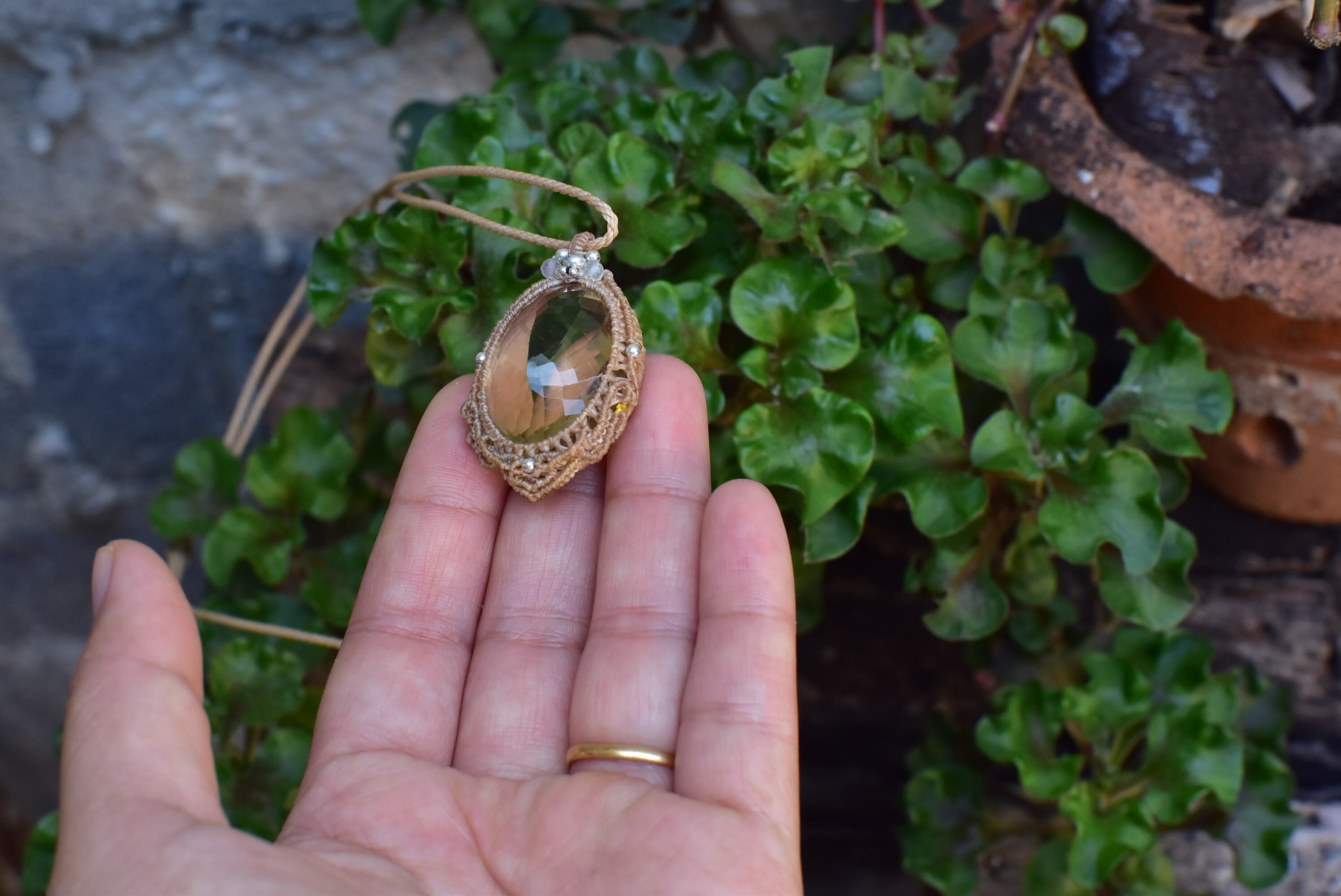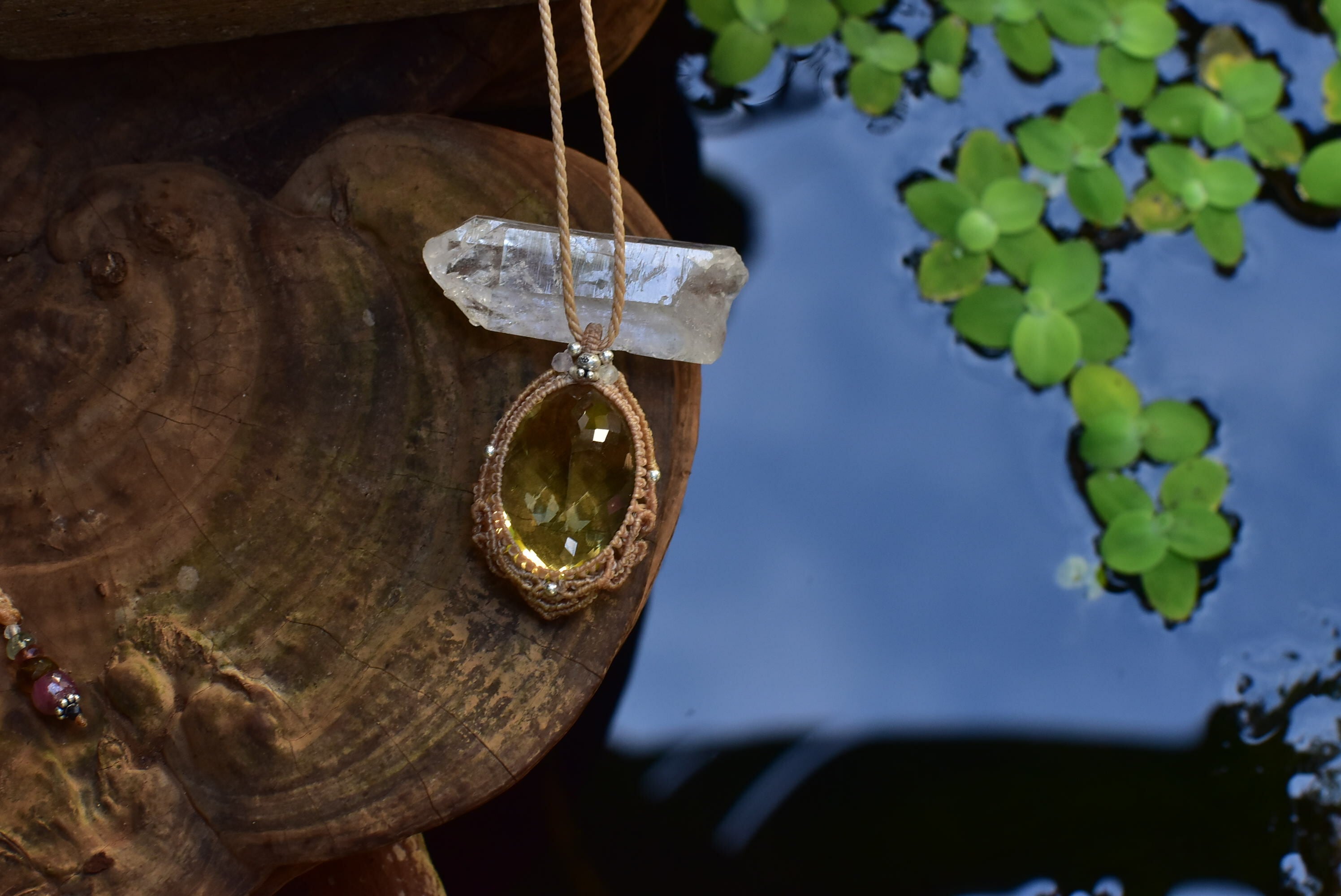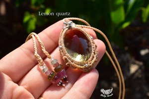 高品質★62.5ct レモンクォーツ マクラメペンダントlemon004