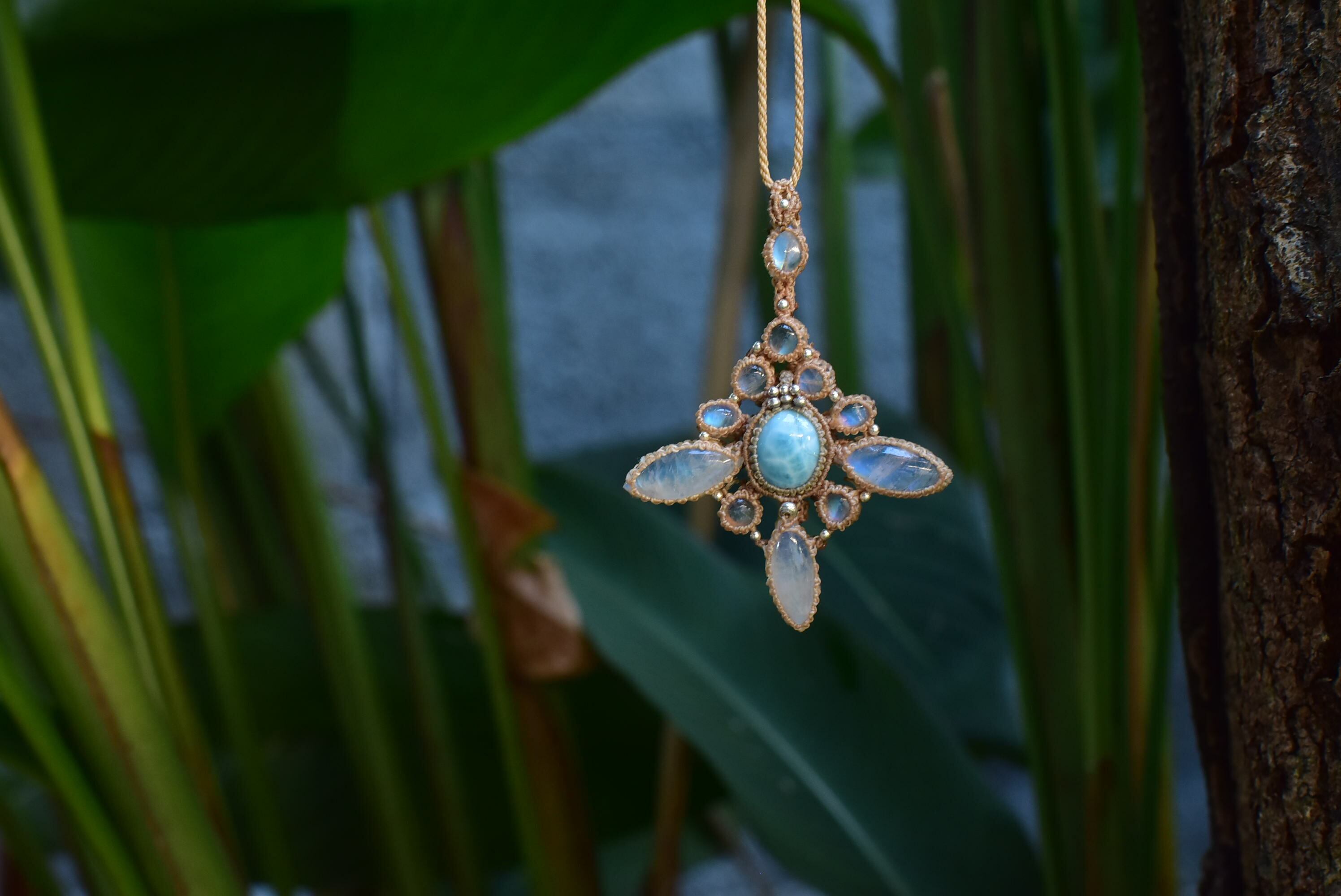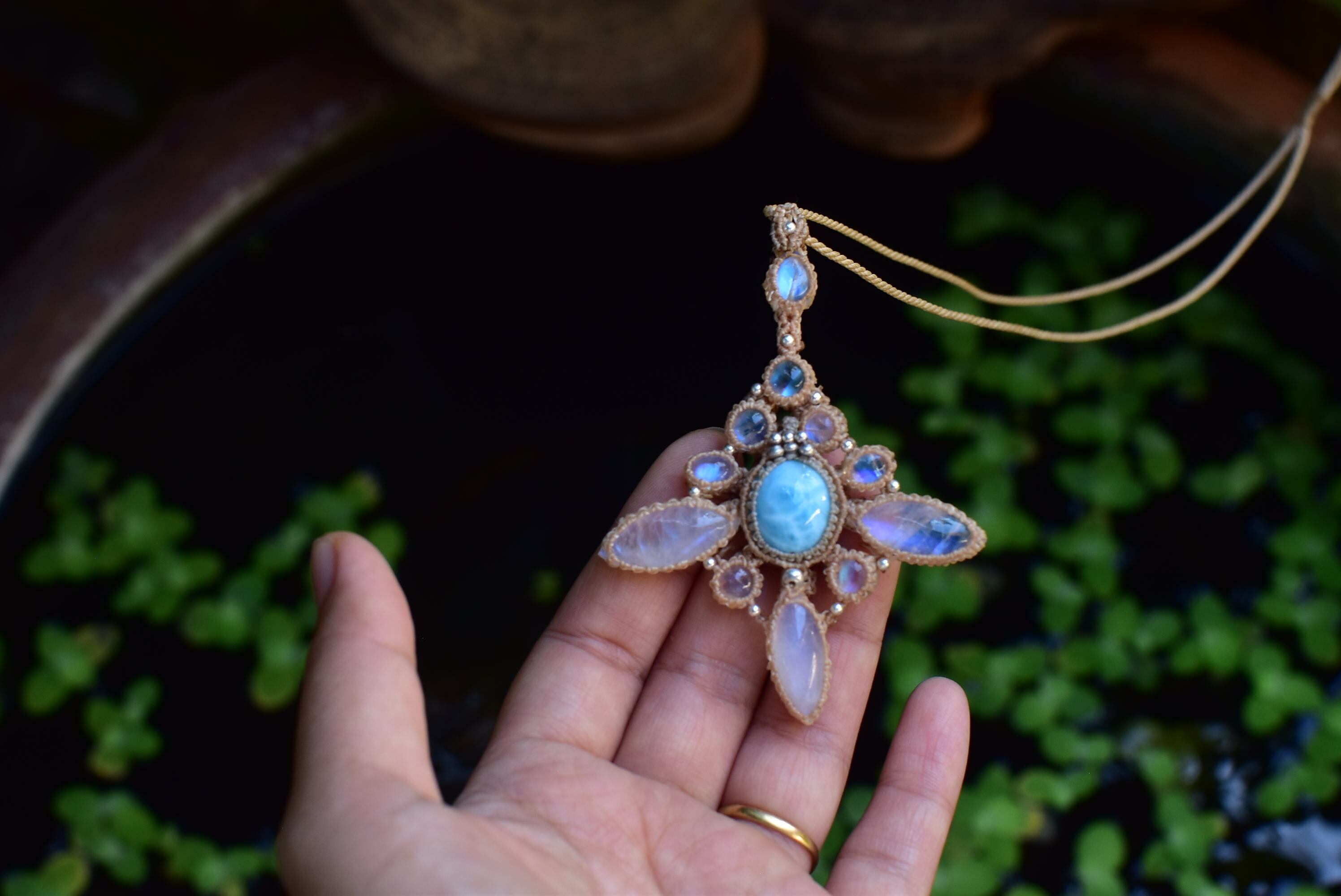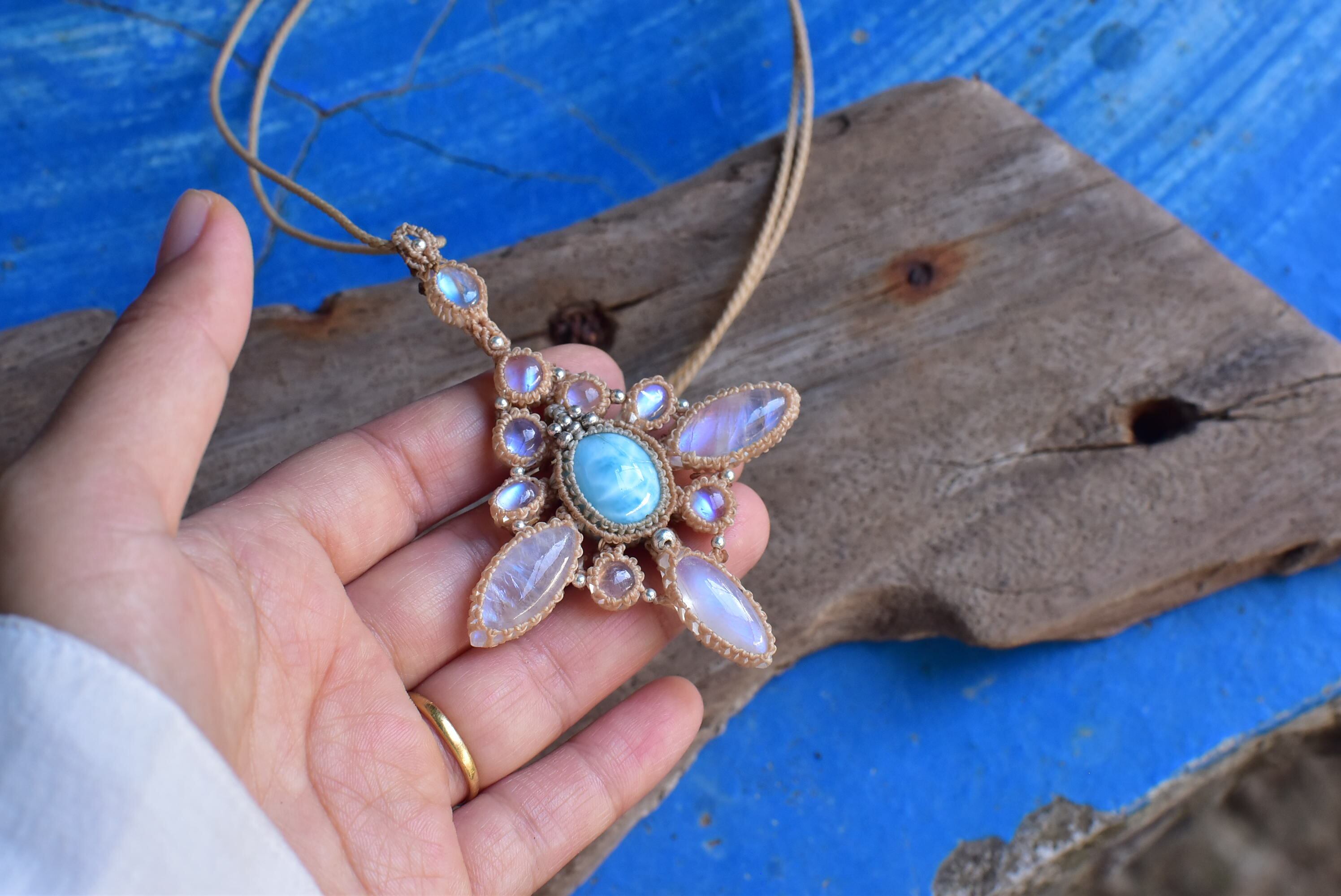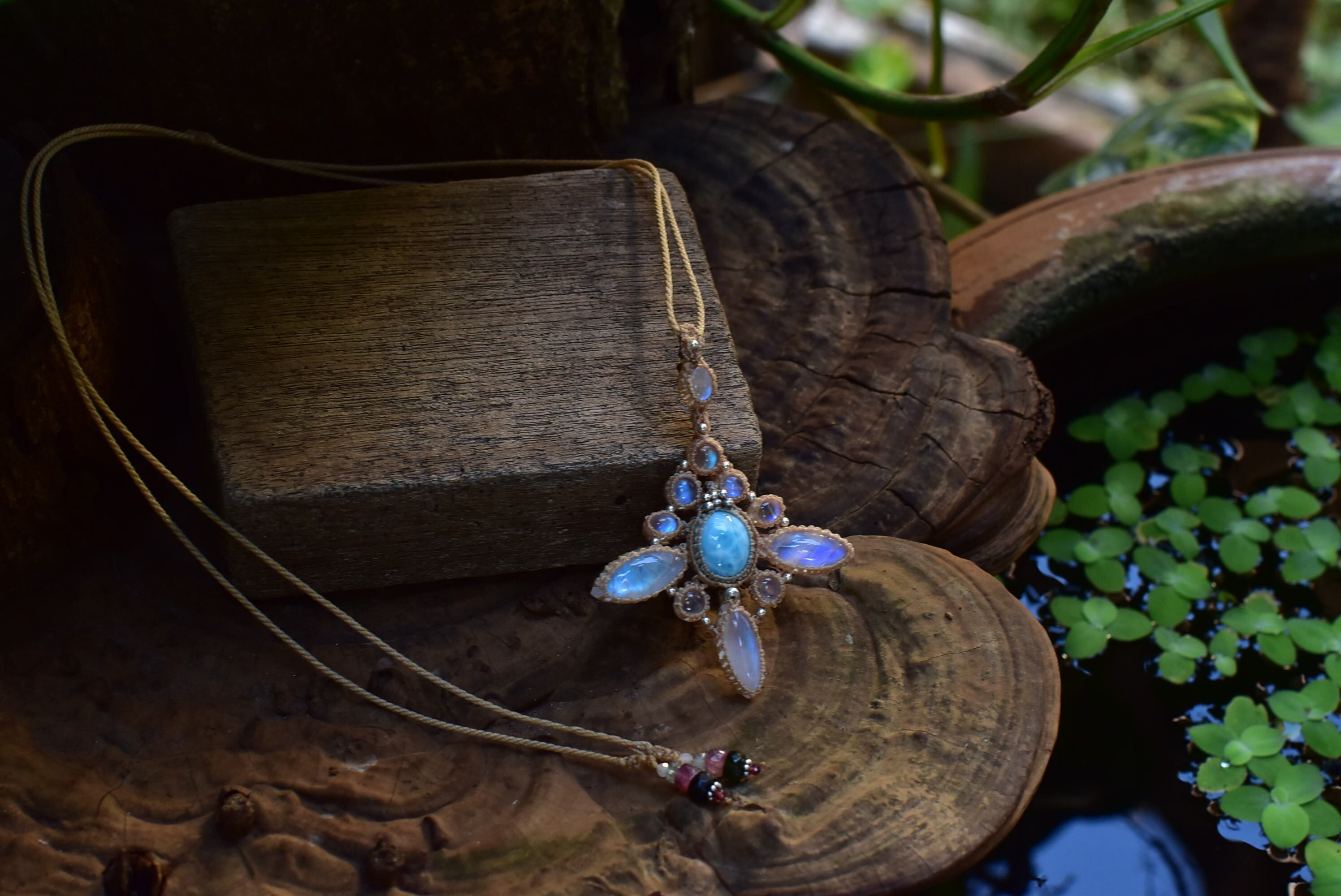 星と海の細波★ラリマー+ムーンストーン マクラメペンダントmoon042