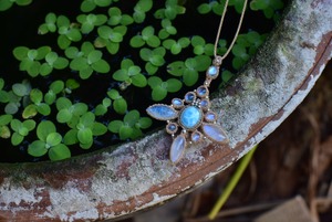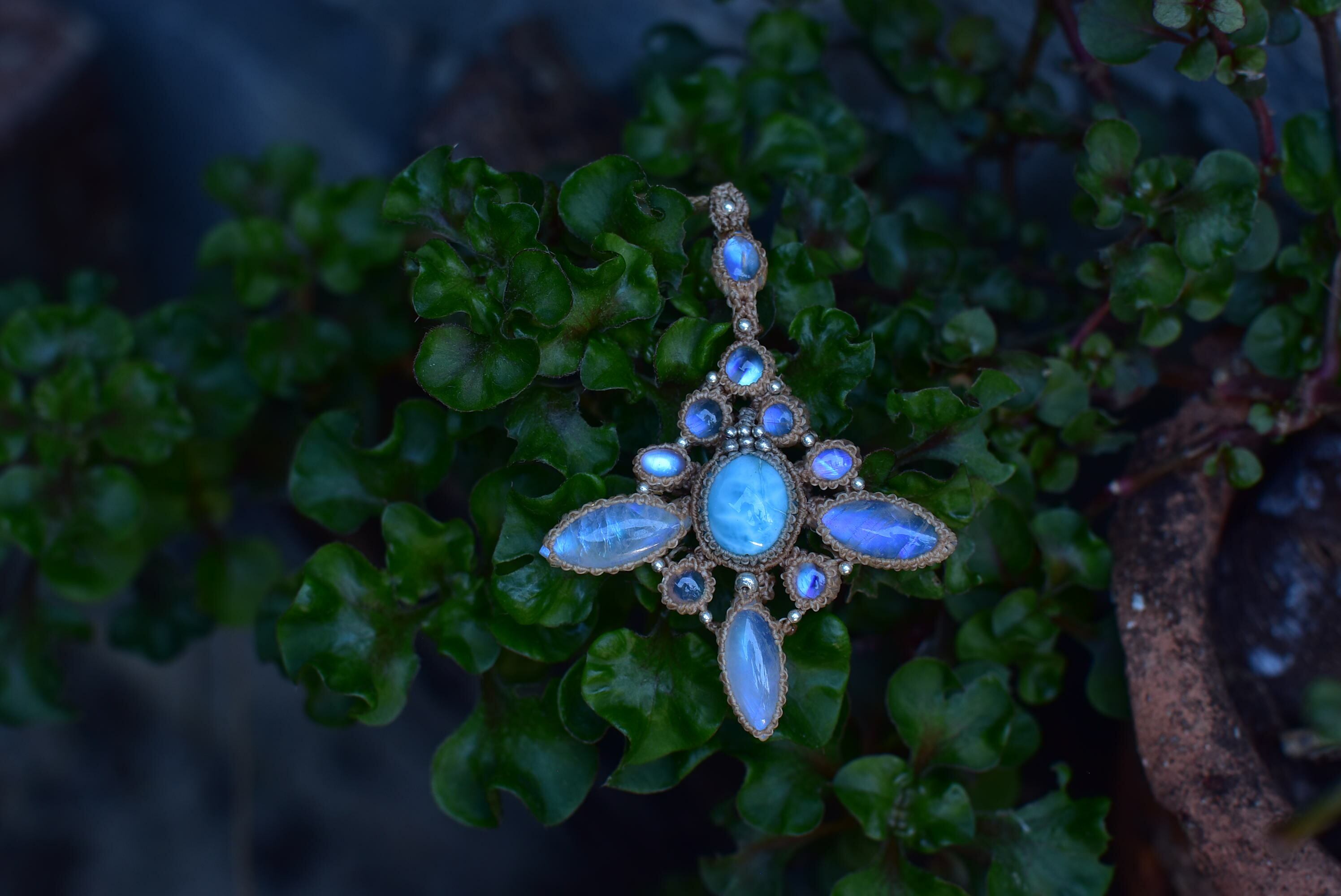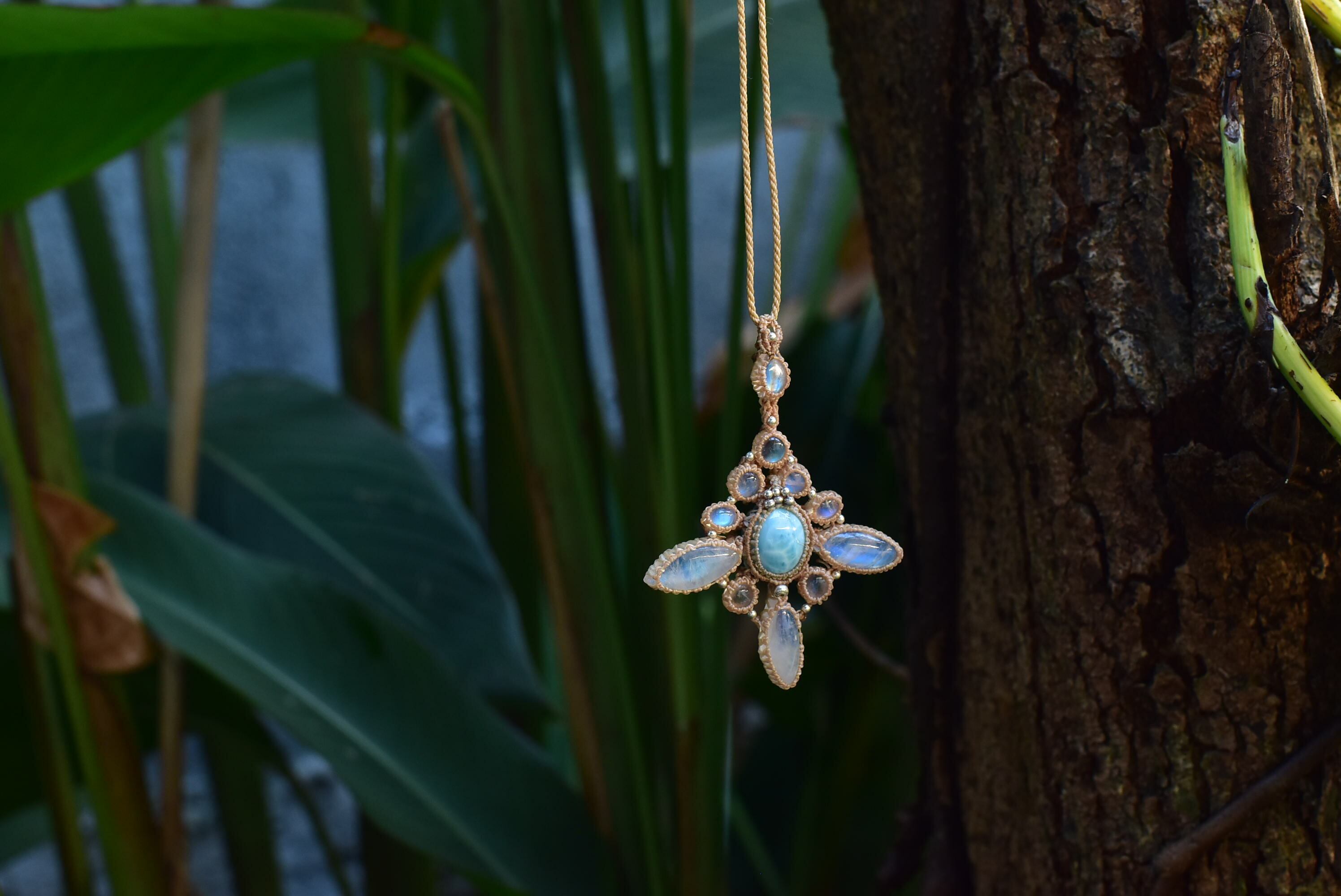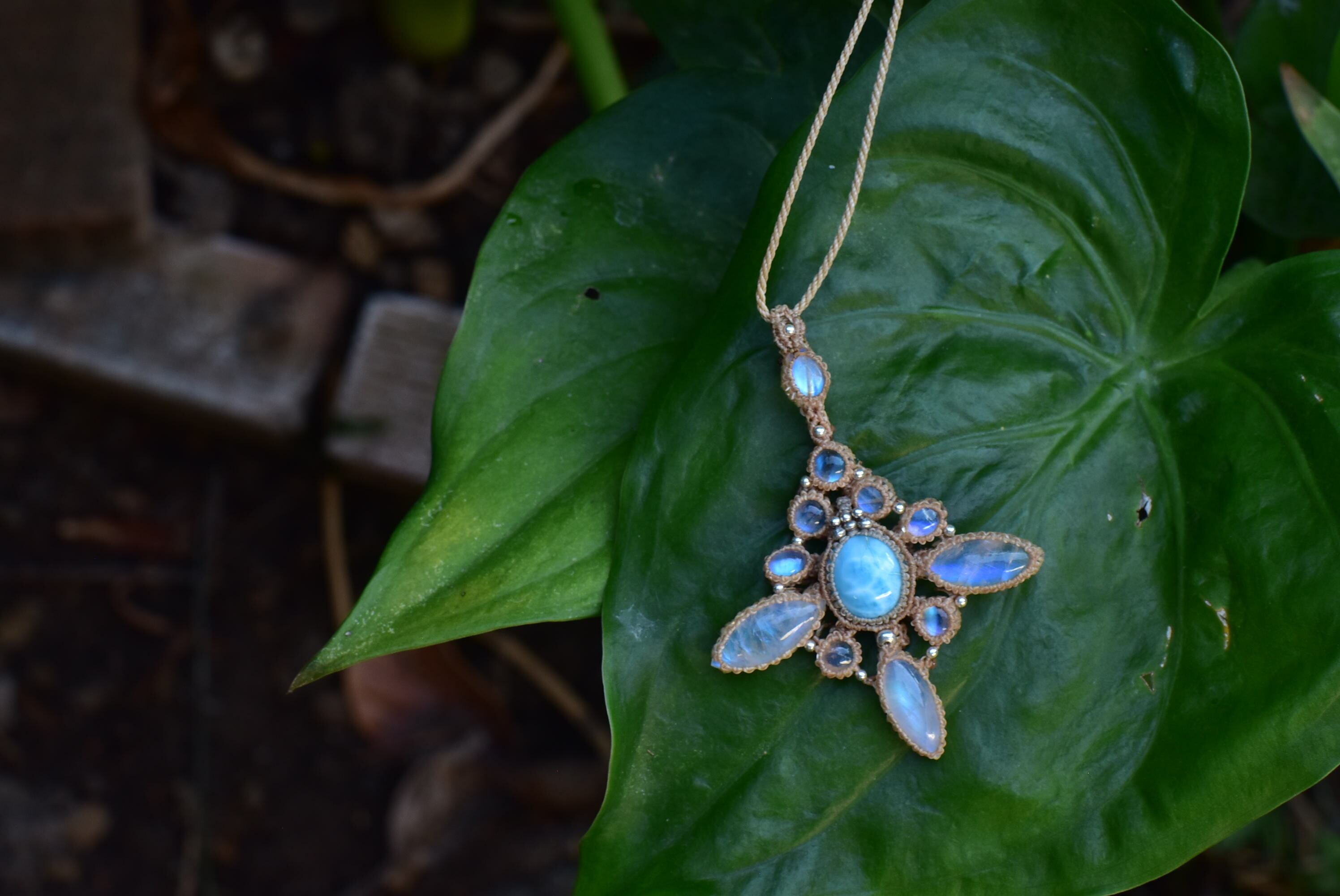 星と海の細波★ラリマー+ムーンストーン マクラメペンダントmoon042