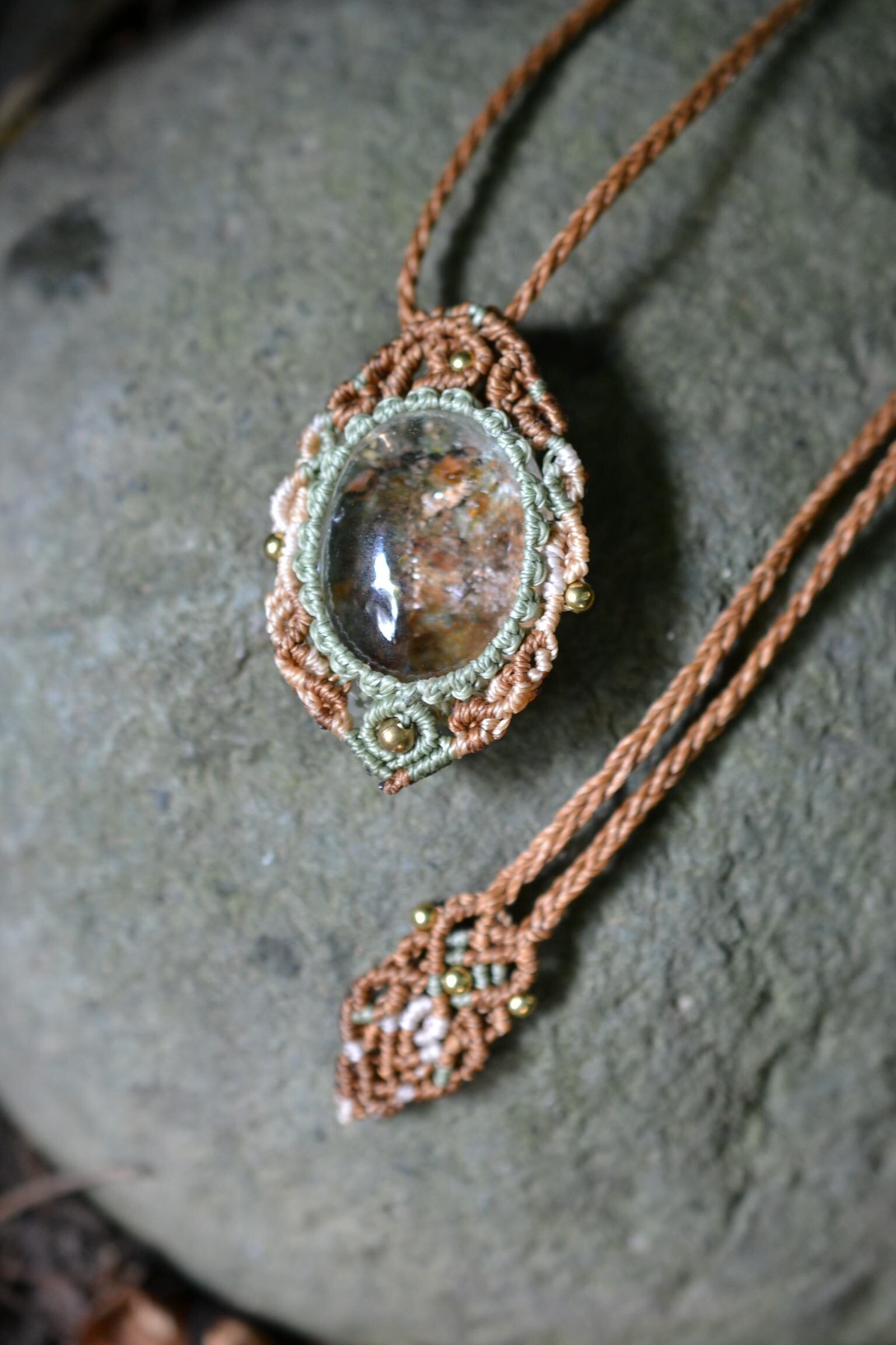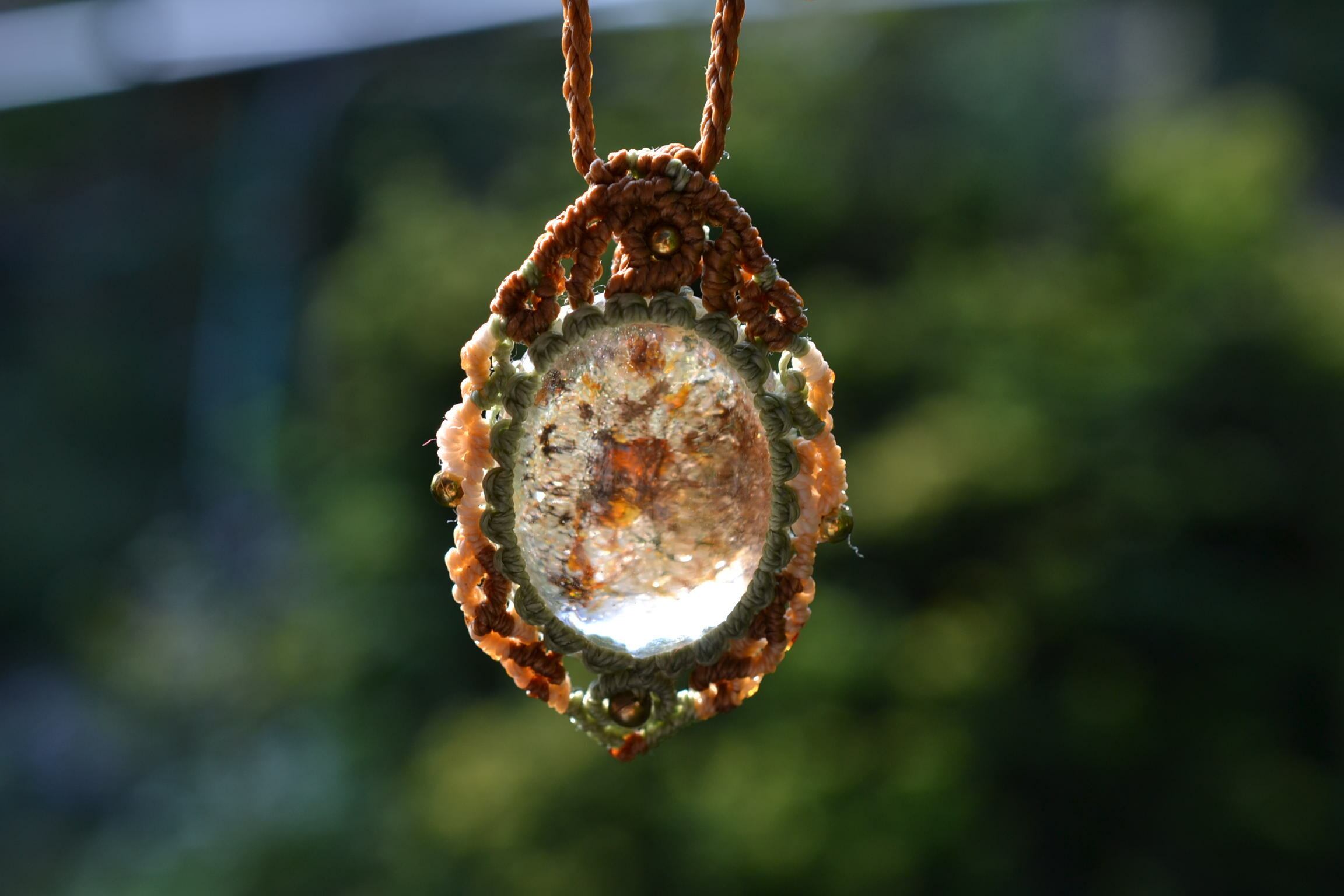 眩しいオレンジ★ガーデンクォーツ マクラメペンダントgarm100