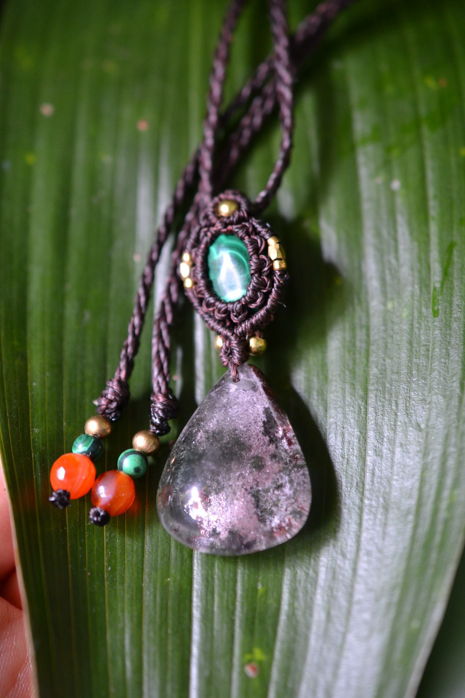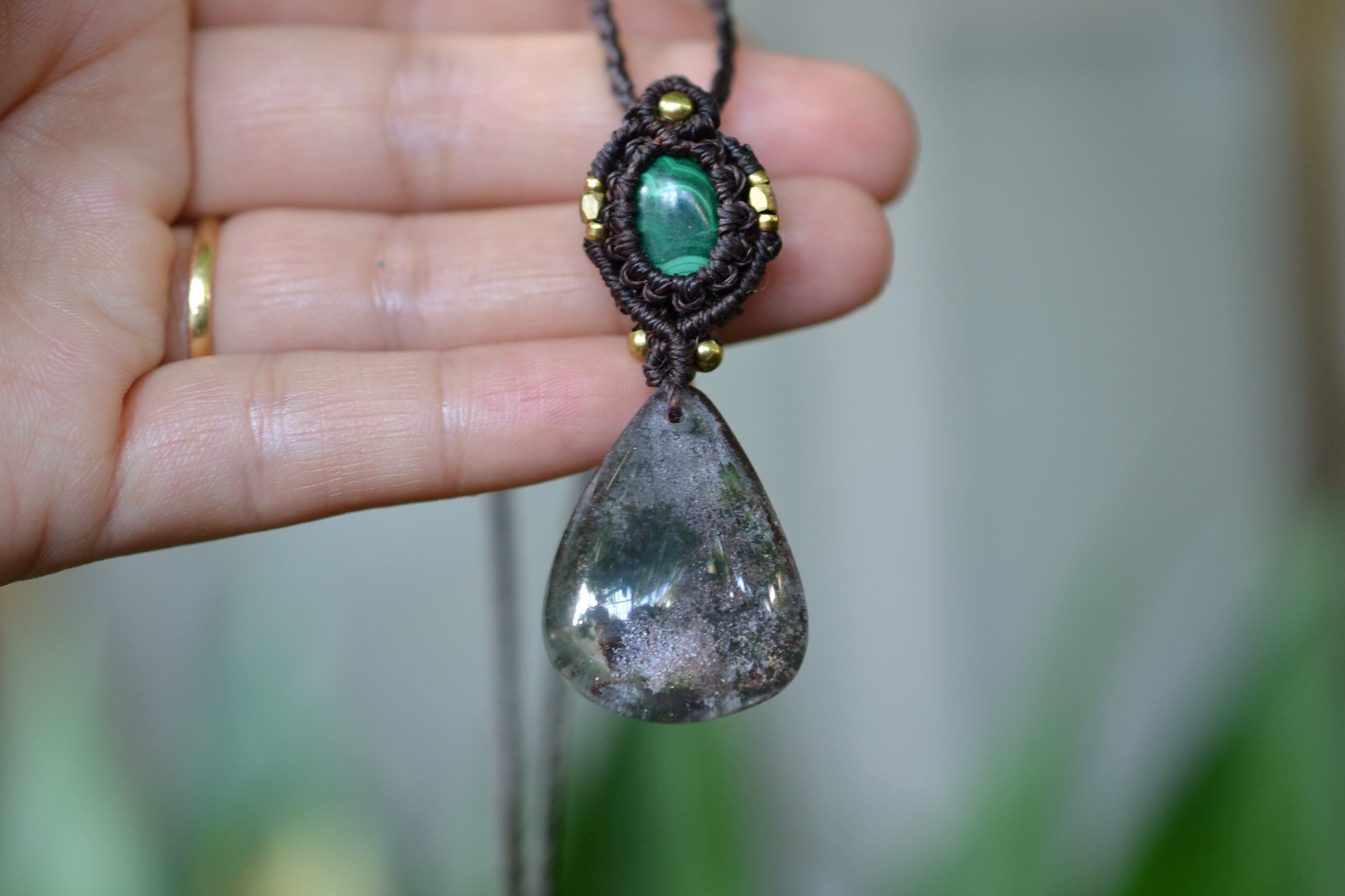 森の贈りもの★ガーデンクォーツ × マラカイト マクラメペンダント