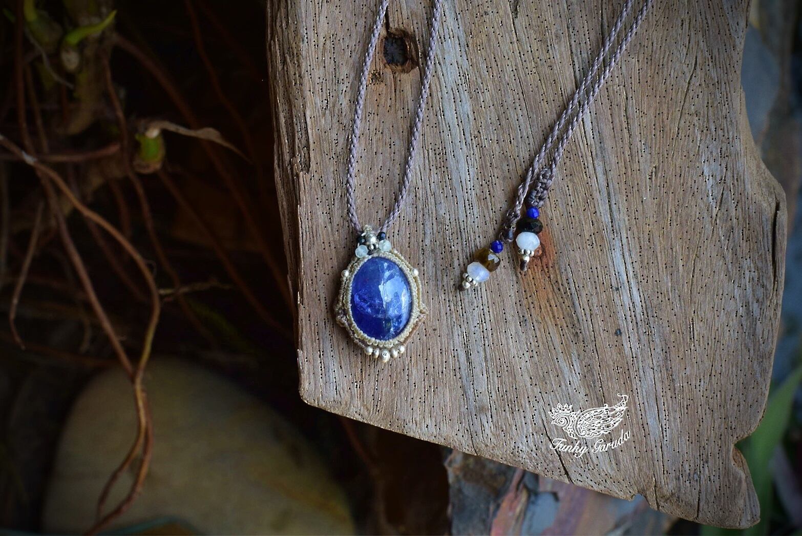 カレンシルバー92.5ビーズパーツ、天然石ビーズ、マクラメ編み装飾を施して仕上げました。