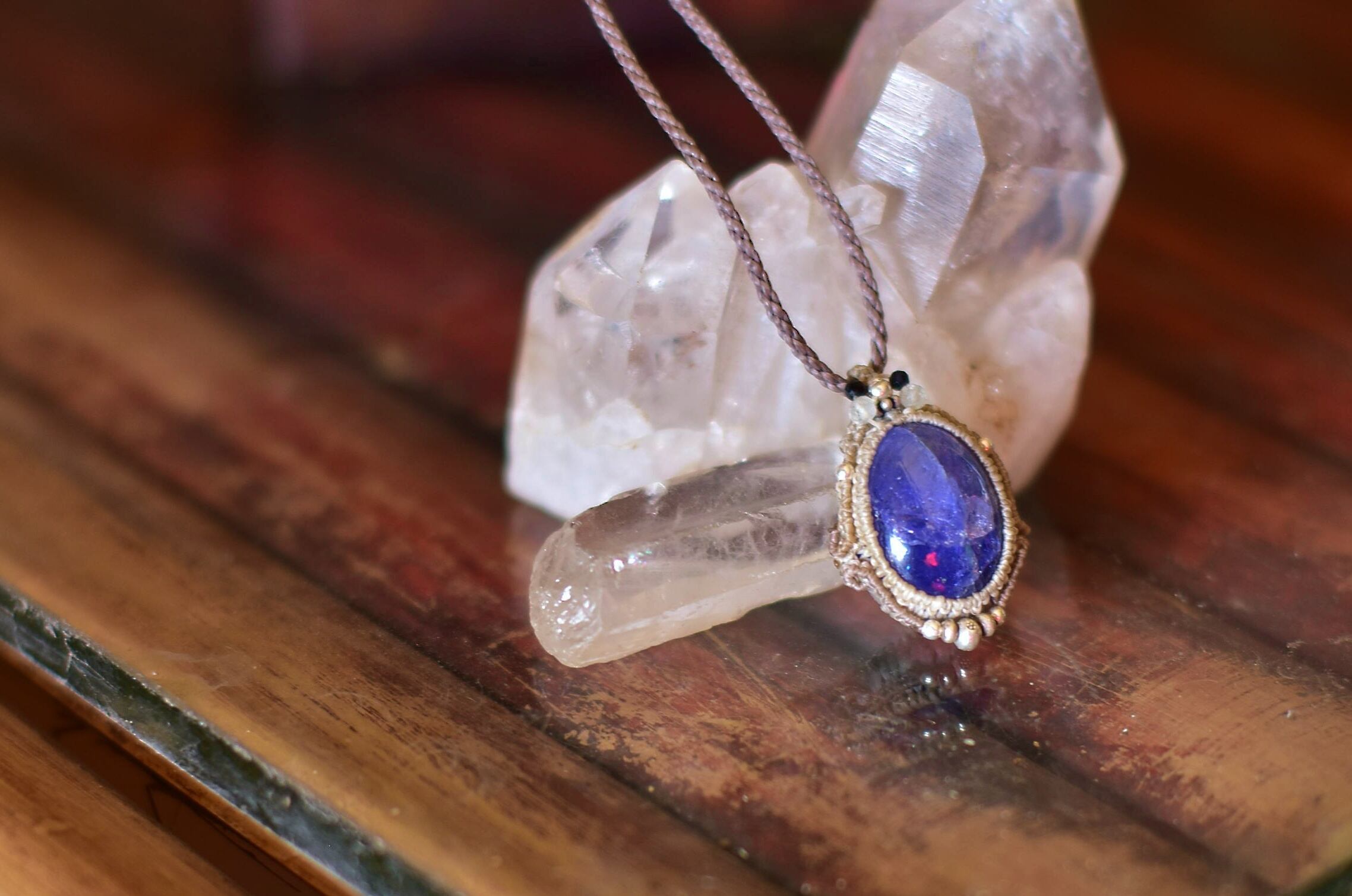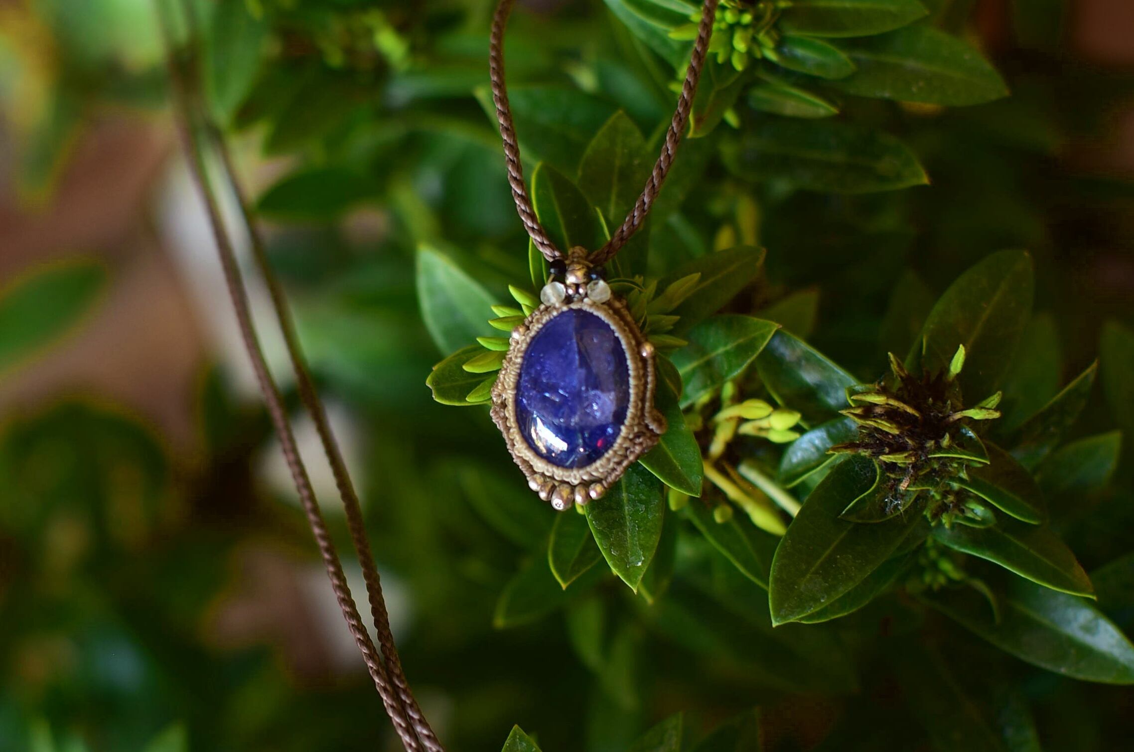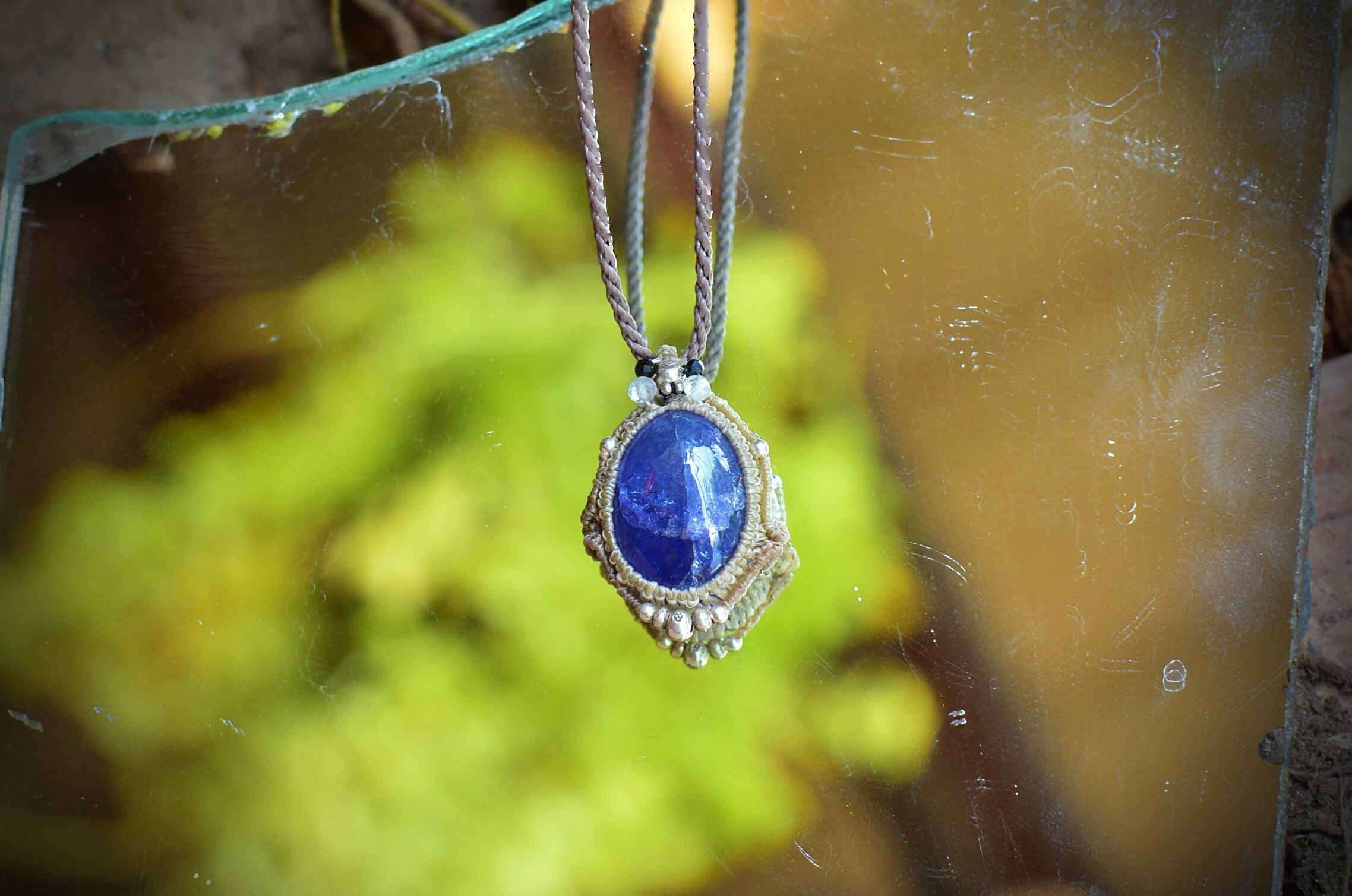 レア*虹入り透明感アリ★非加熱タンザナイト マクラメペンダント tanza004