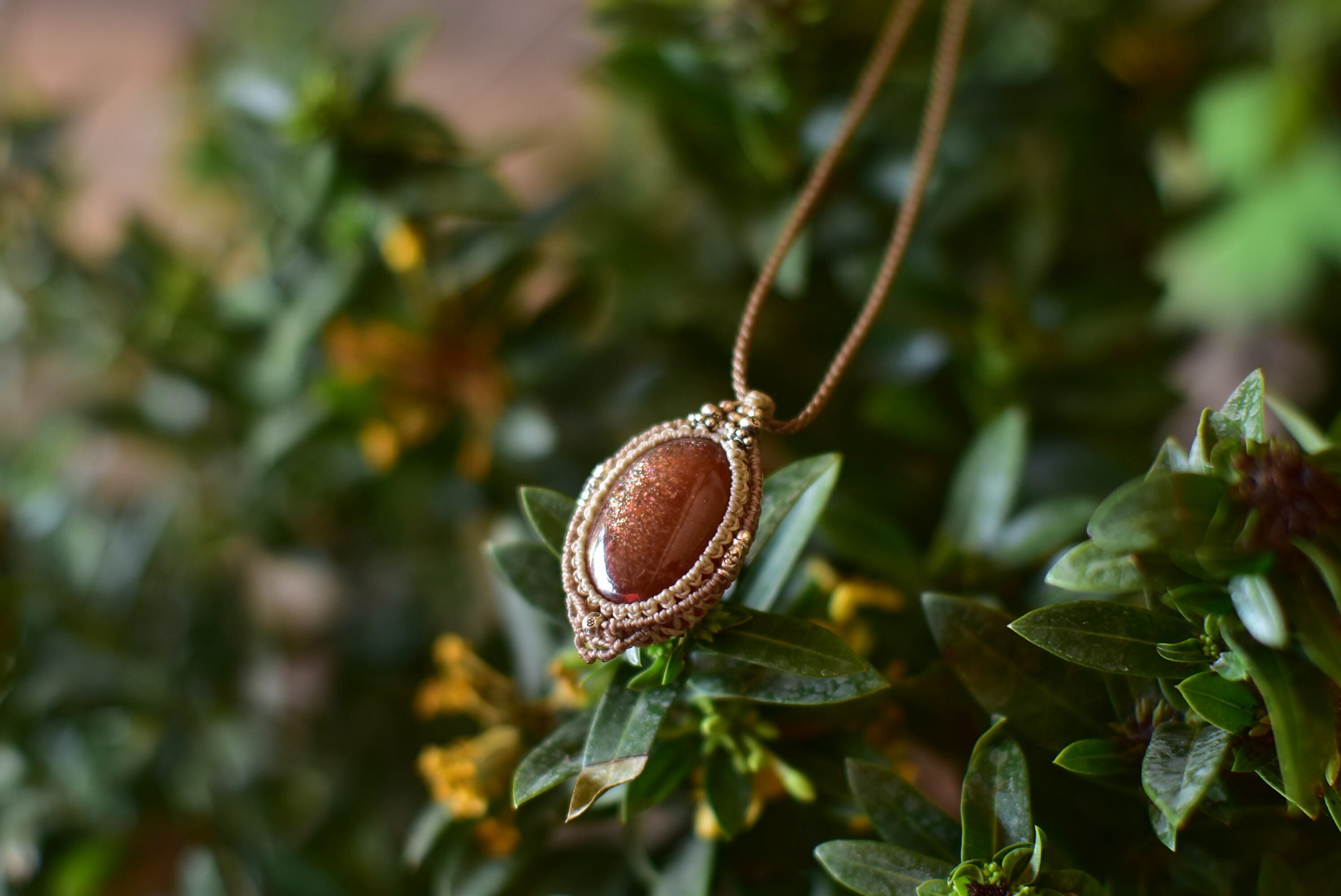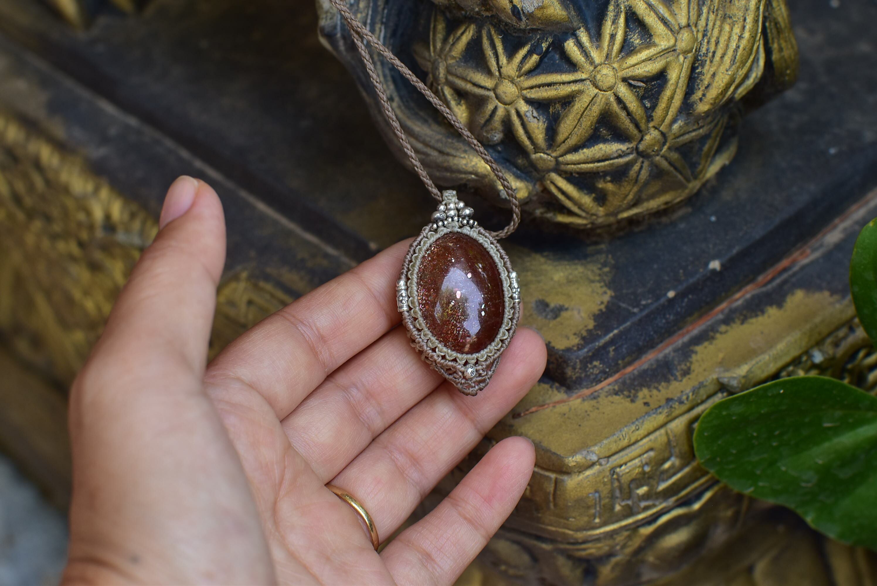 火星輝き★高品質サンストーン マクラメペンダント sun008