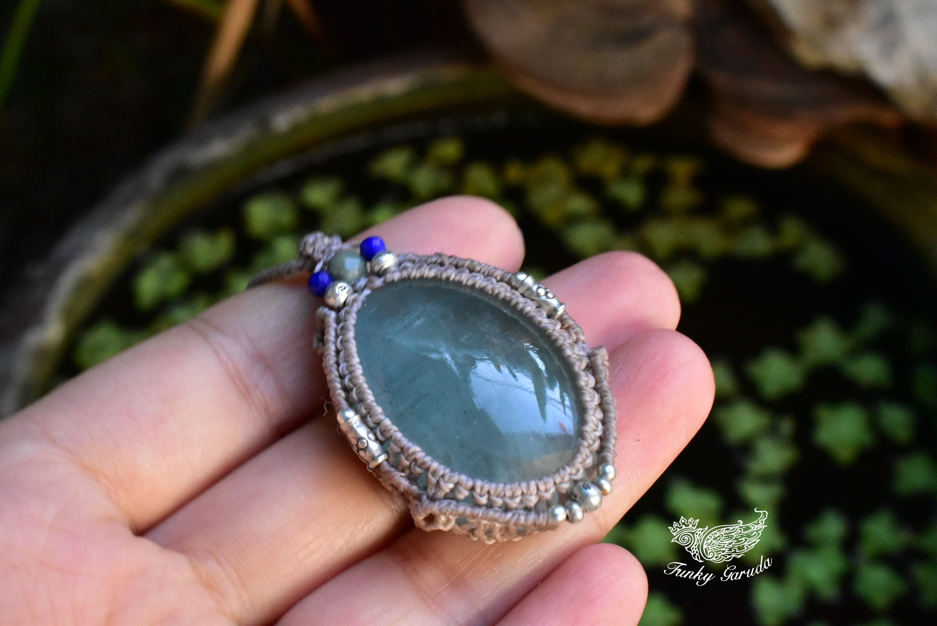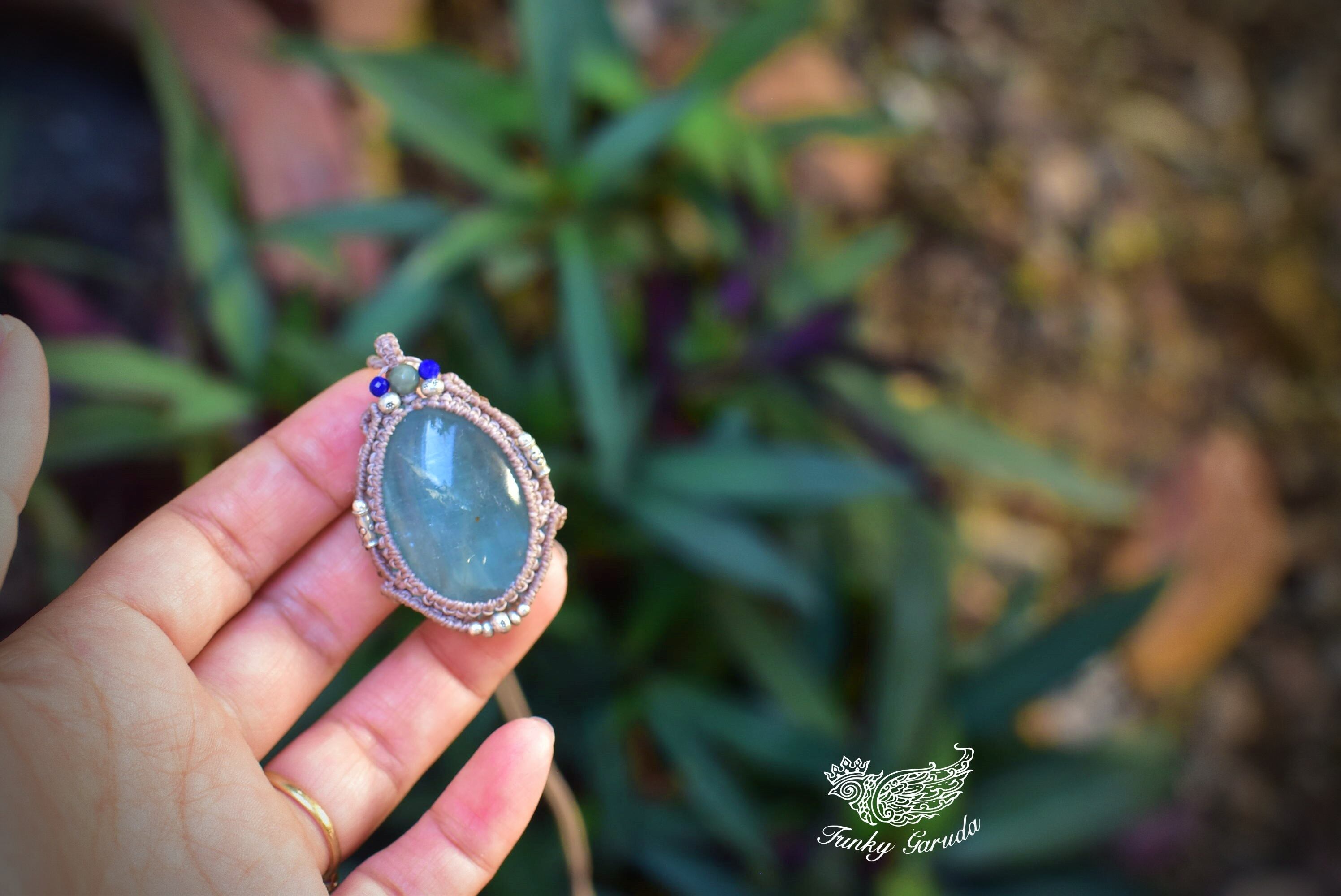 ほんのり虹入り高品質★キャッツアイ★アクアマリン マクラメペンダントaqua015