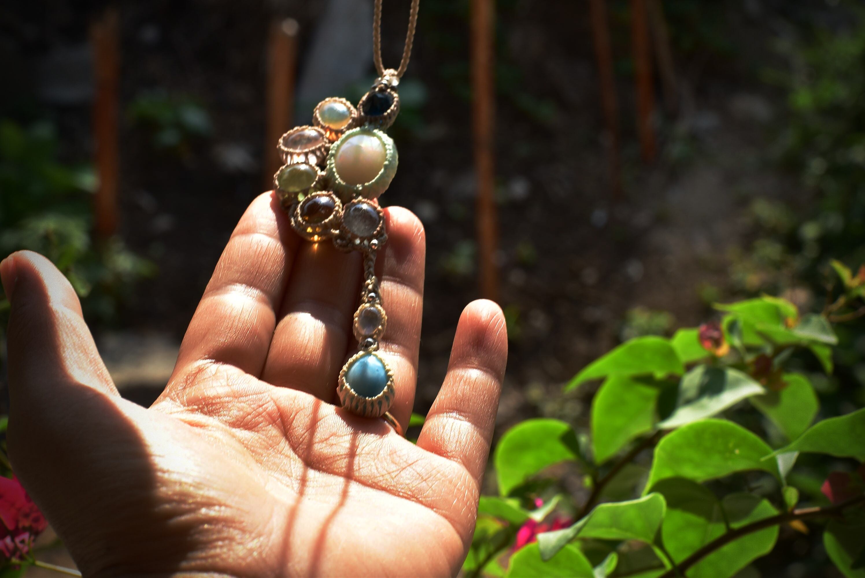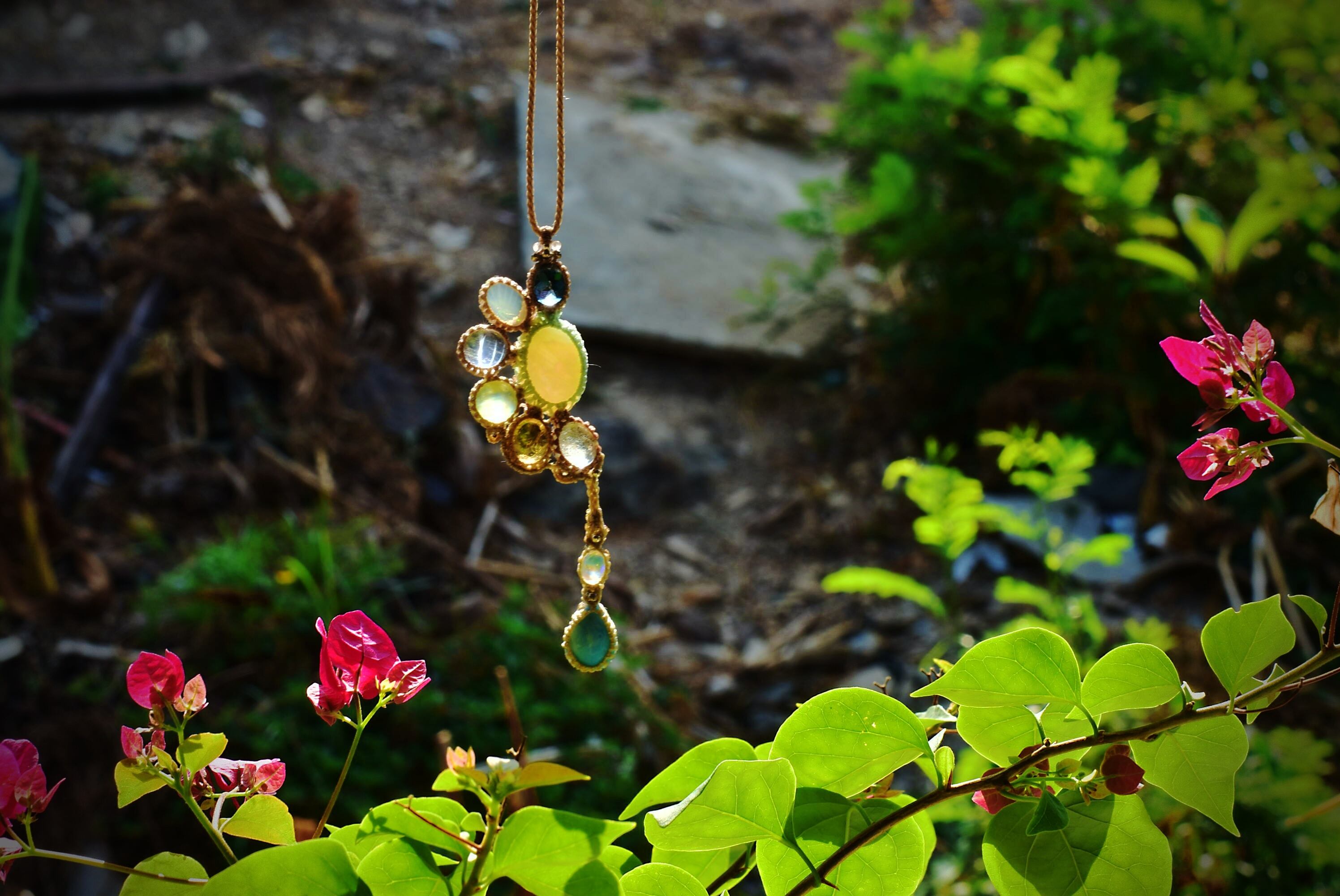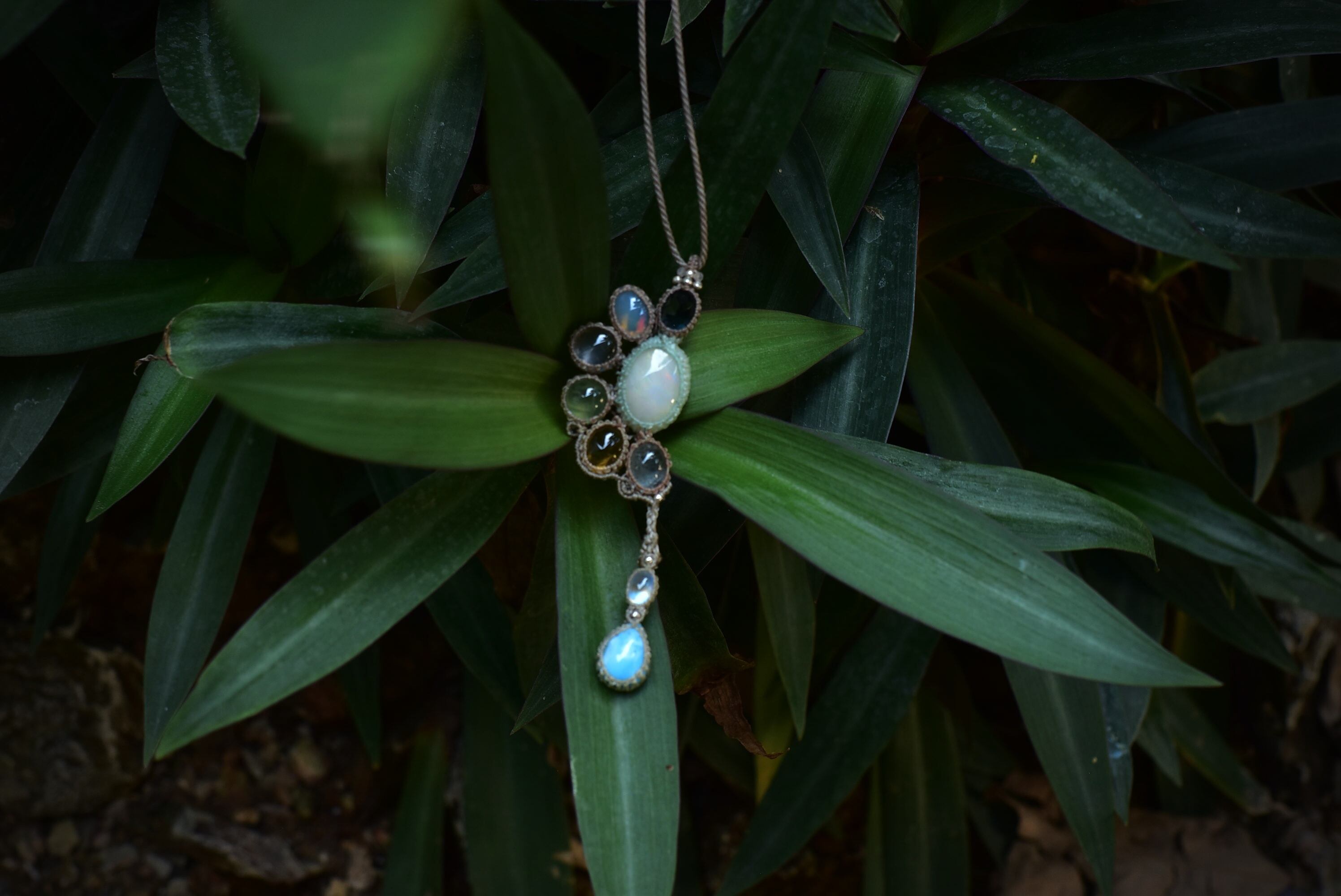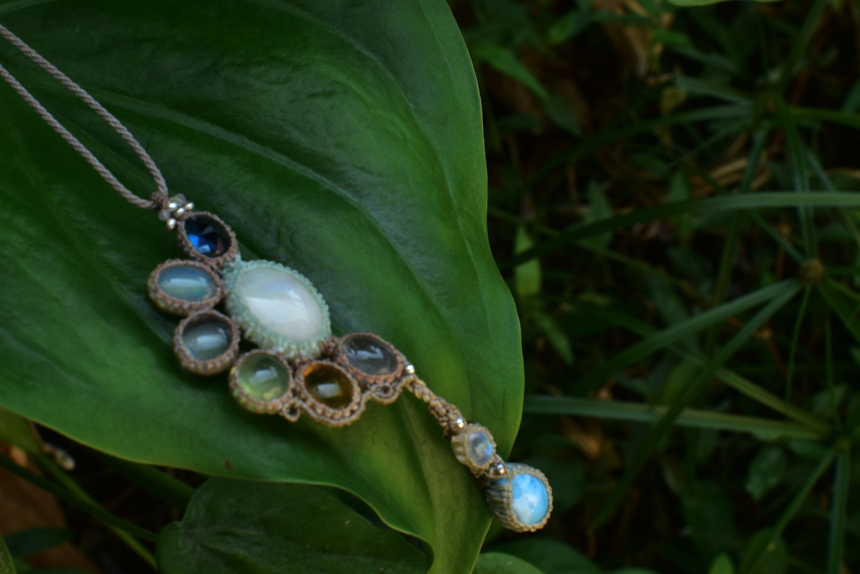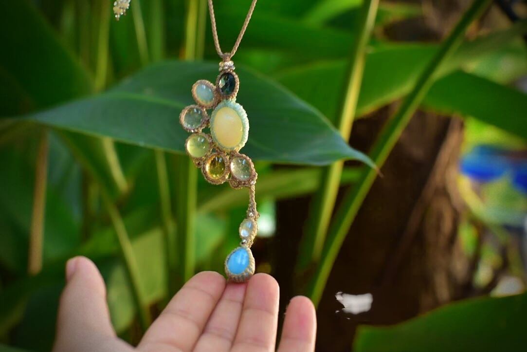 トパーズとオパール天然石のしずく★マクラメペンダント opal003