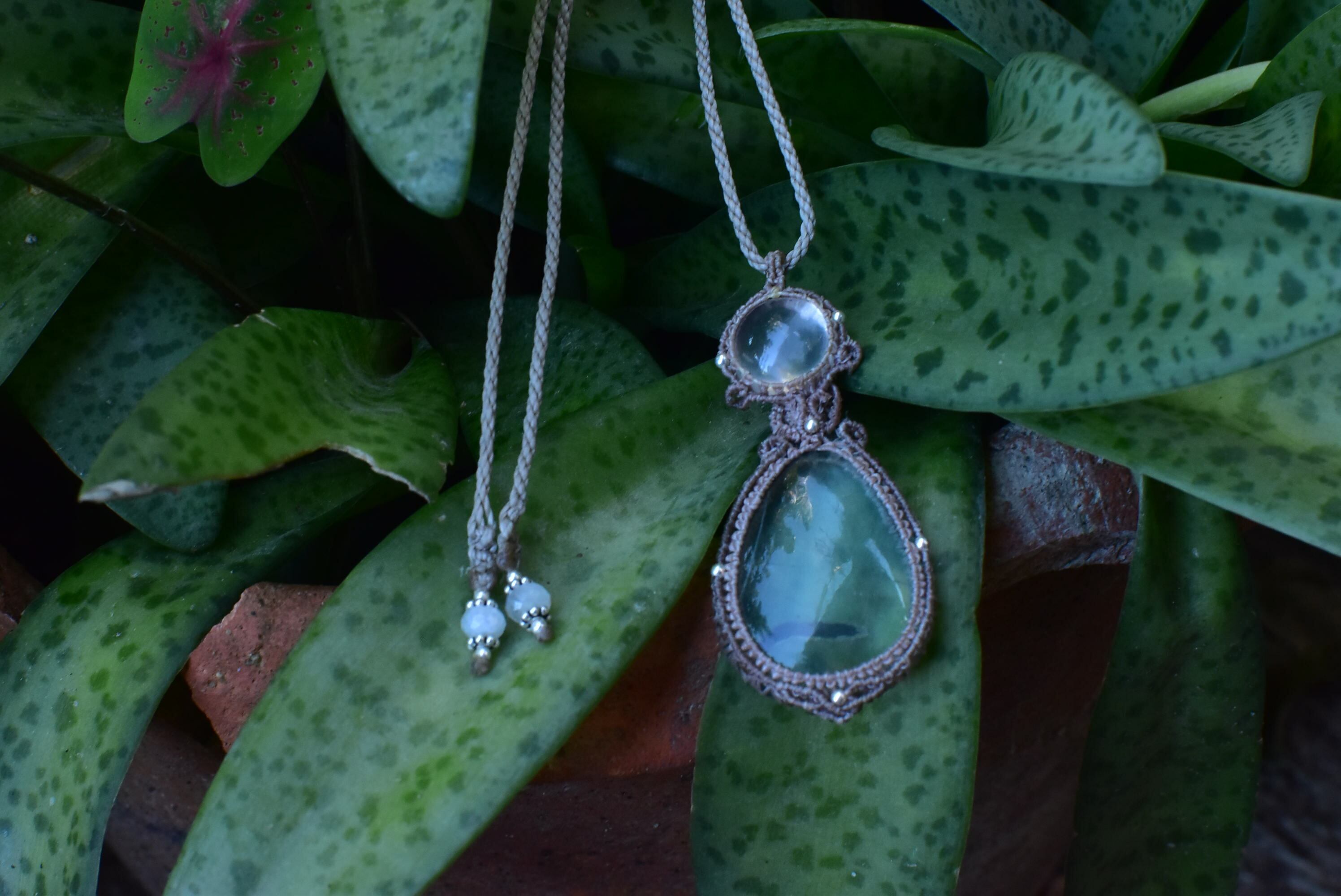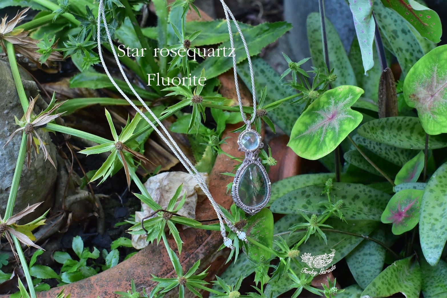 春のこもれ陽★スターローズクォーツとフローライト マクラメペンダントsrose002