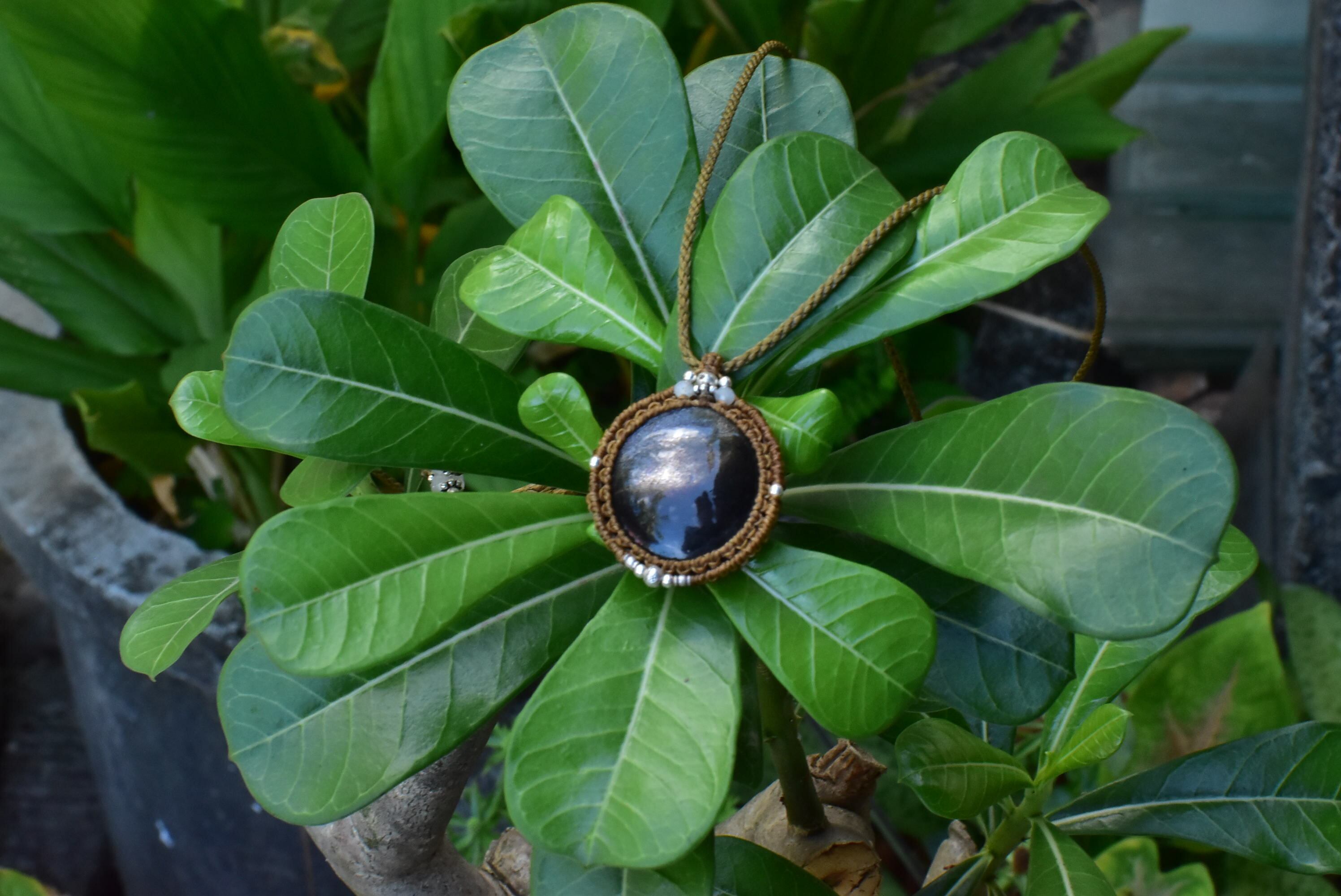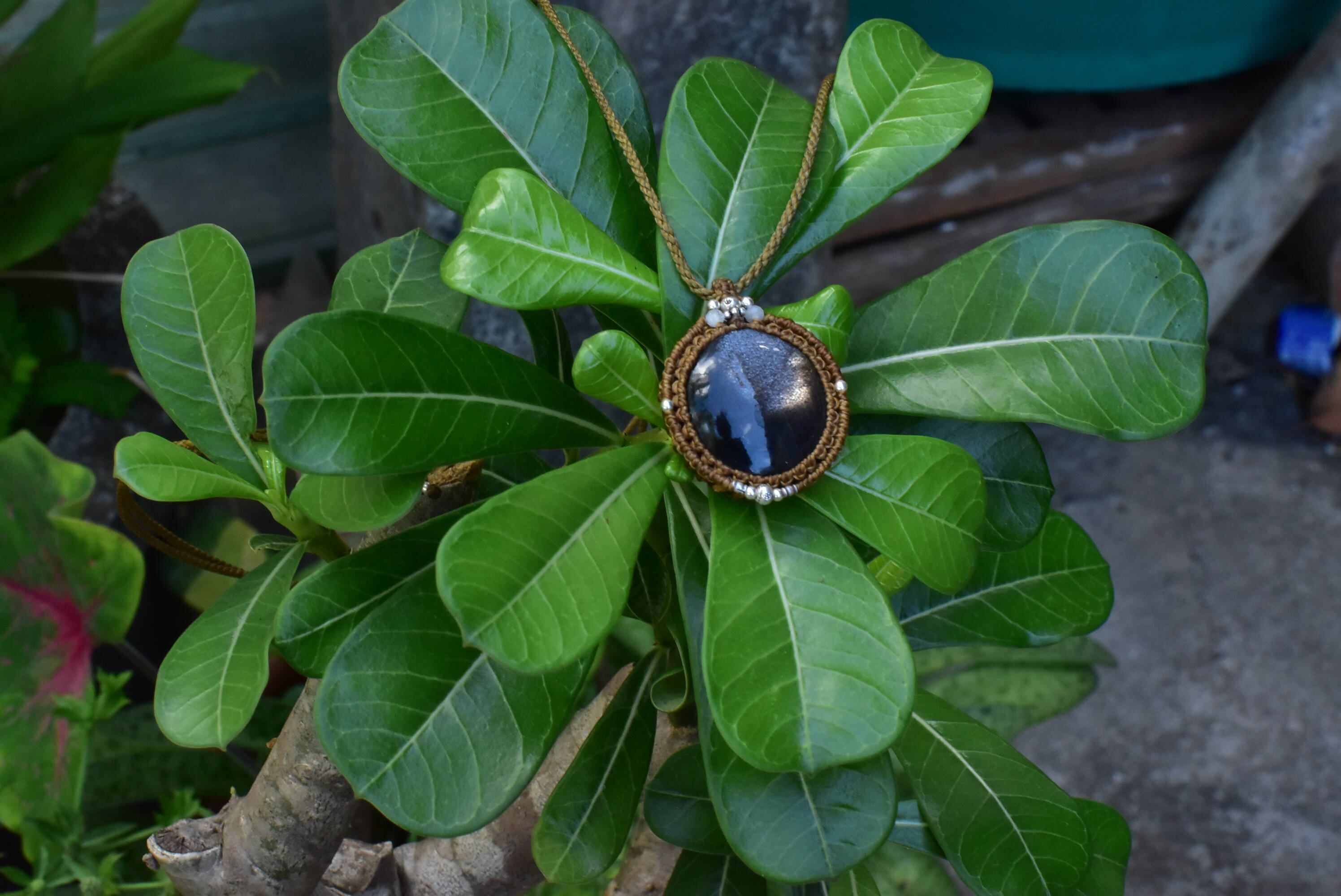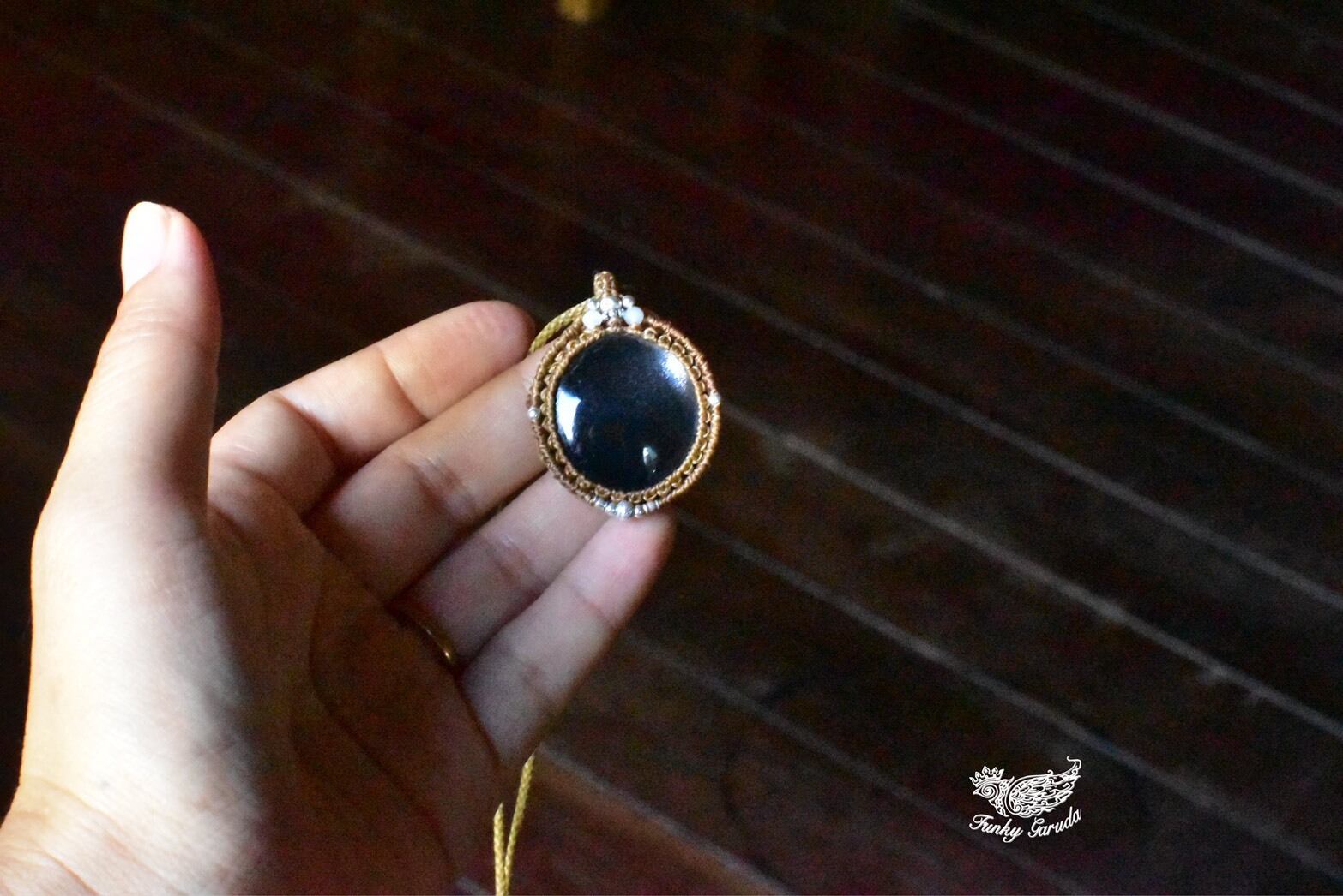 ブラックスターサンストーン マクラメペンダントbs001