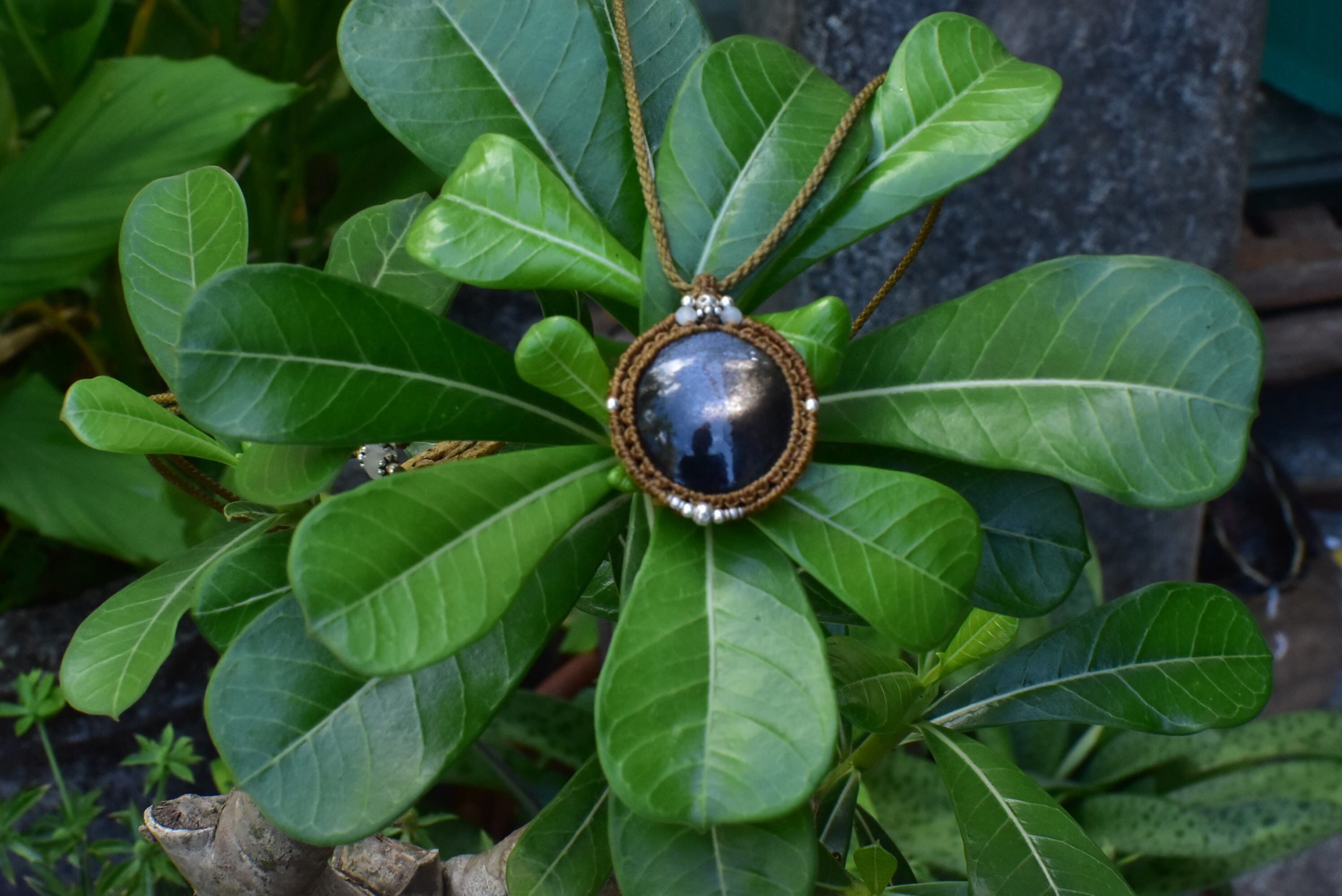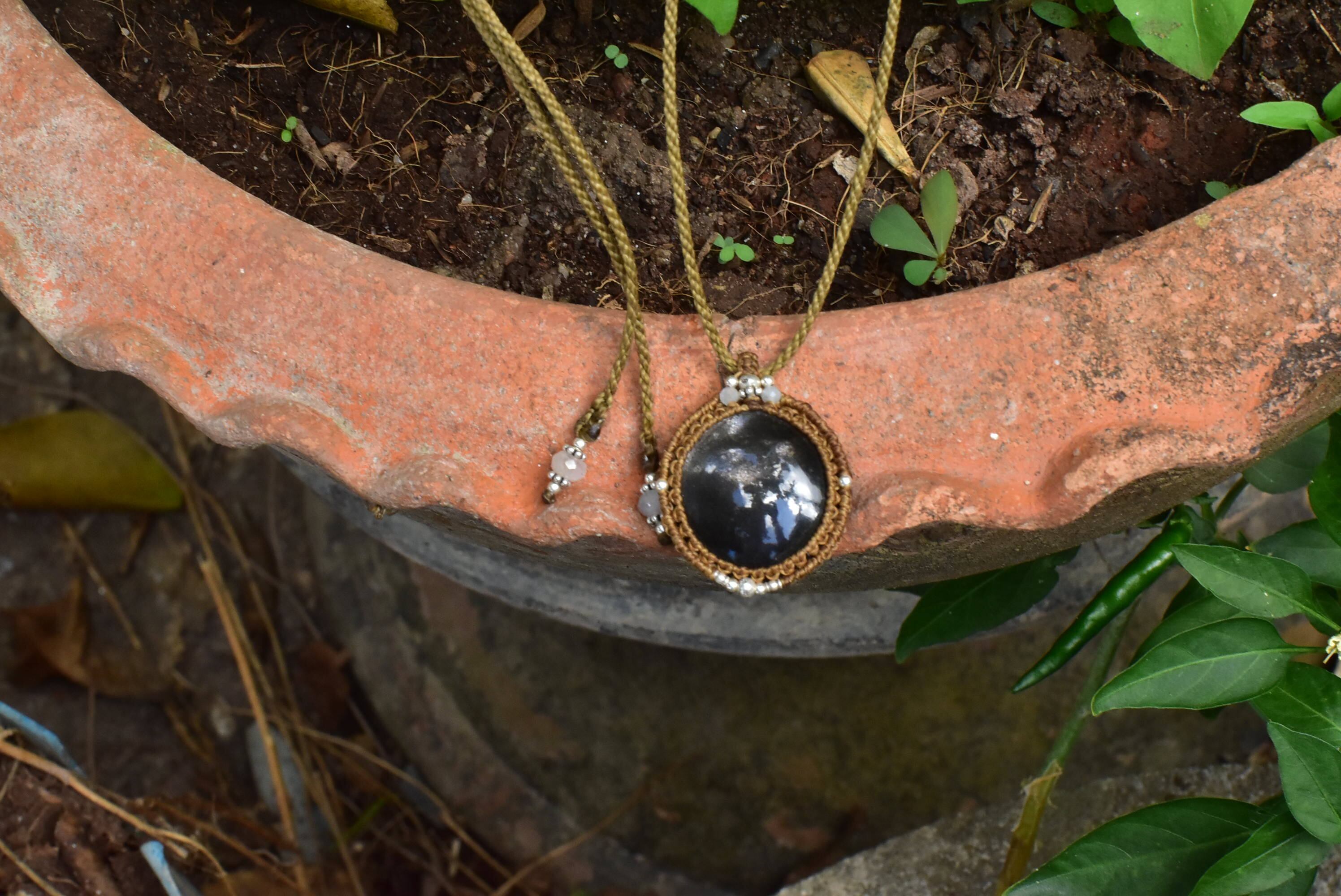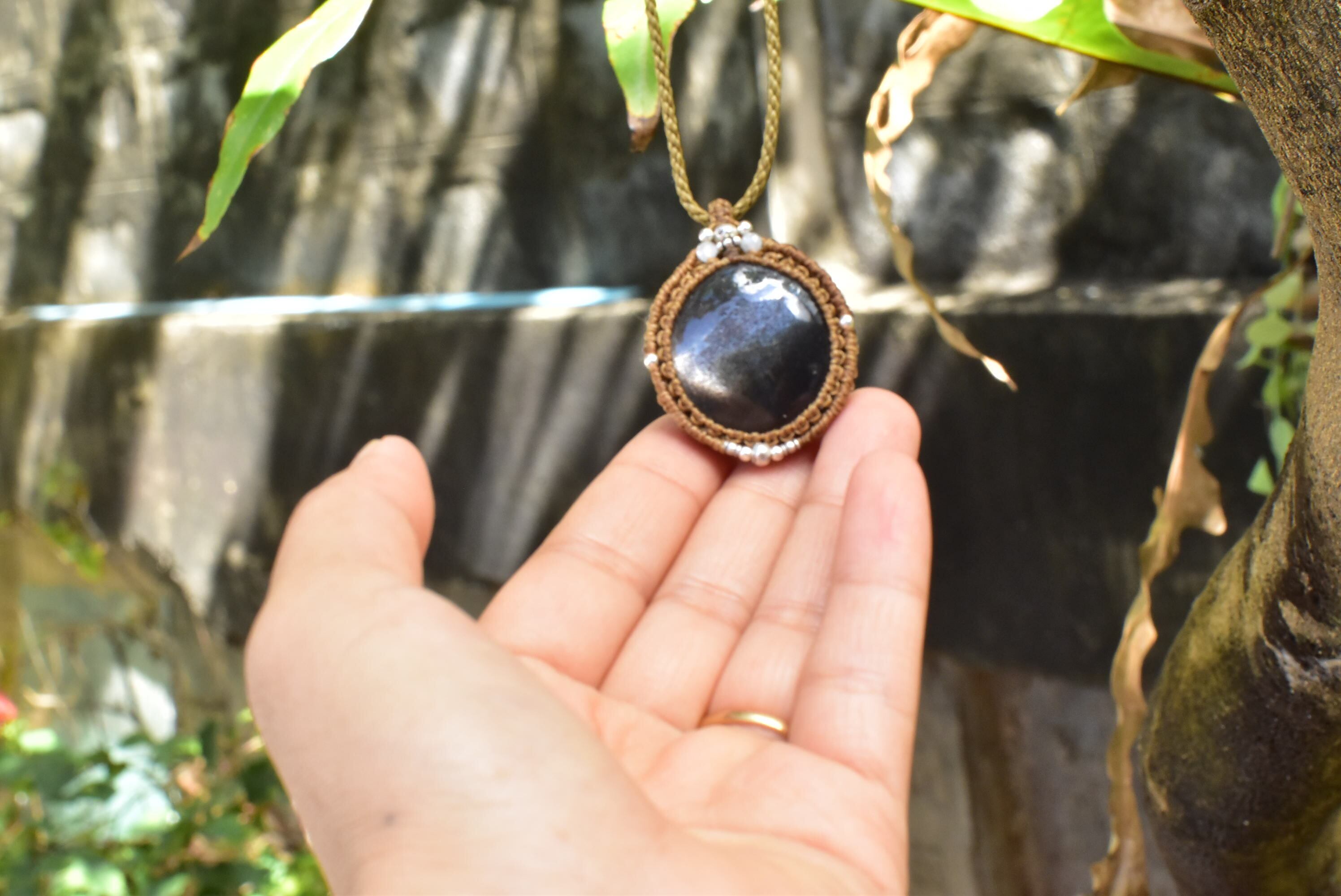 ブラックスターサンストーン マクラメペンダントbs001