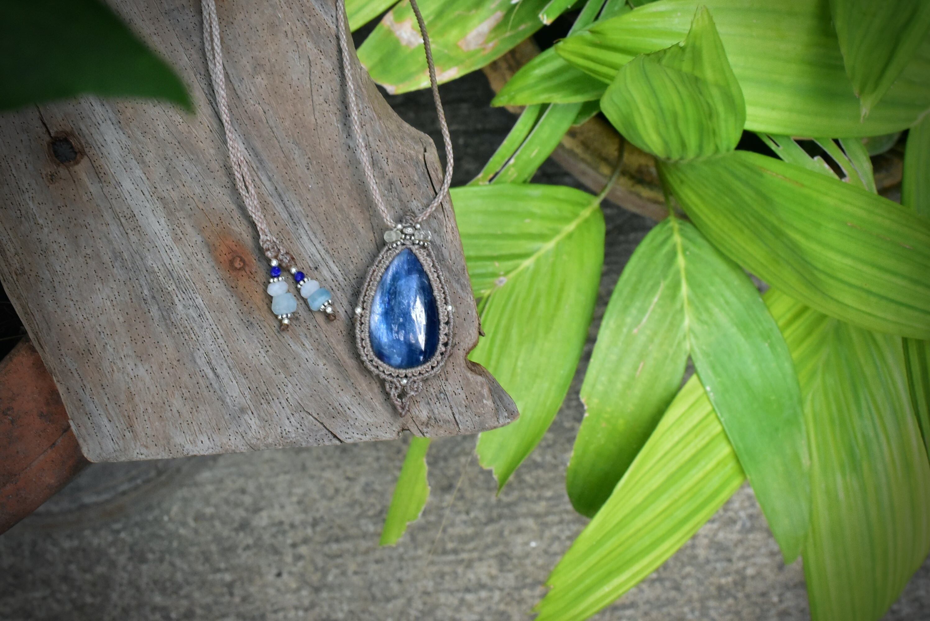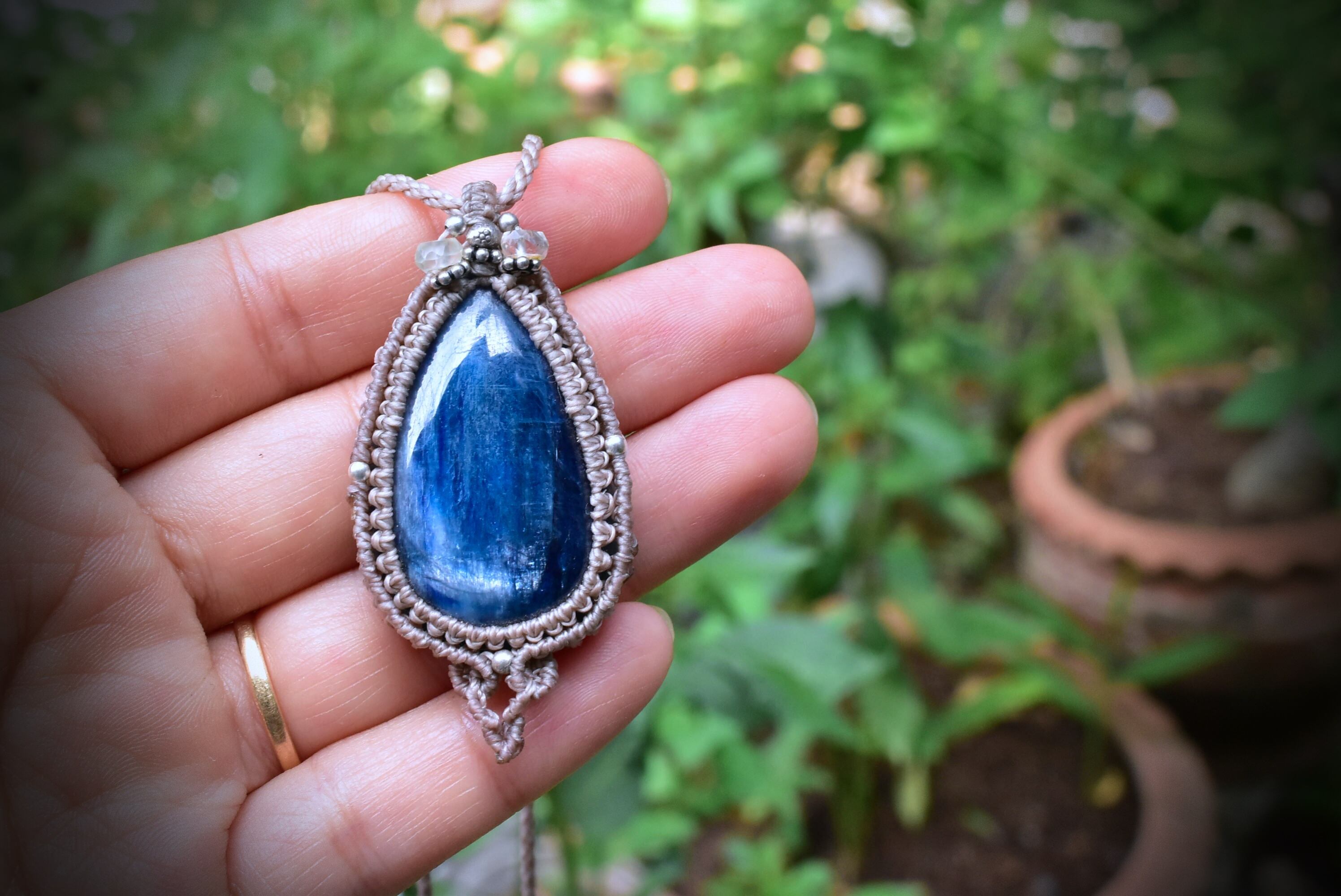 大粒★ブルーの奇跡★カイヤナイト マクラメペンダント kya012