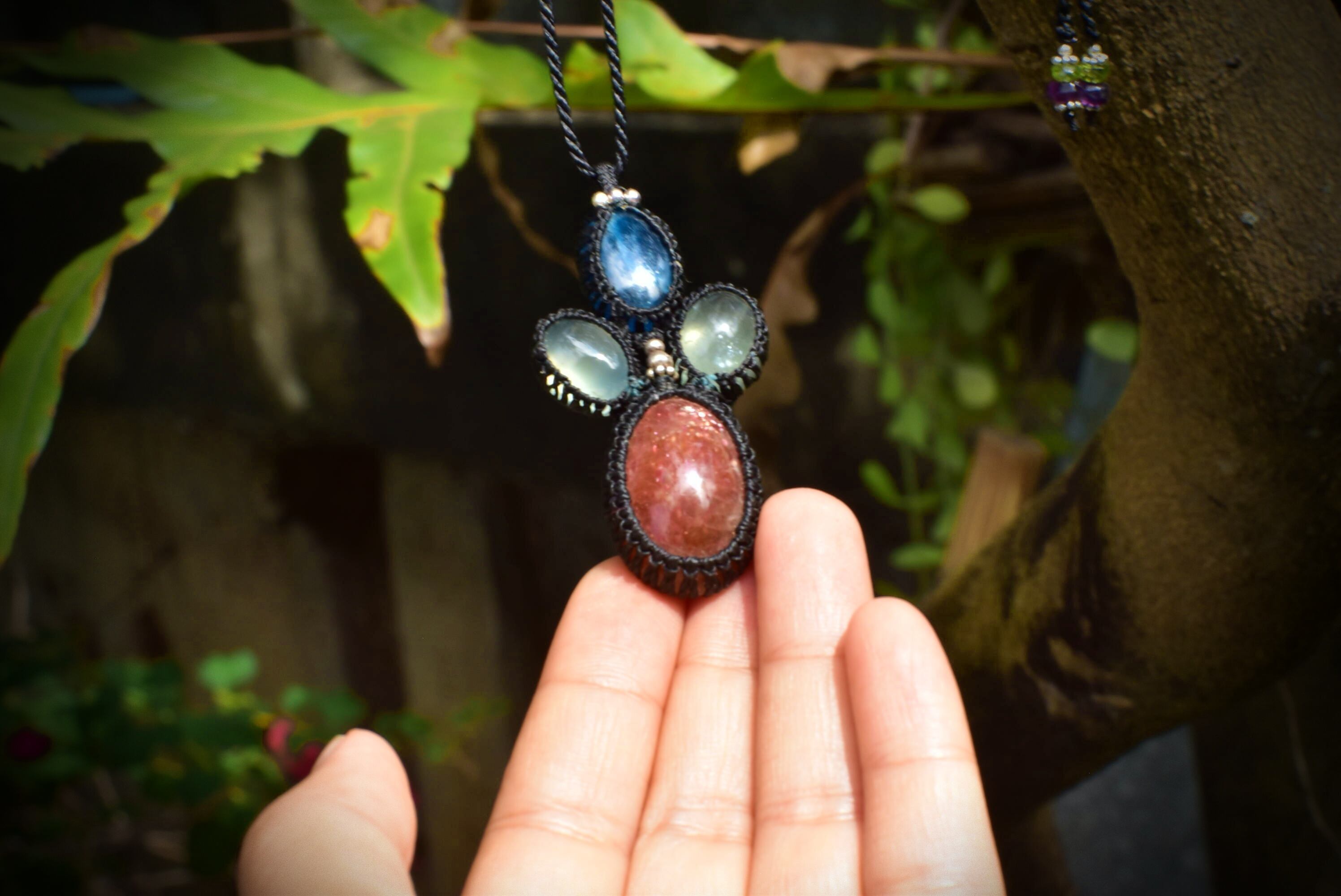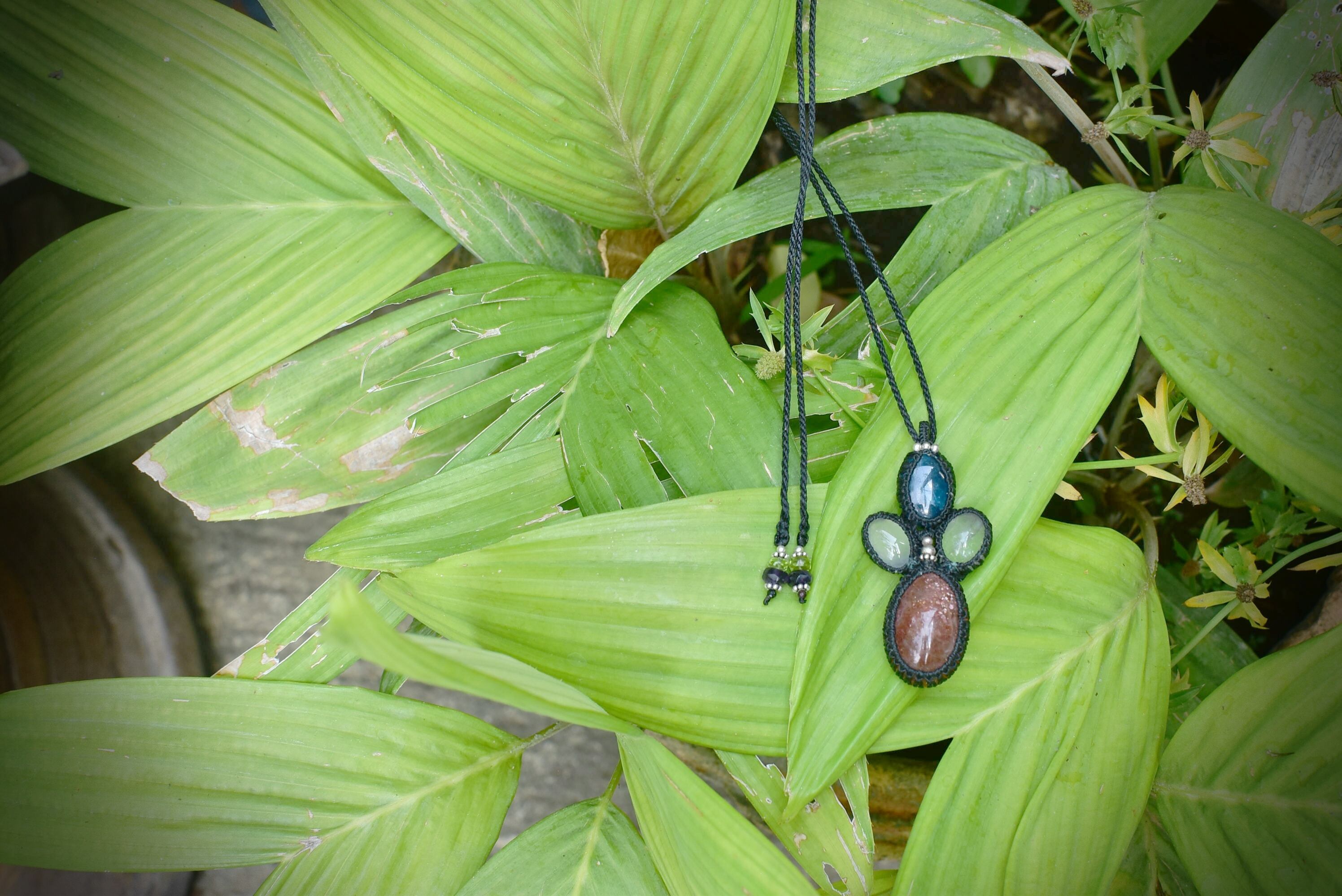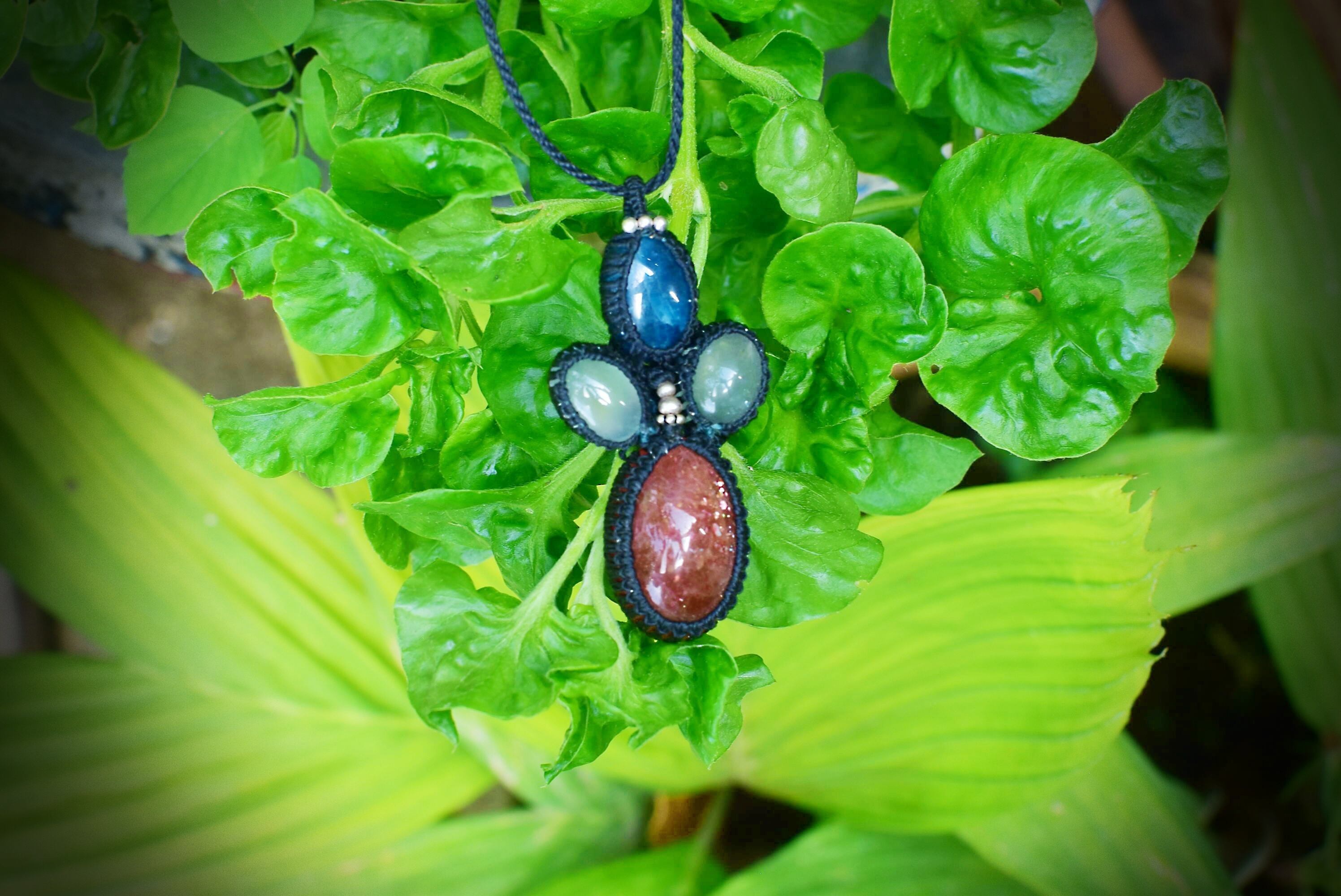 ブルーアパタイト プレナイト サンストーン マクラメペンダント sun008