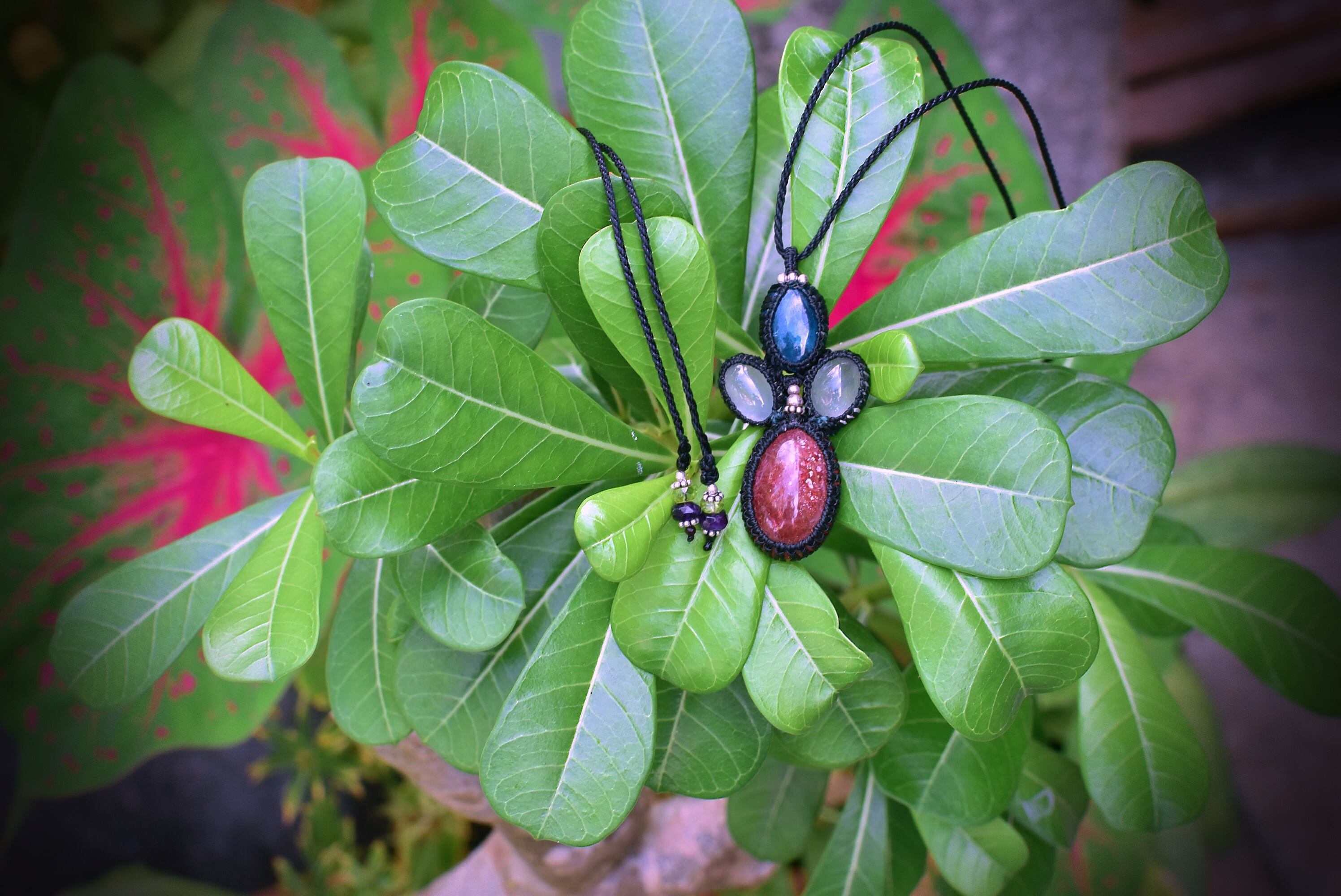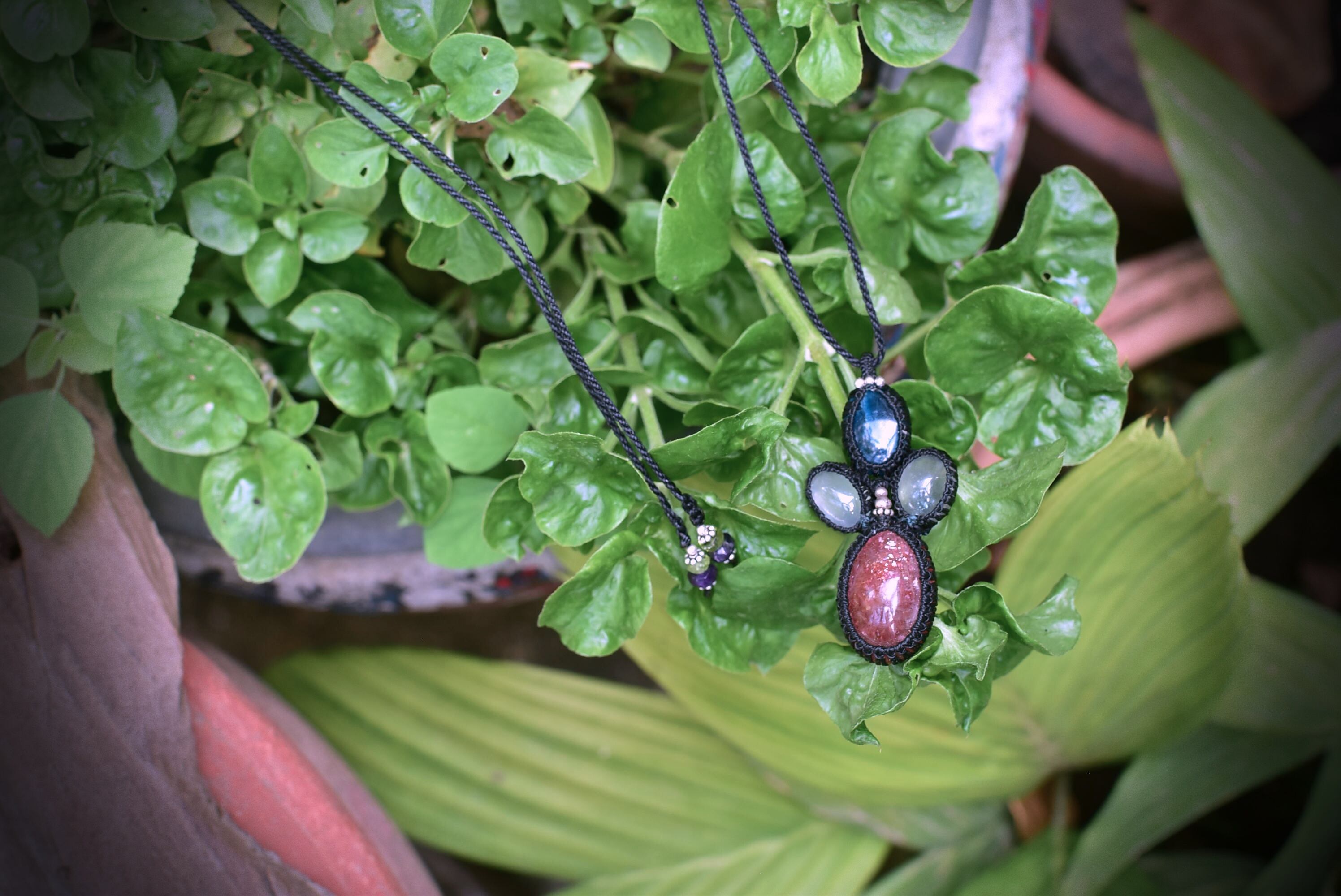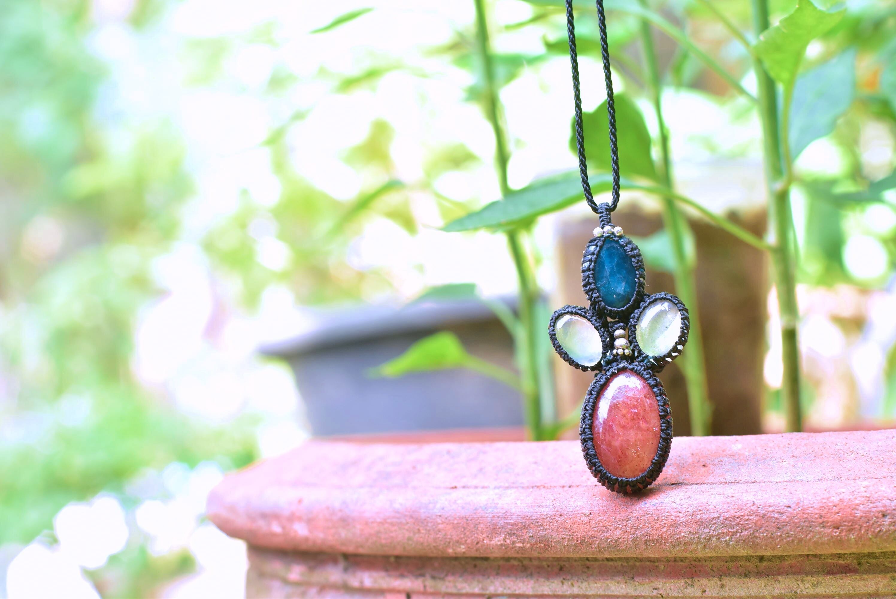 ブルーアパタイト プレナイト サンストーン マクラメペンダント sun008