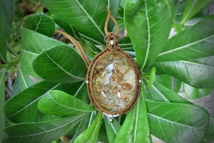 大粒★クラックイン ガーデンクォーツ マクラメペンダント garm125