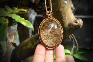 沸々と水晶の中で沸騰する内包物が美しいものをマクラメペンダントに仕上げました。