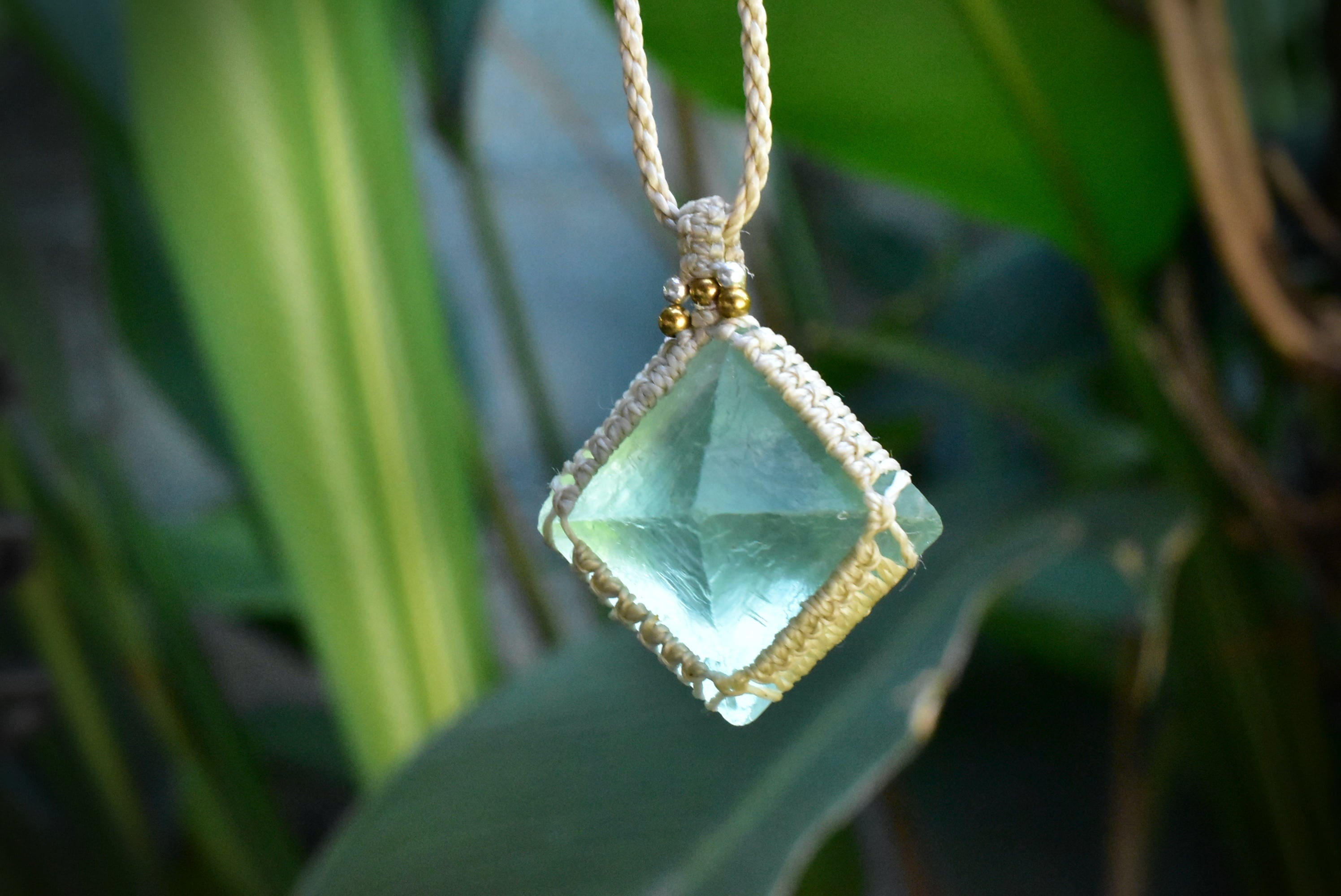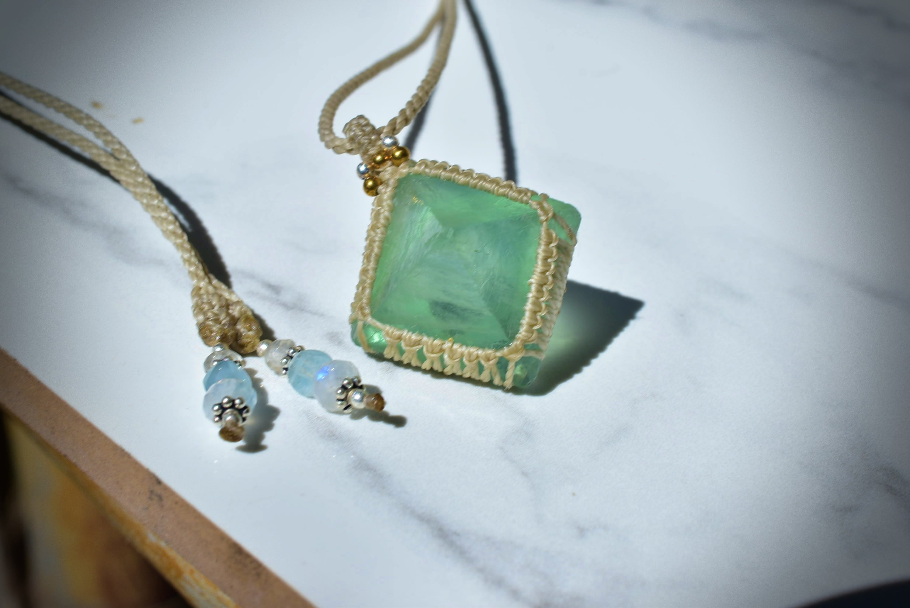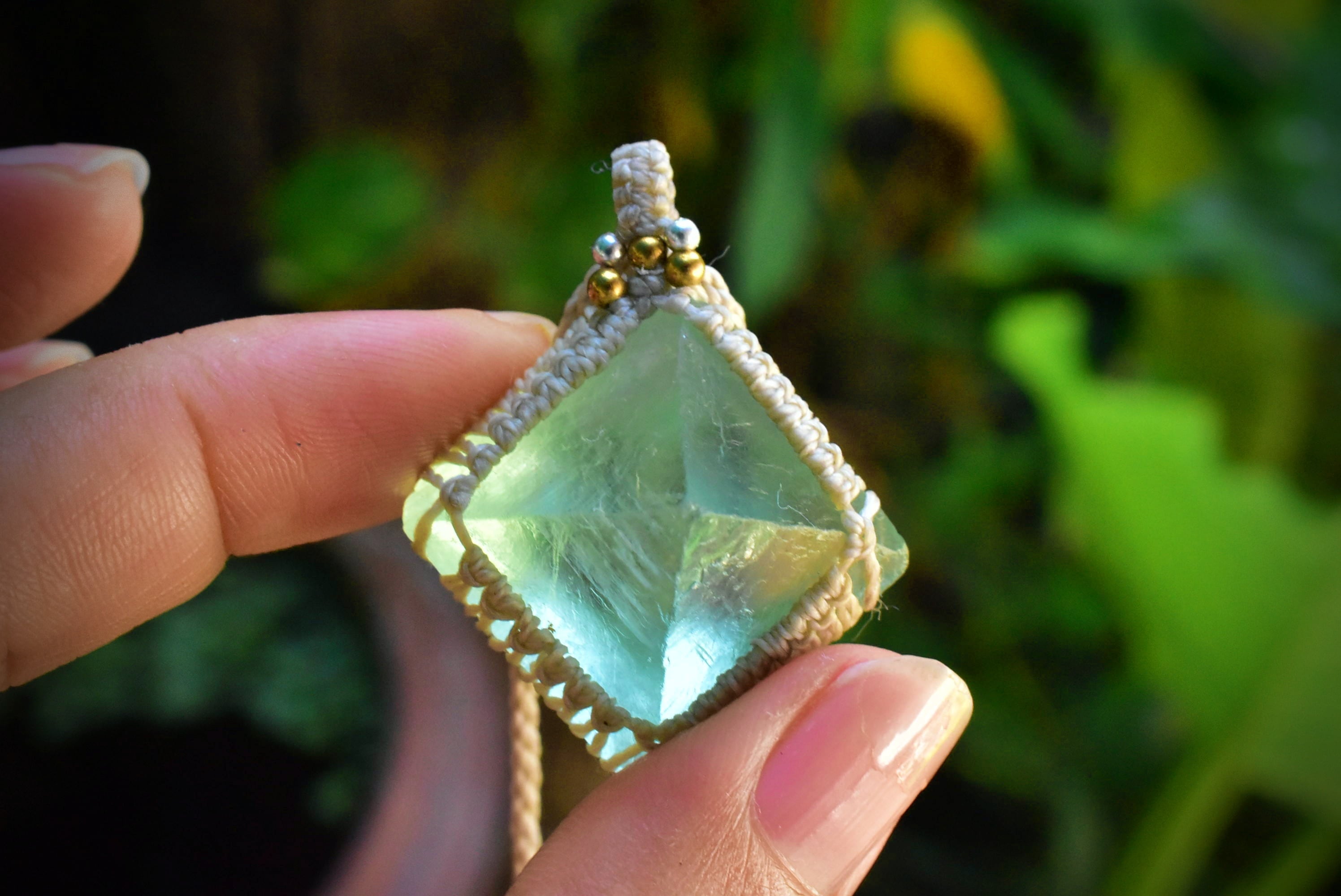 透き通るグリーン★フローライト マクラメペンダントflo009
