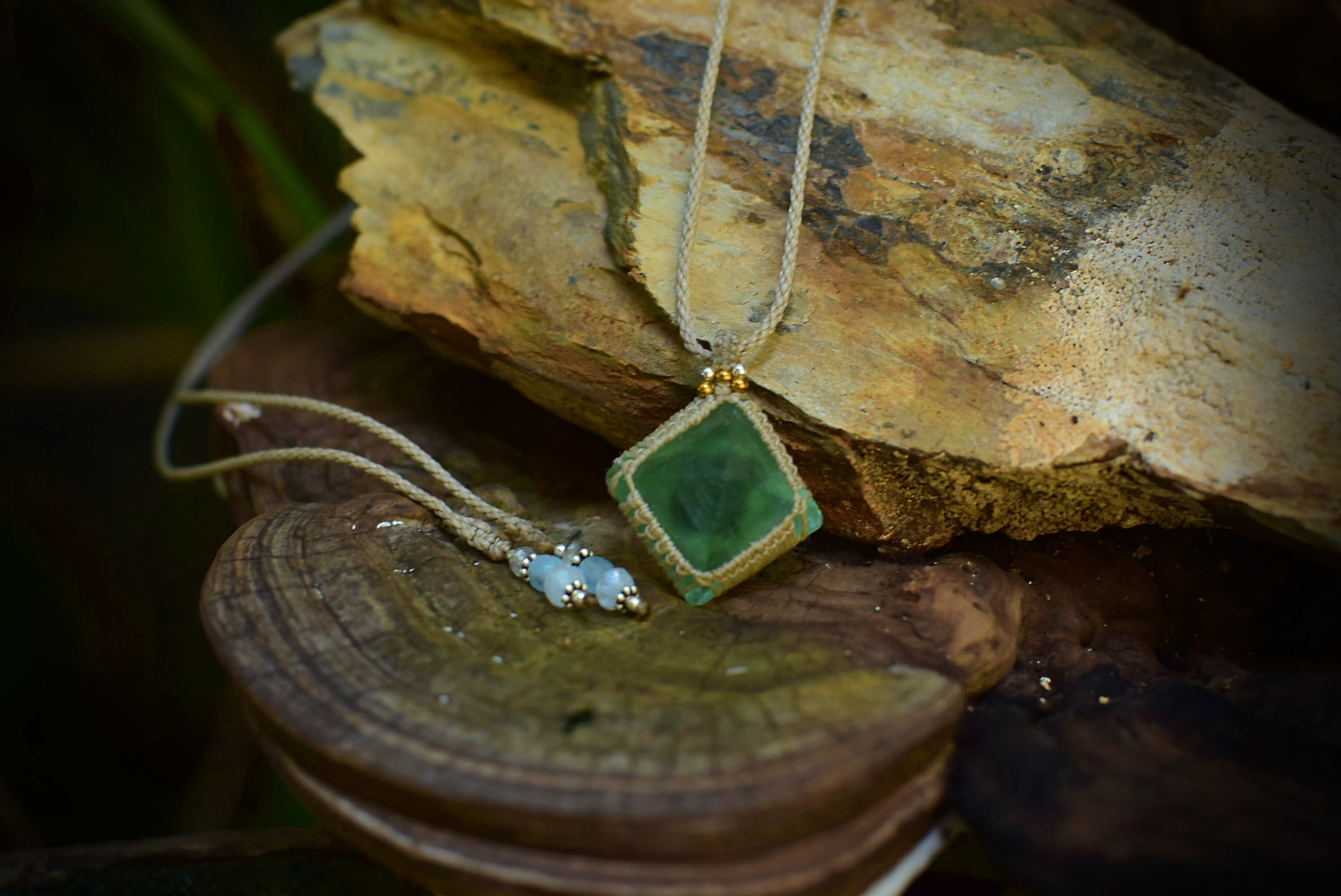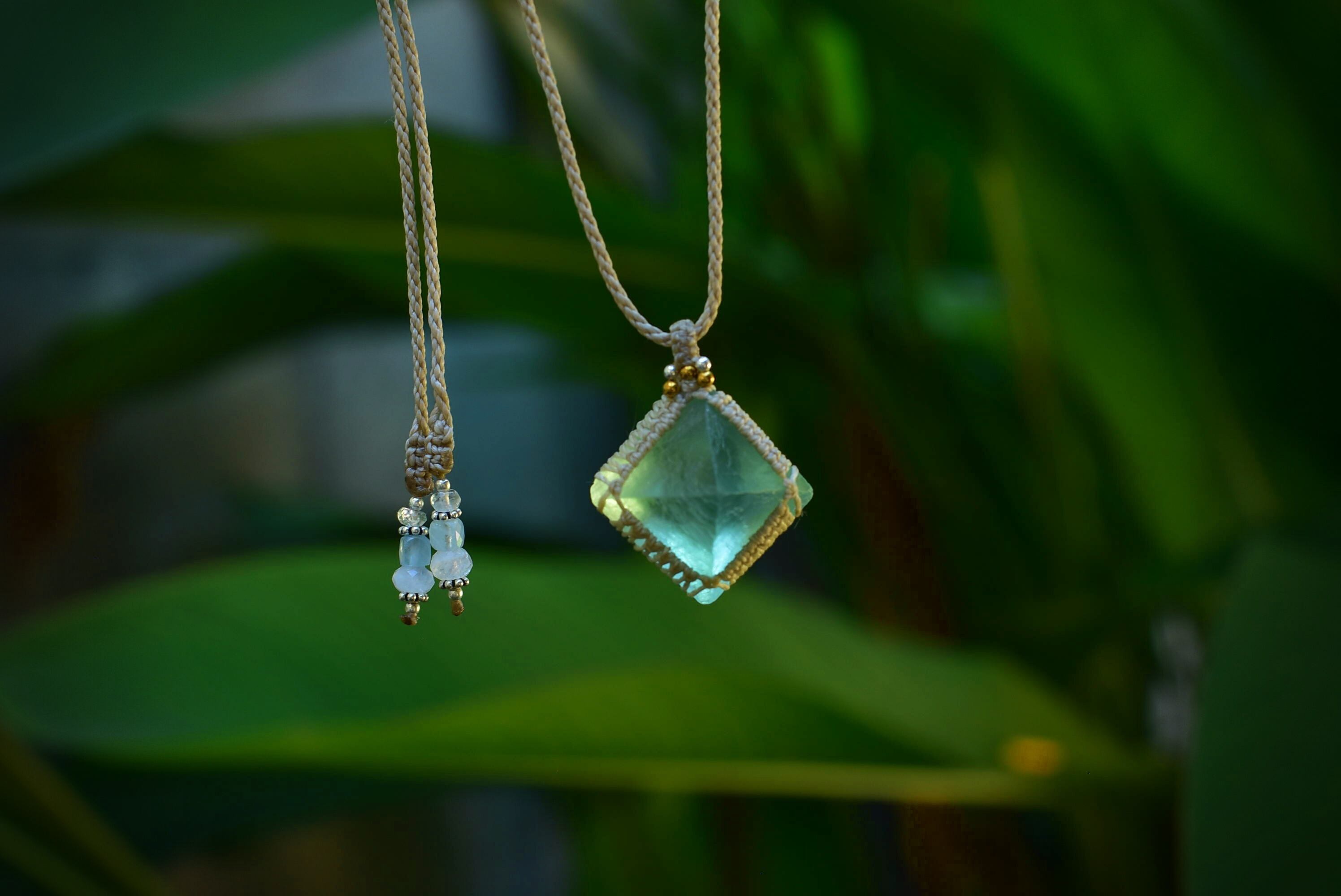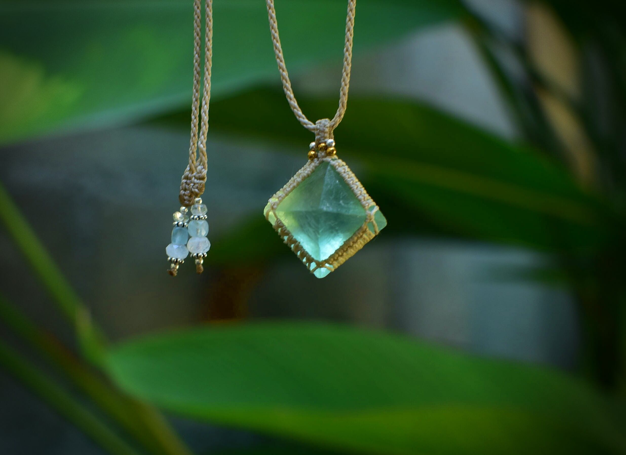 透き通るグリーン★フローライト マクラメペンダントflo009