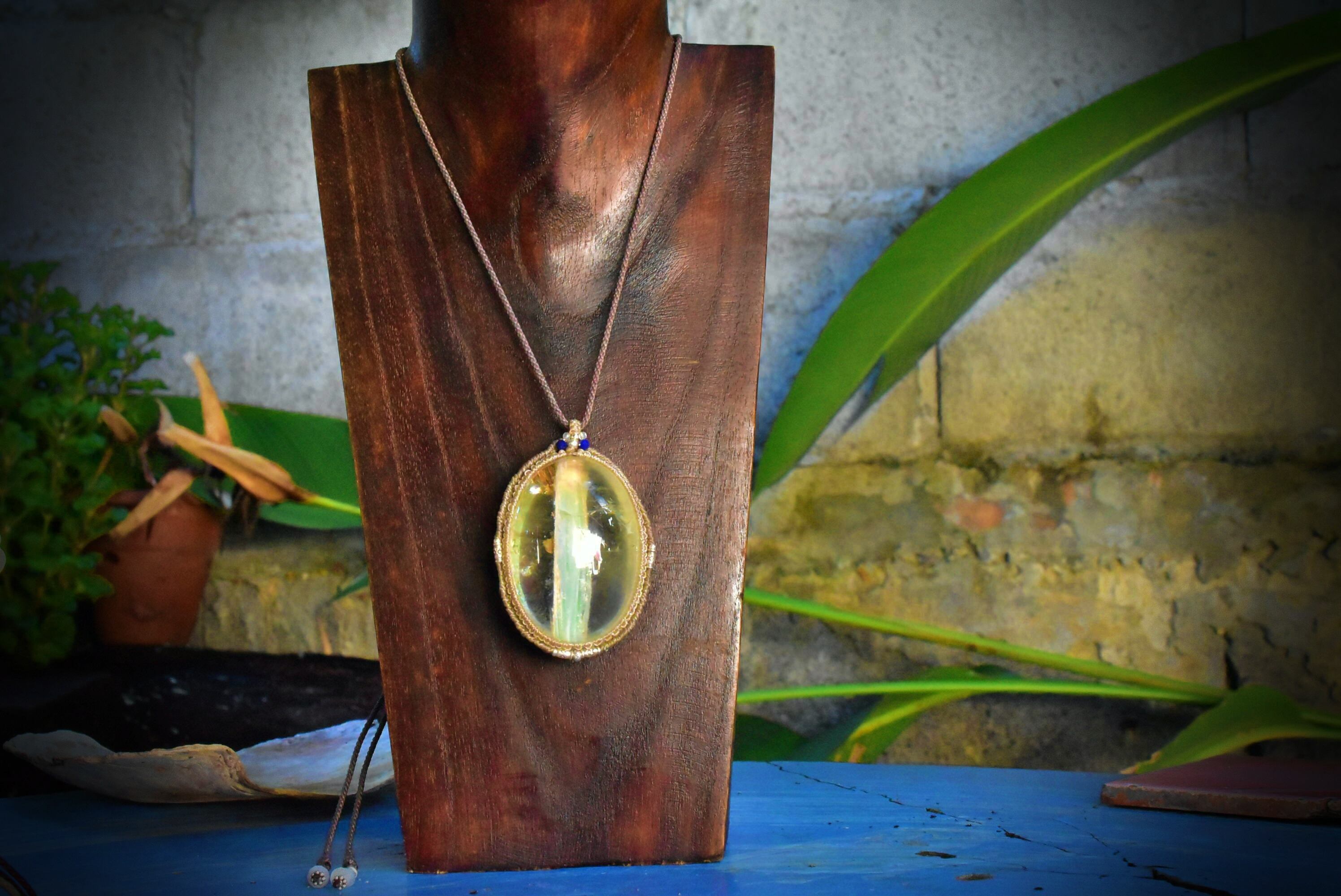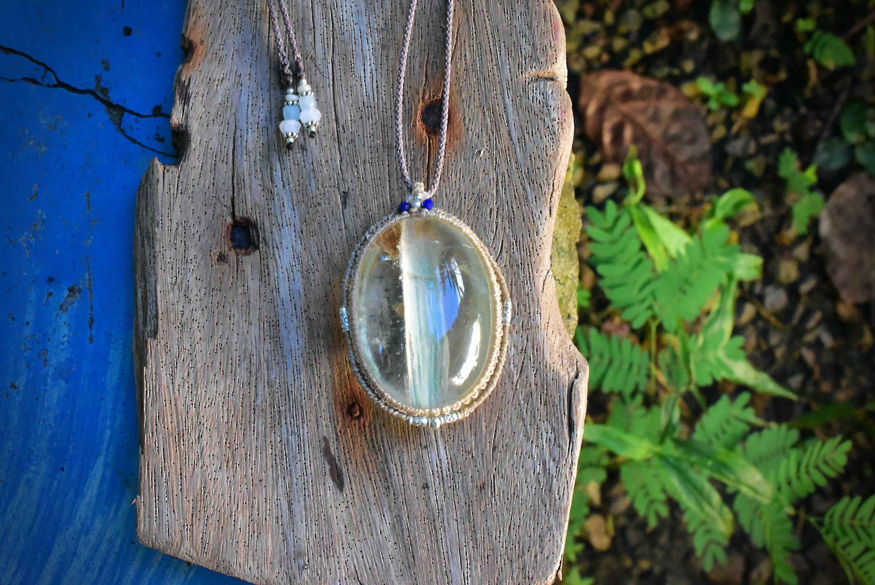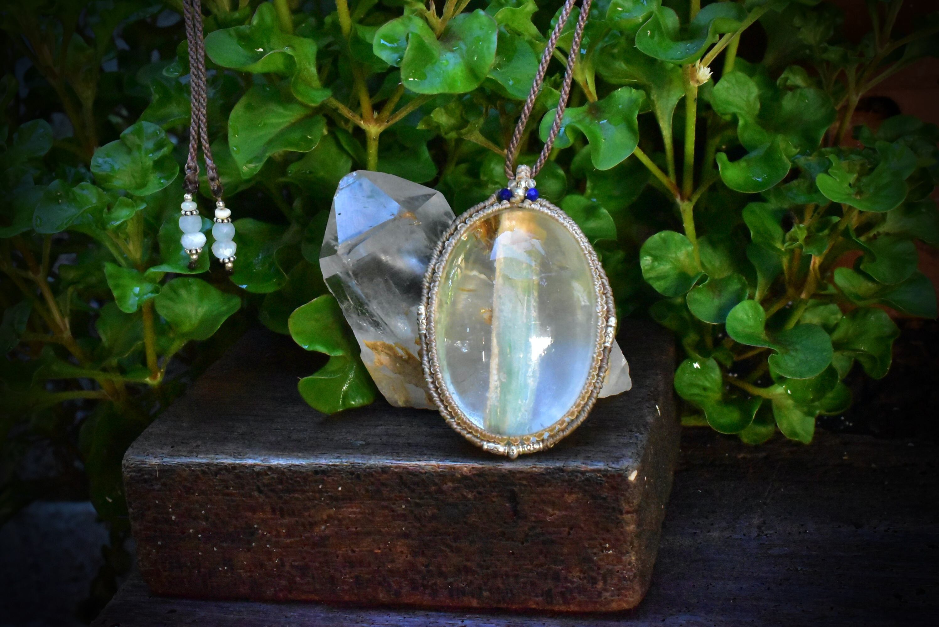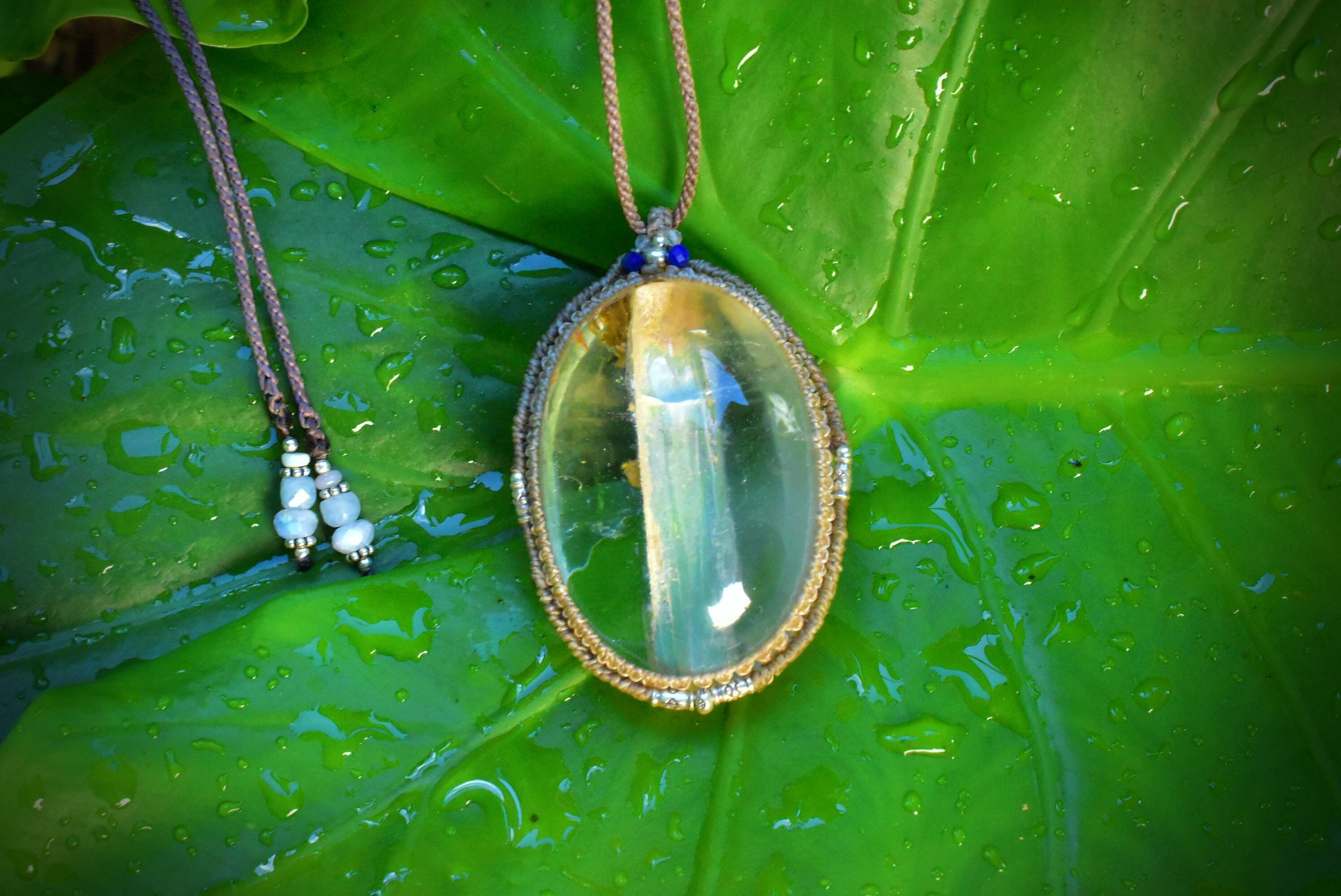 大きな牙★特大★ガーデンクォーツ マクラメペンダントgarm128