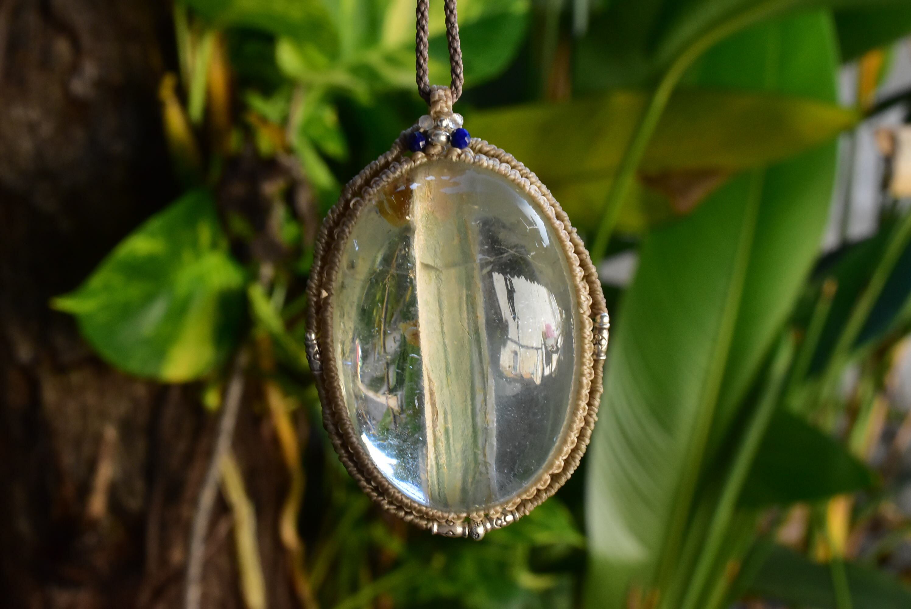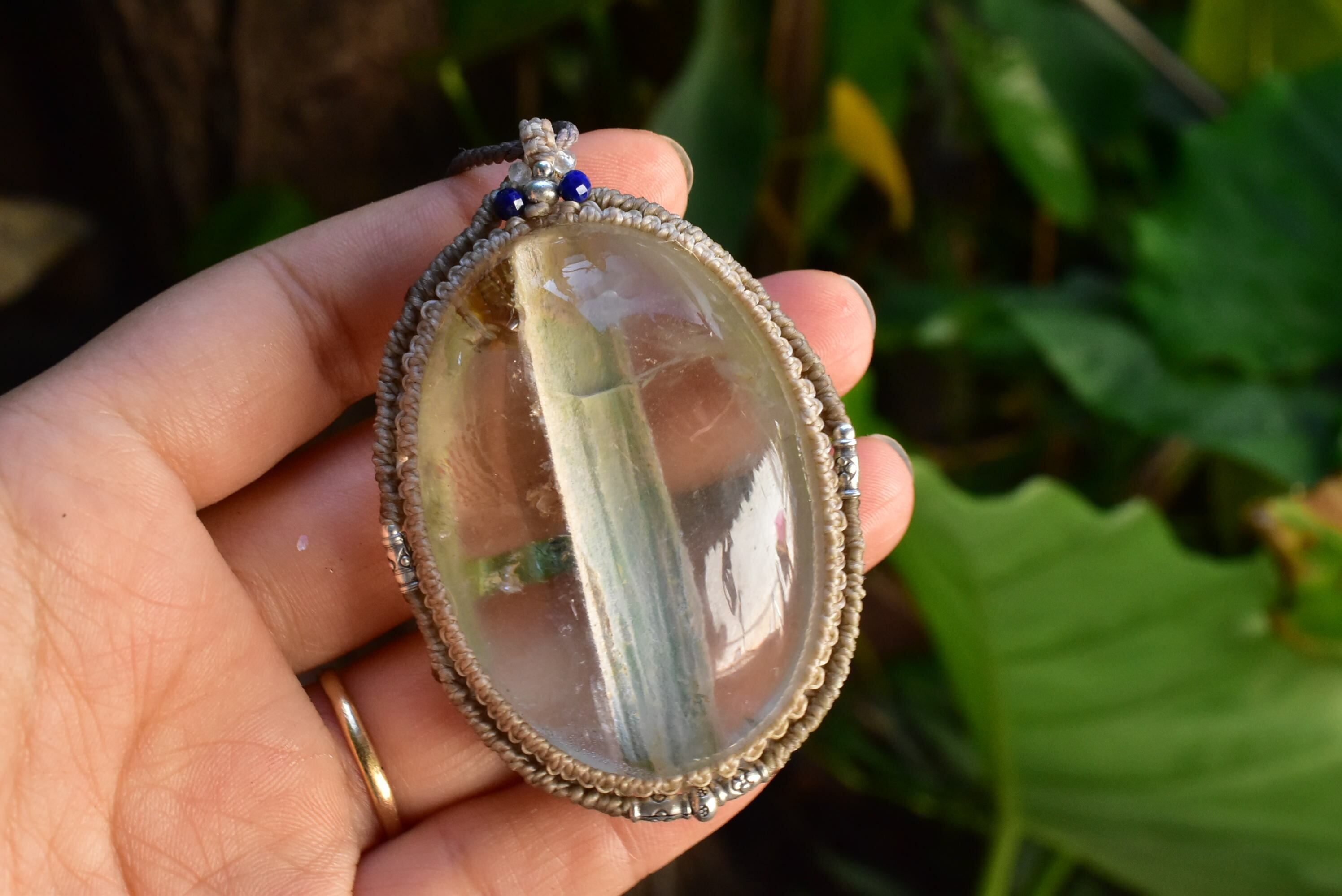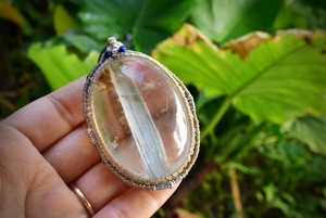 大粒サイズの水晶の中に牙のような1本のラインがしっかりと入り込んでいる