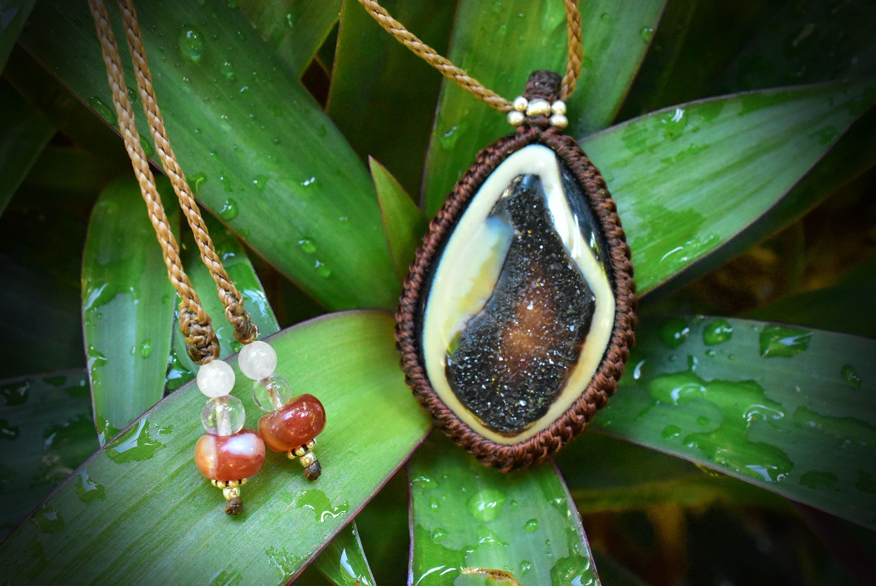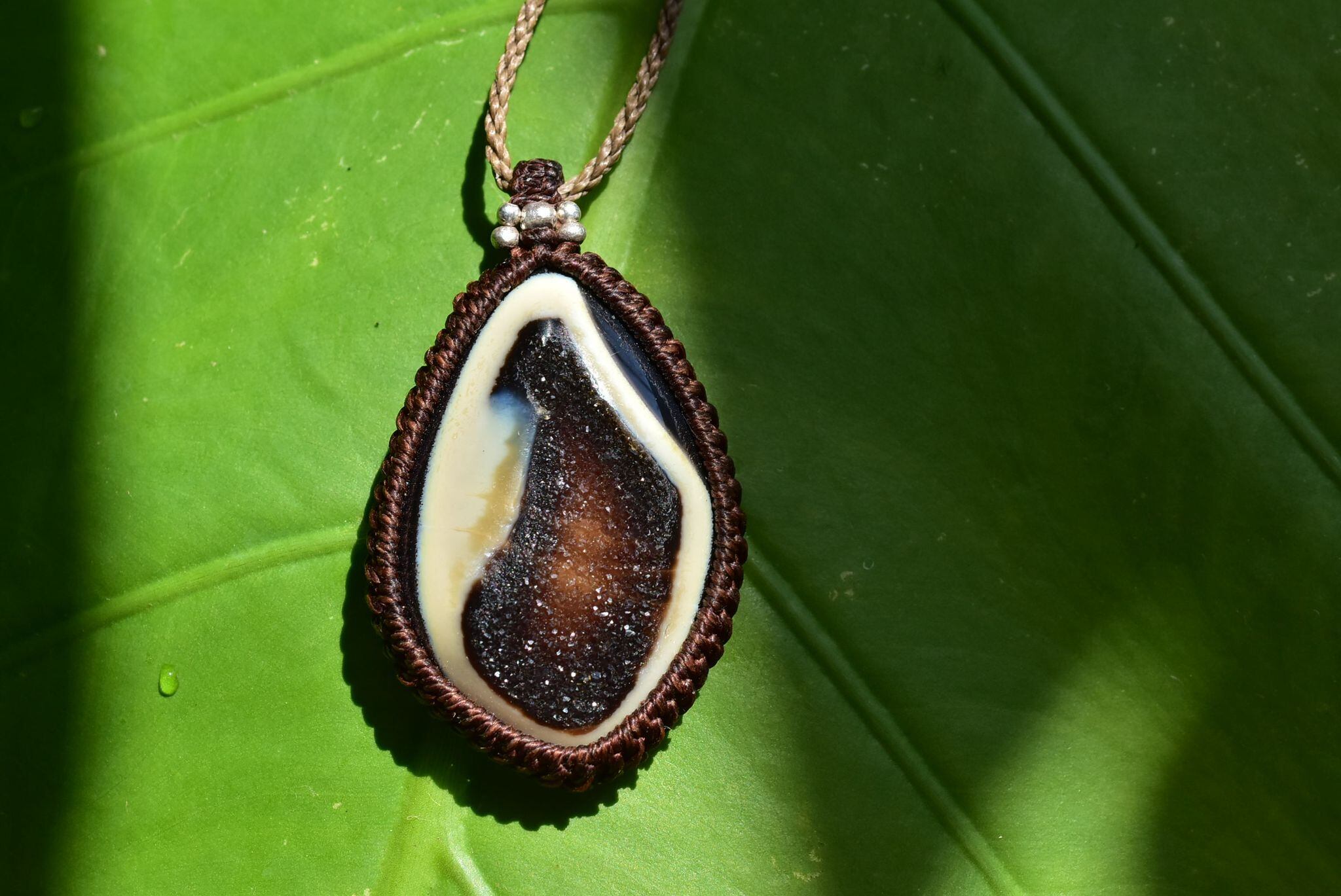 天然のラメ★ドゥルージーアゲート マクラメペンダント duy001