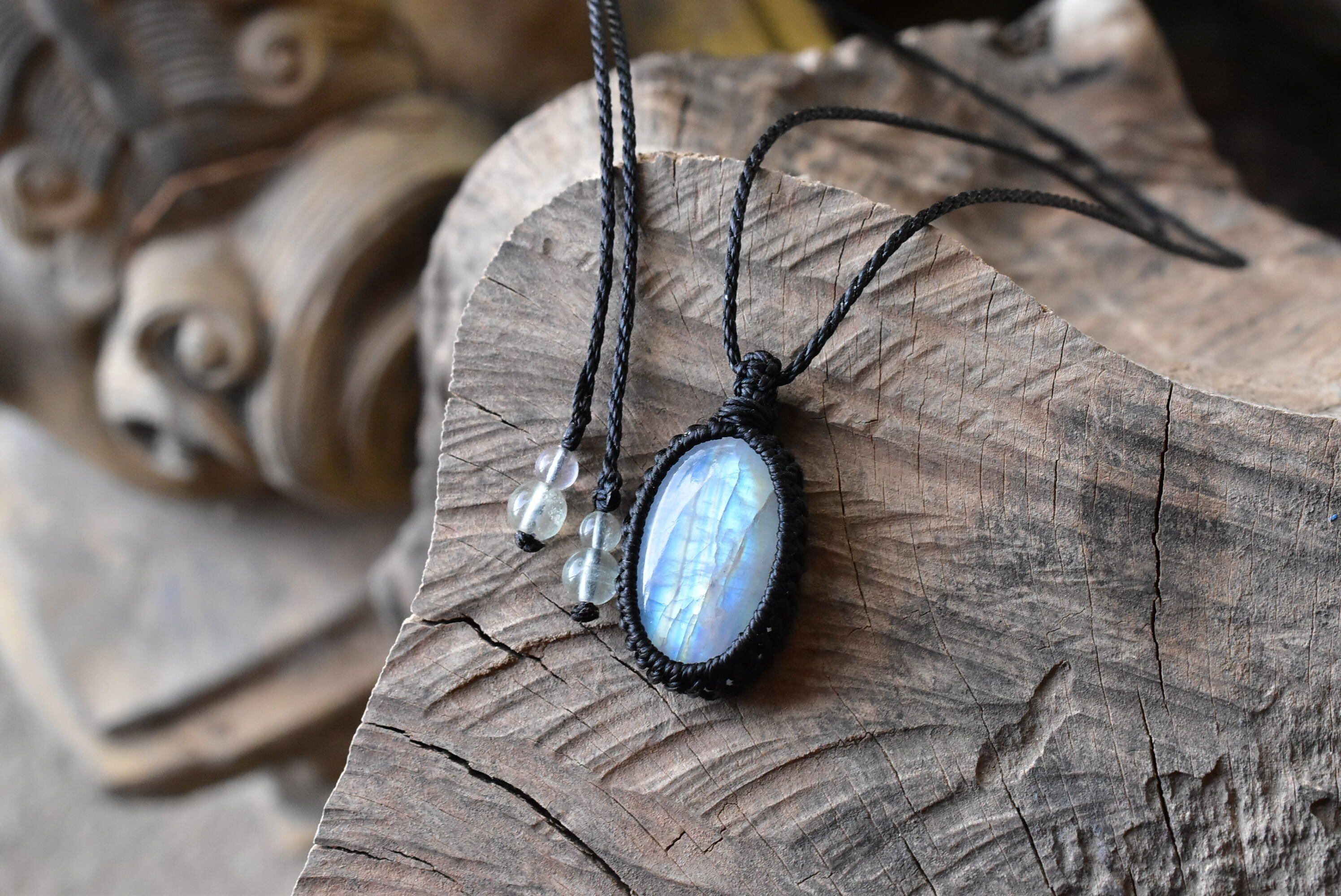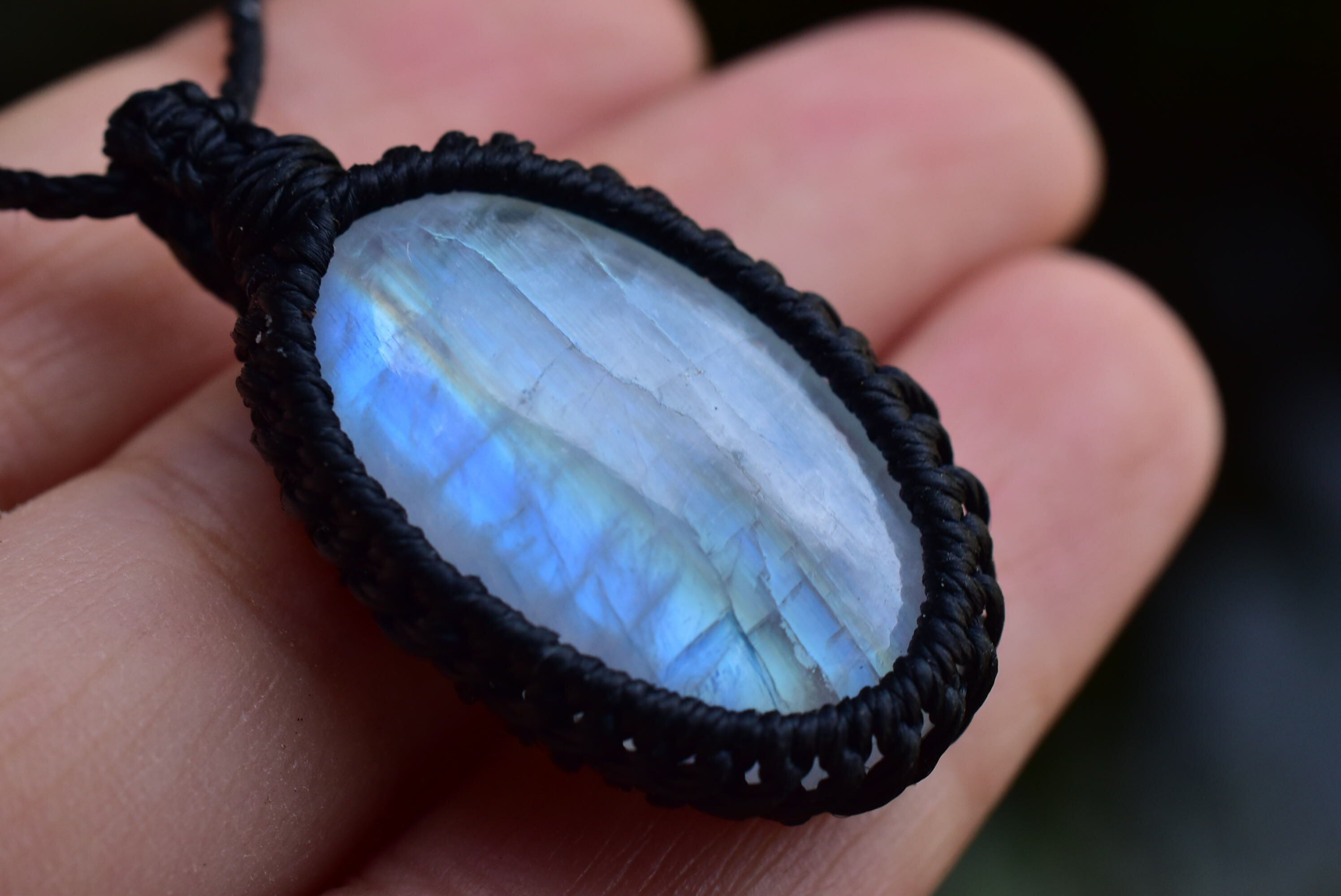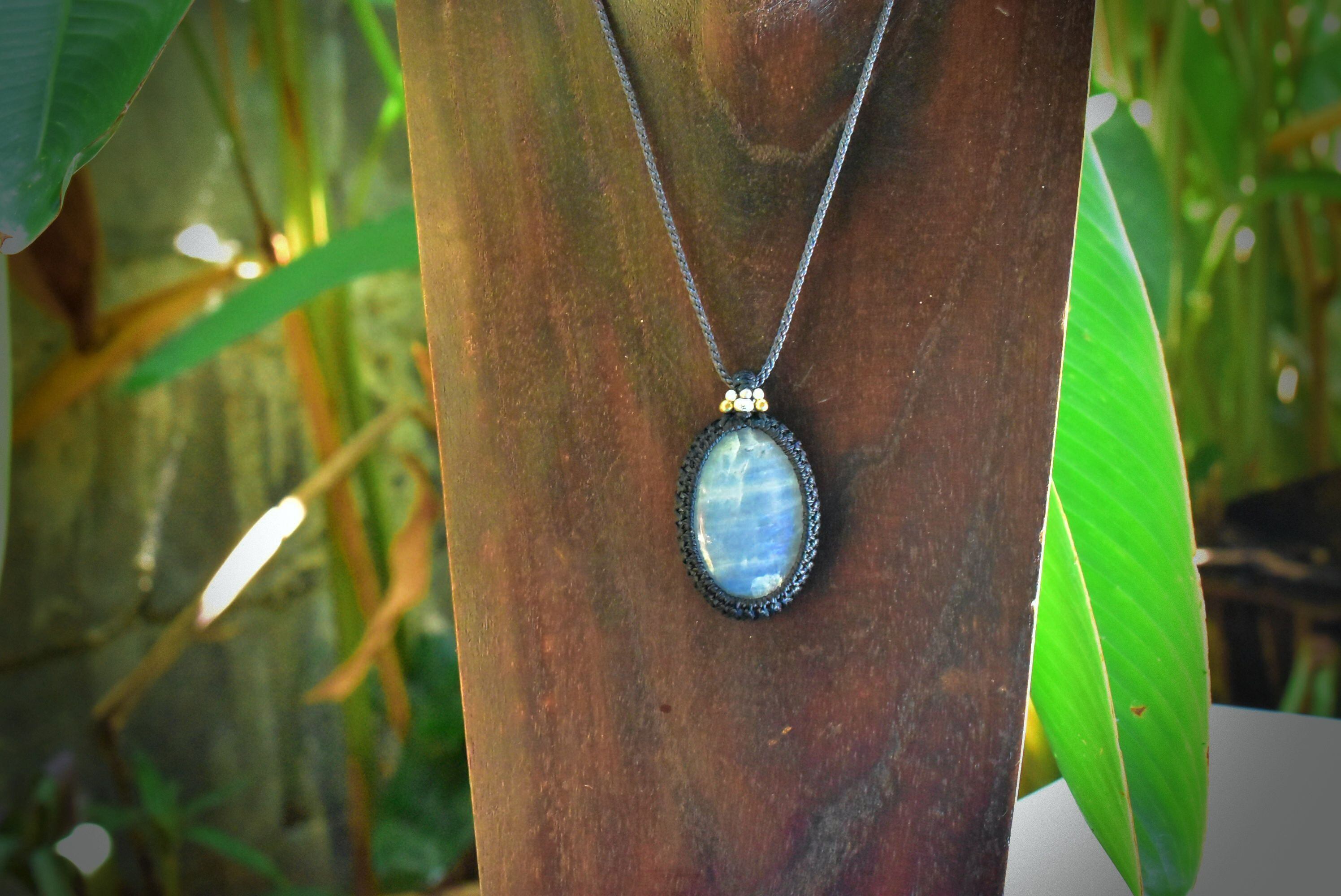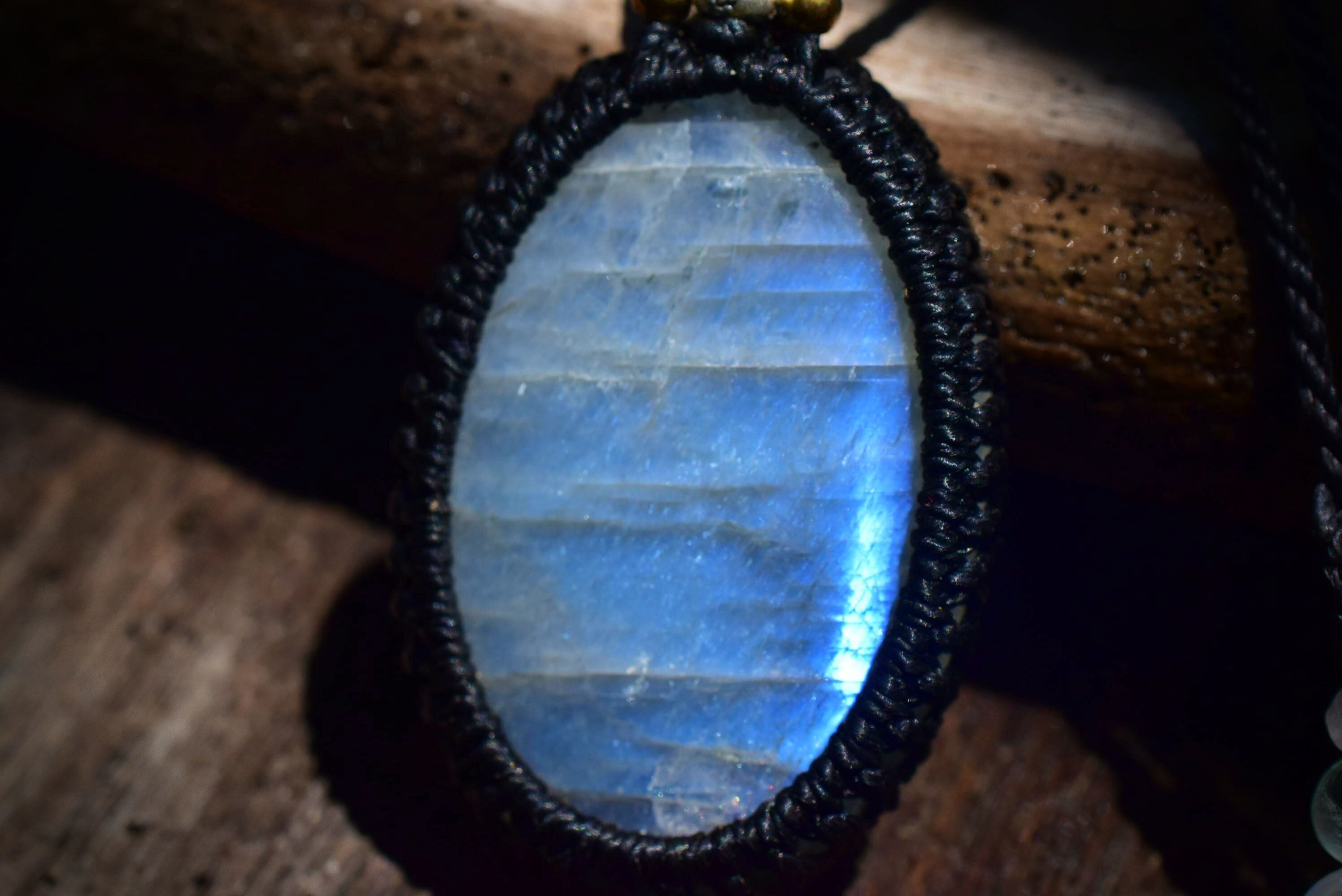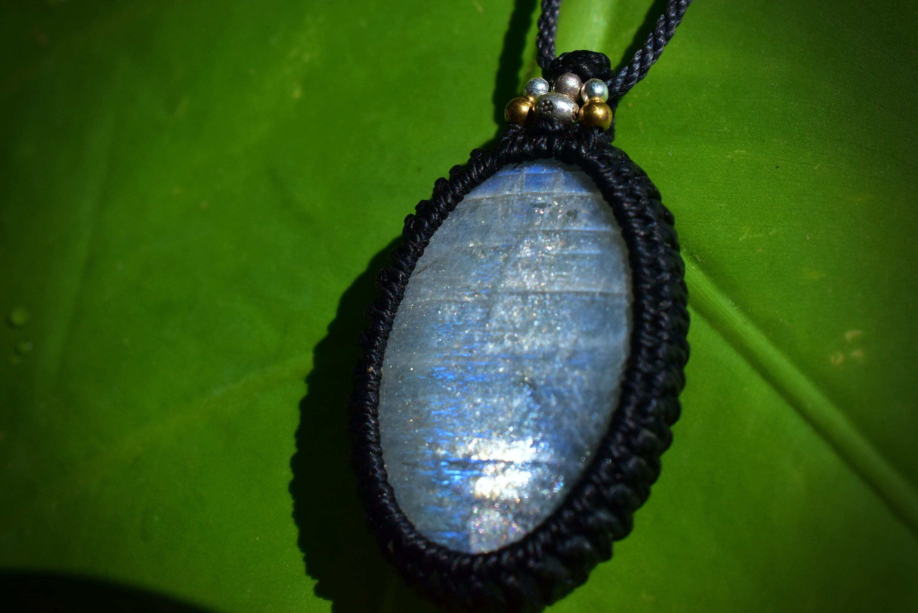 青の神秘★ブルームーンストーン シンプルマクラメペンダント moony001