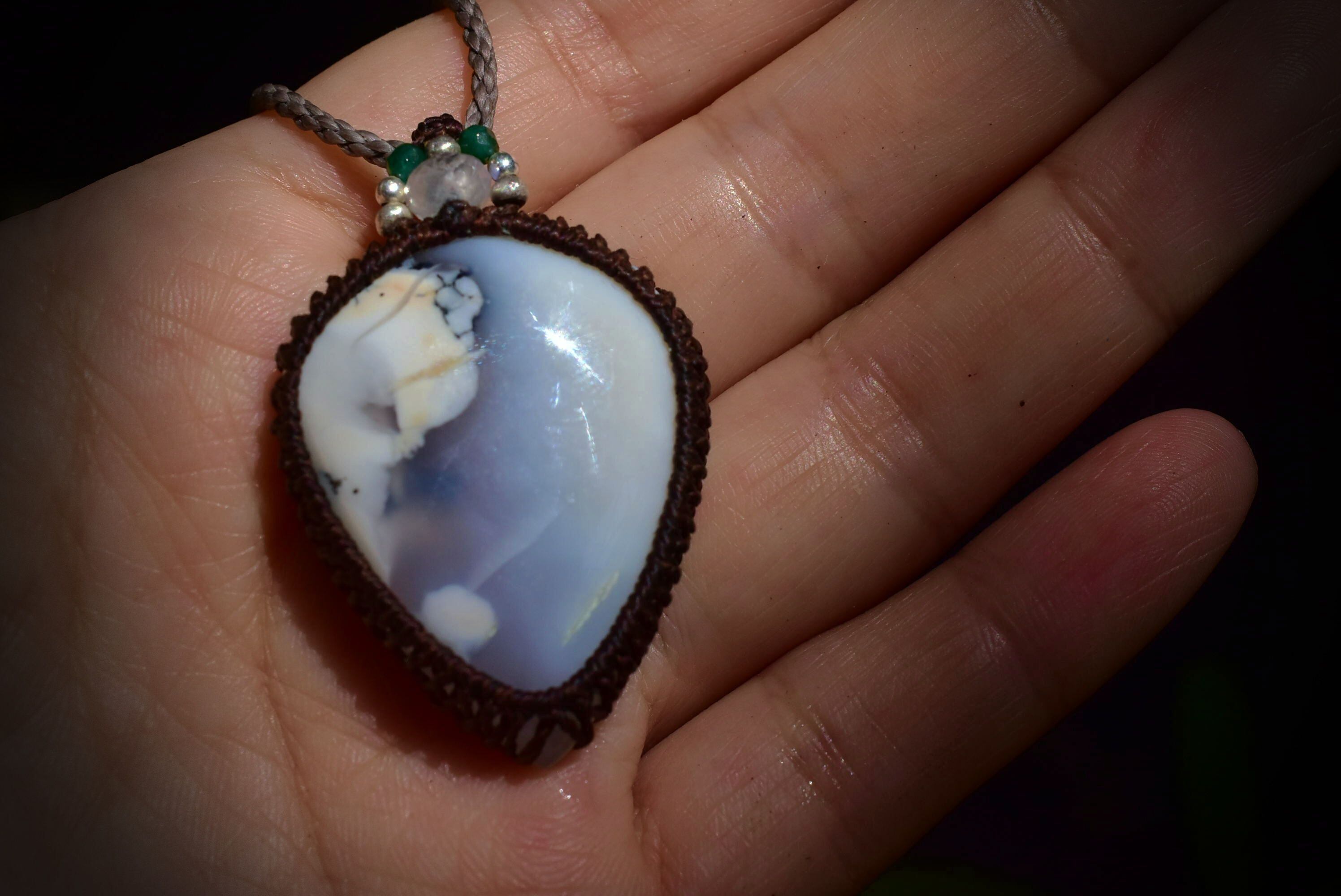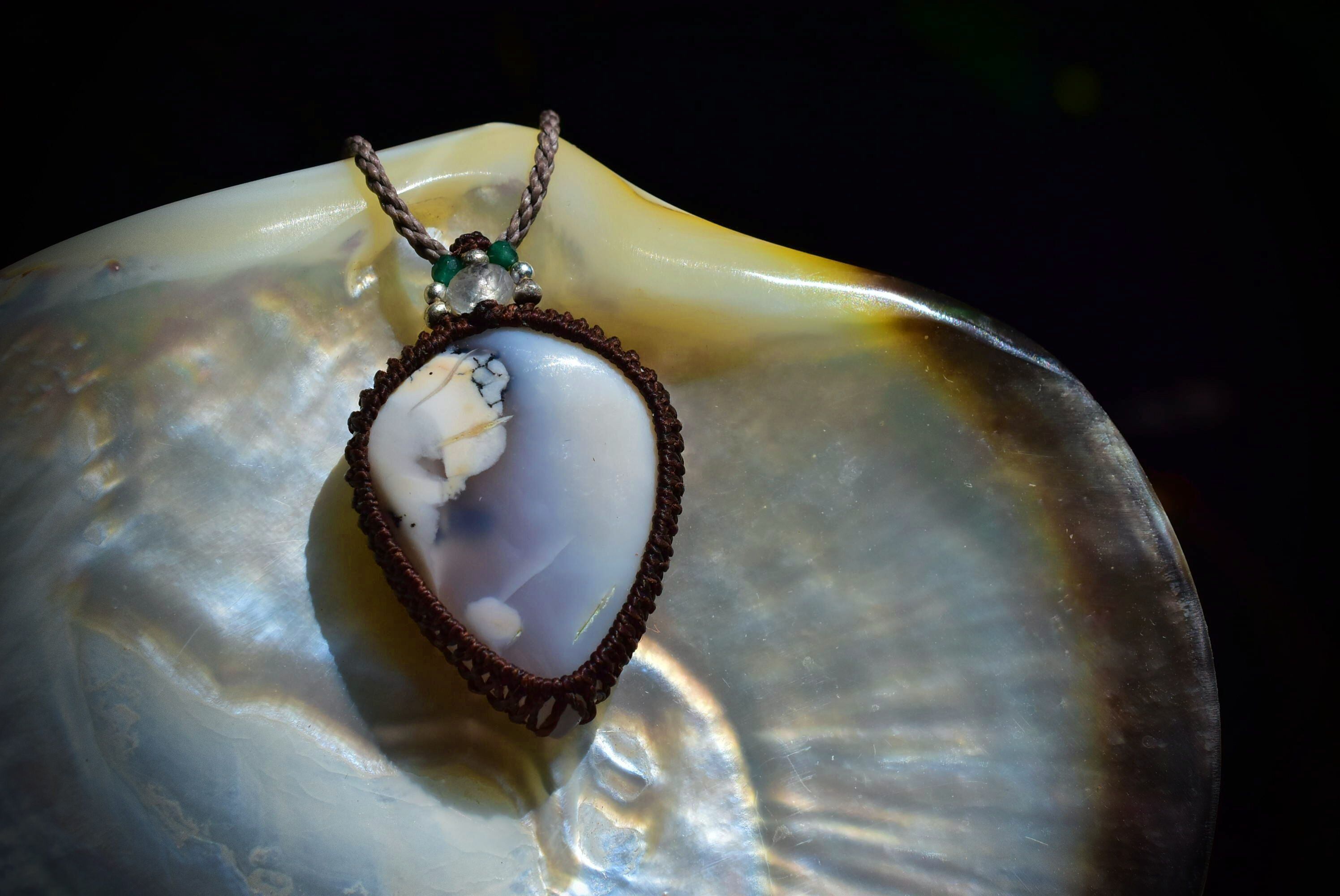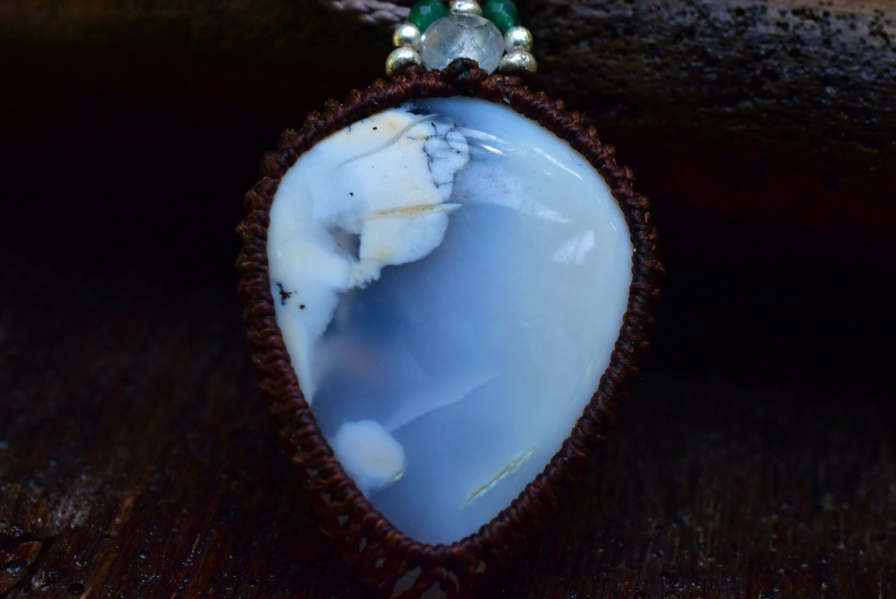 藍白グラデーション★ホワイトアゲート マクラメペンダント agety001