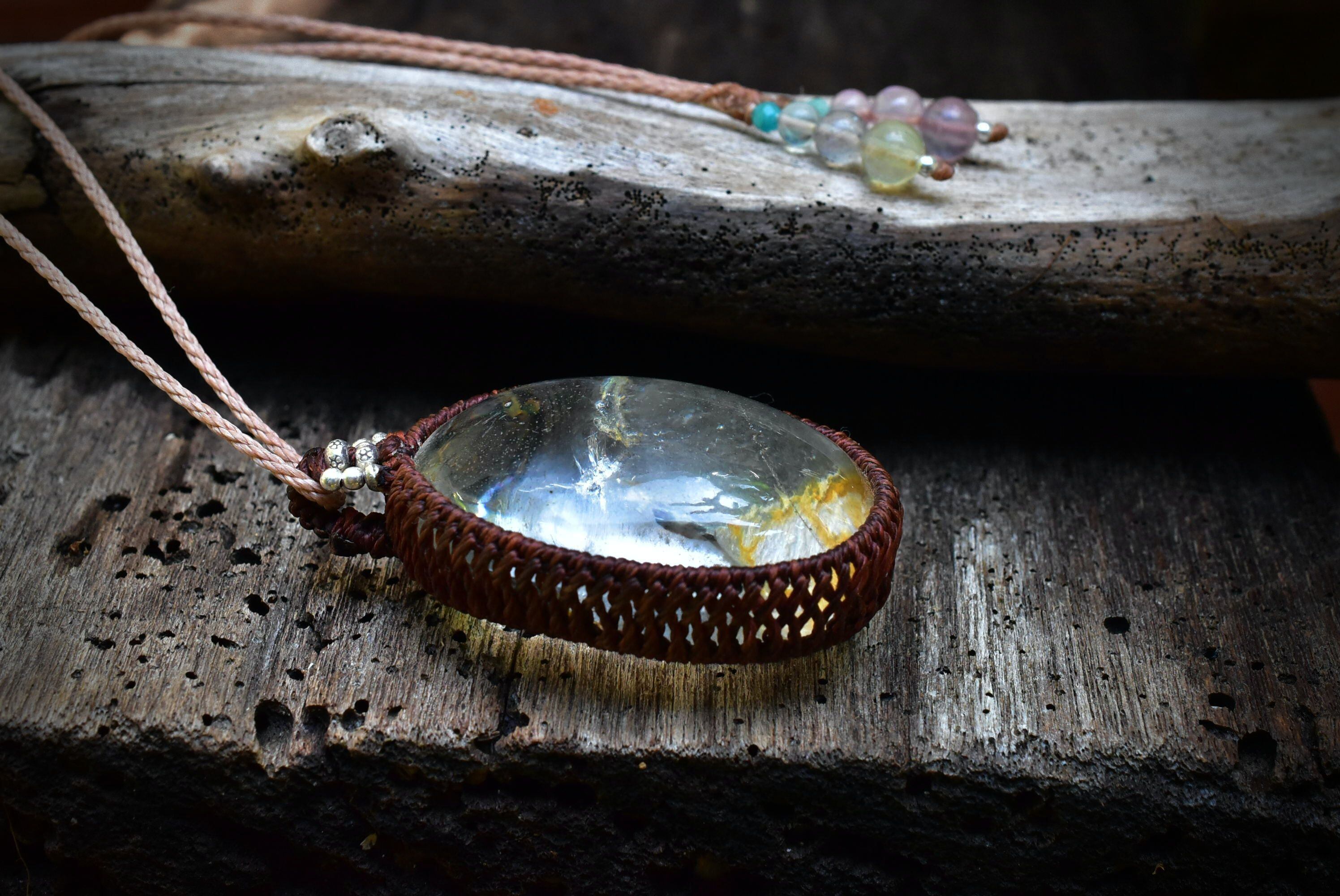 大粒★透き通る扇★ホワイトガーデンクォーツマクラメペンダント gary018