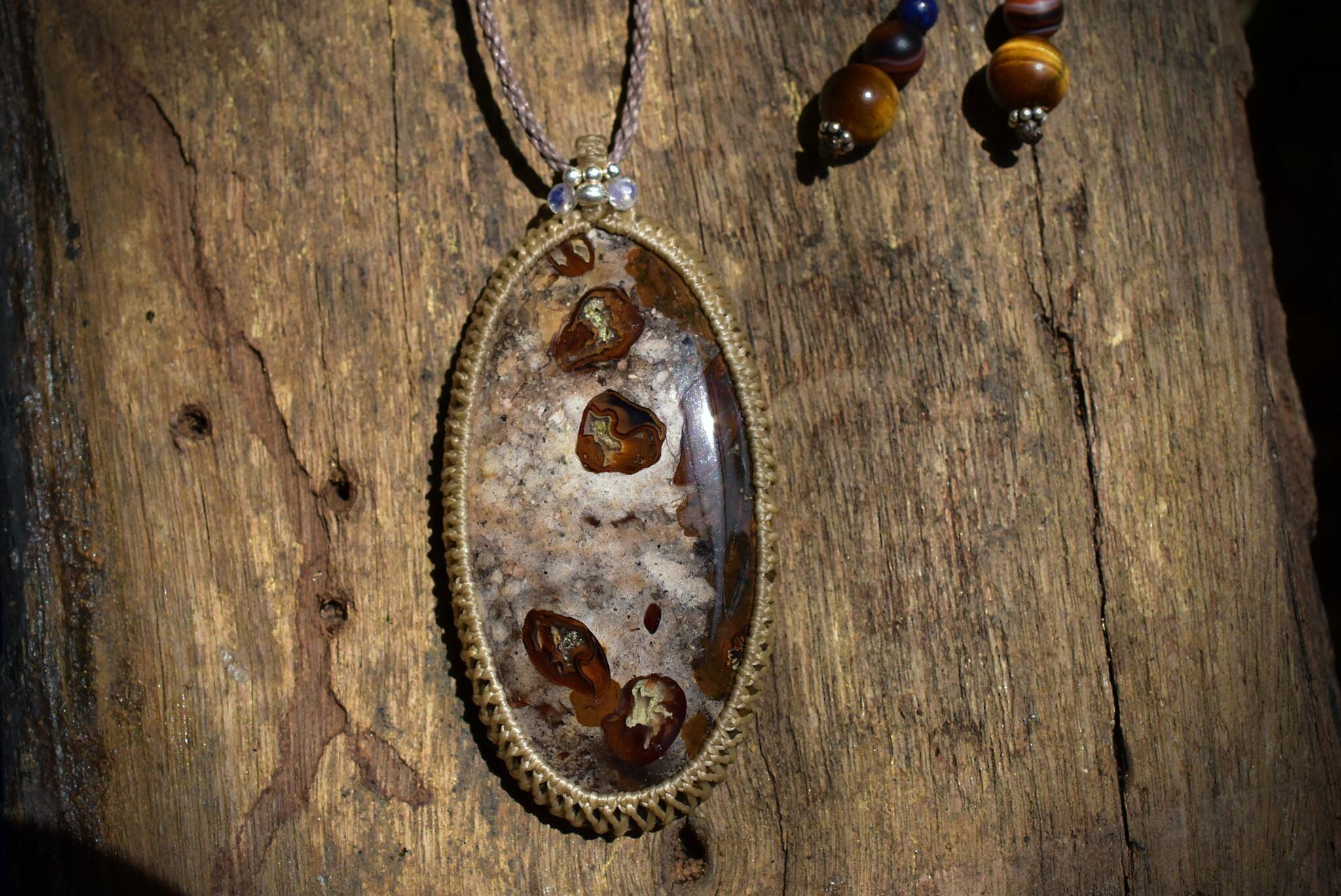 ★大粒★自然芸術★オーシャンジャスパー マクラメペンダント agety003