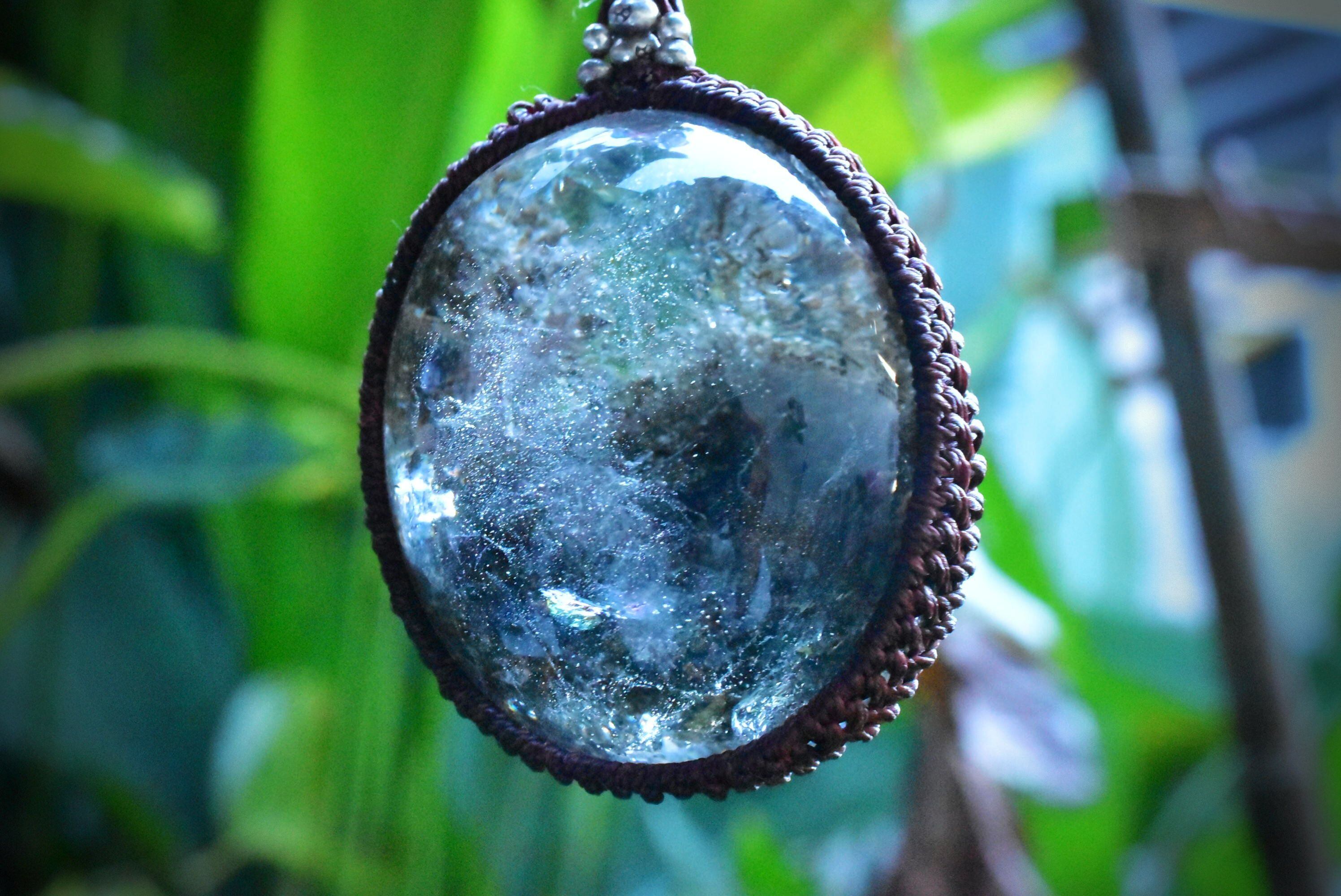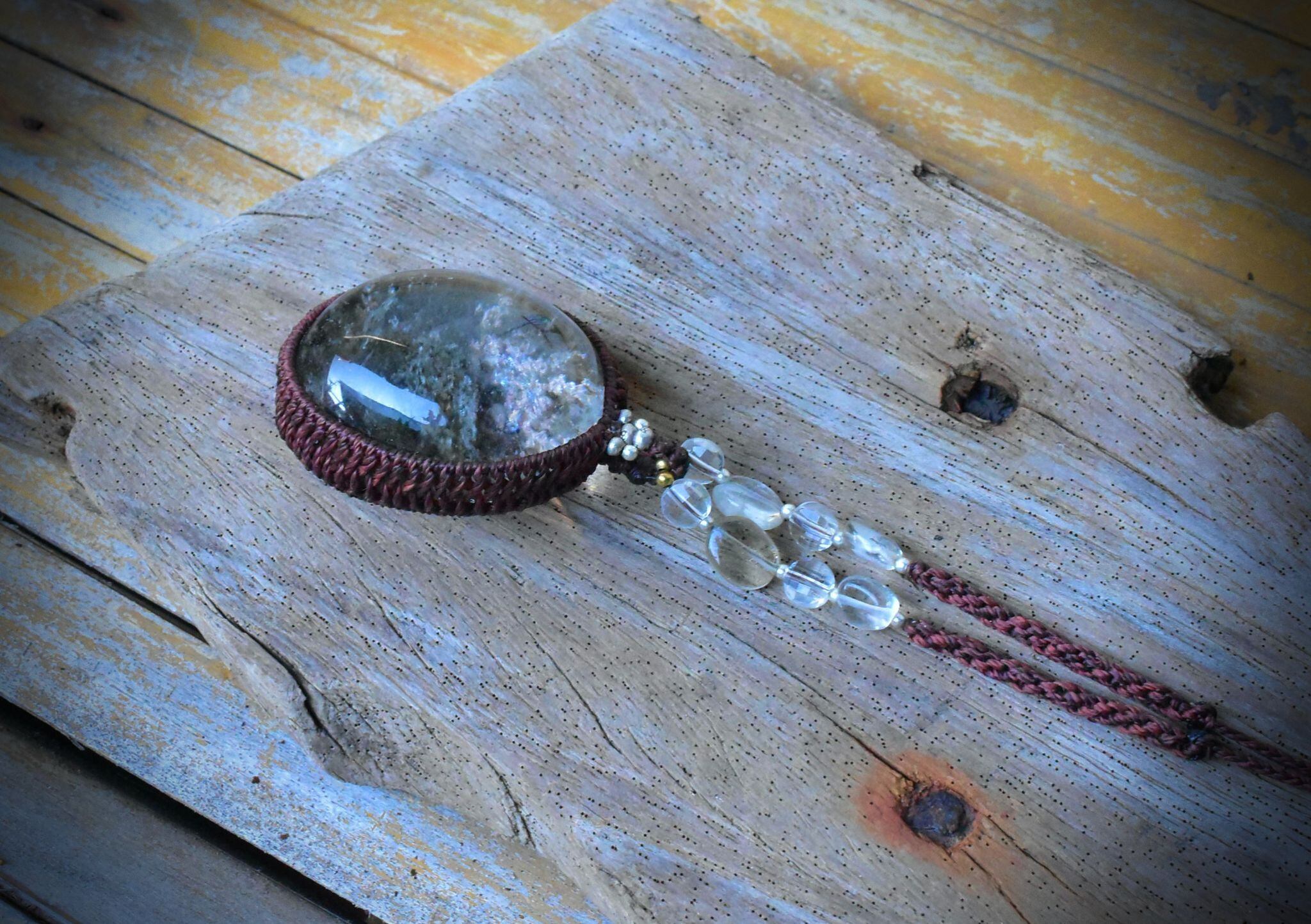 大粒★クローライト★ガーデンクォーツマクラメペンダント gy019