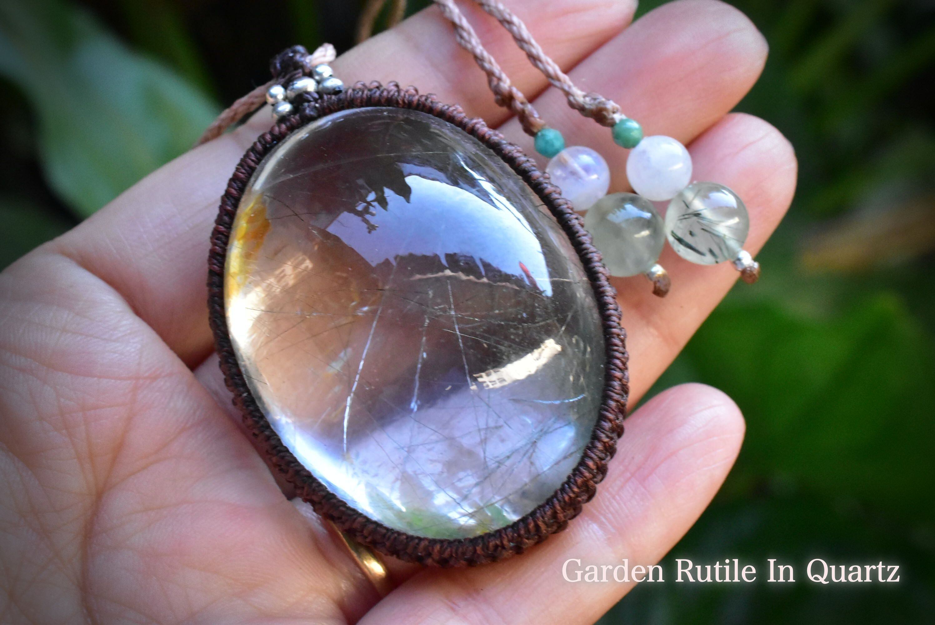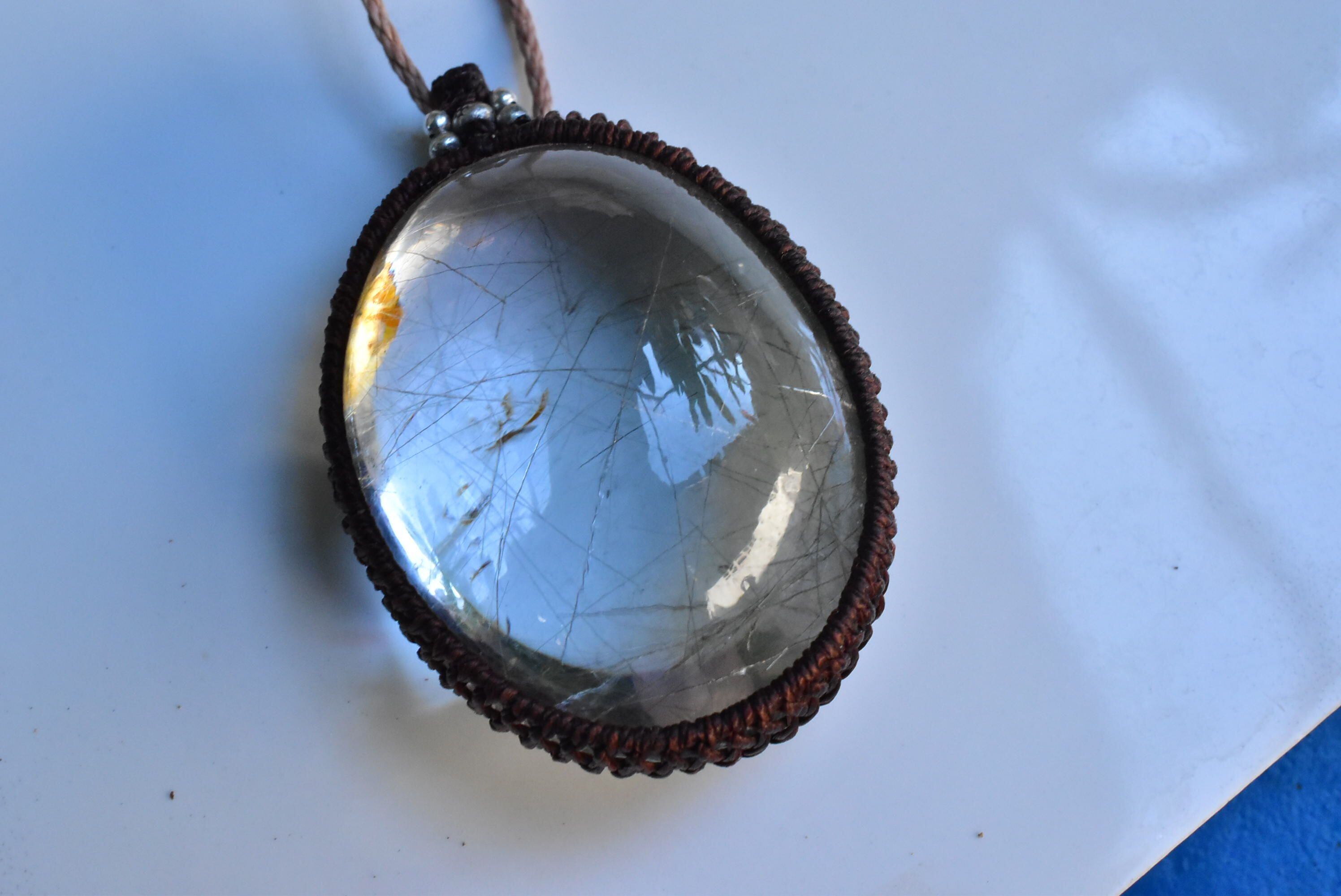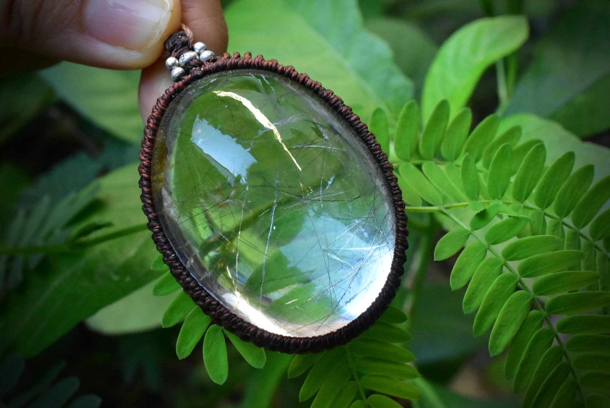 特大★プラチナシルバー針★大きなルチルインクォーツ マクラメペンダント gy020