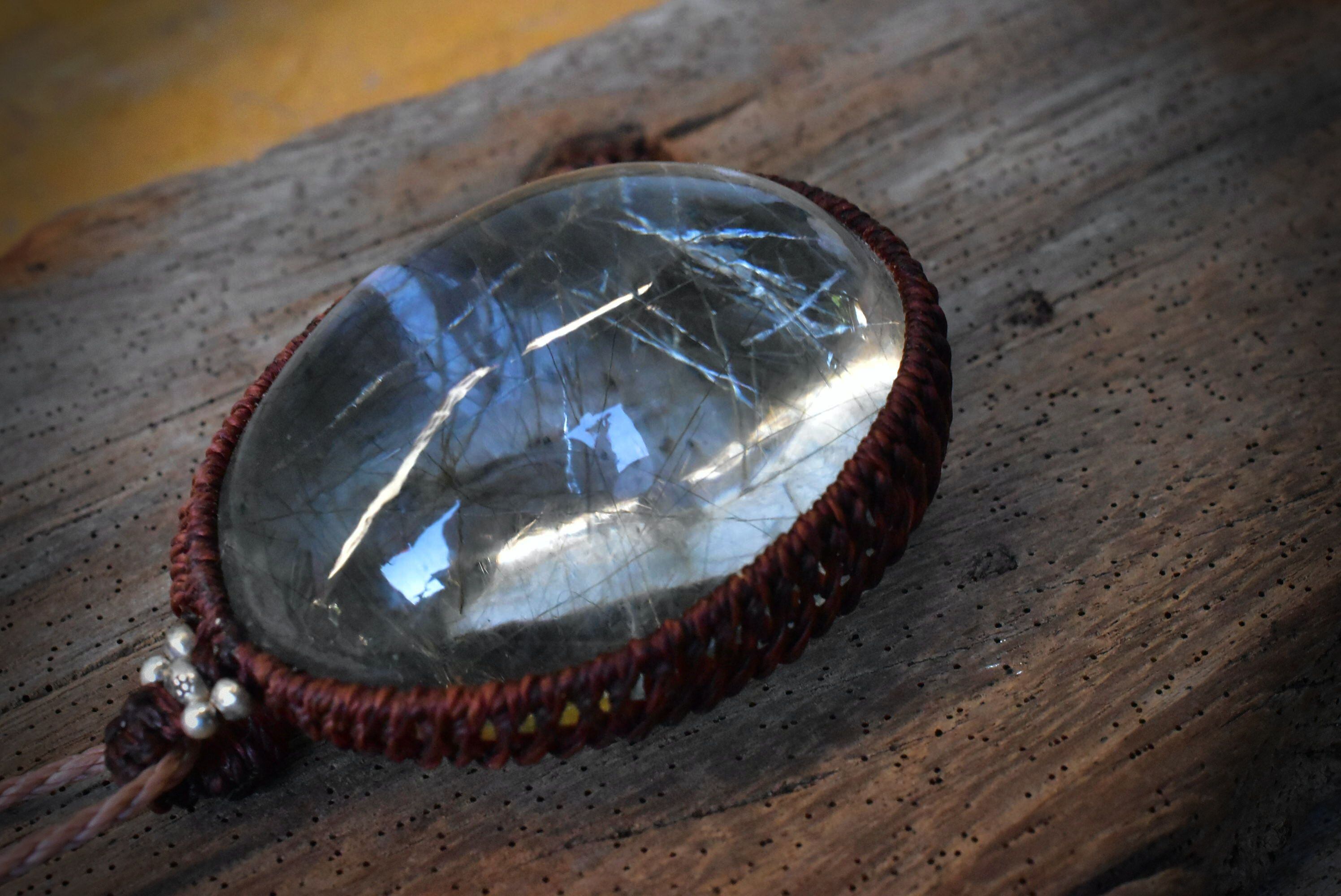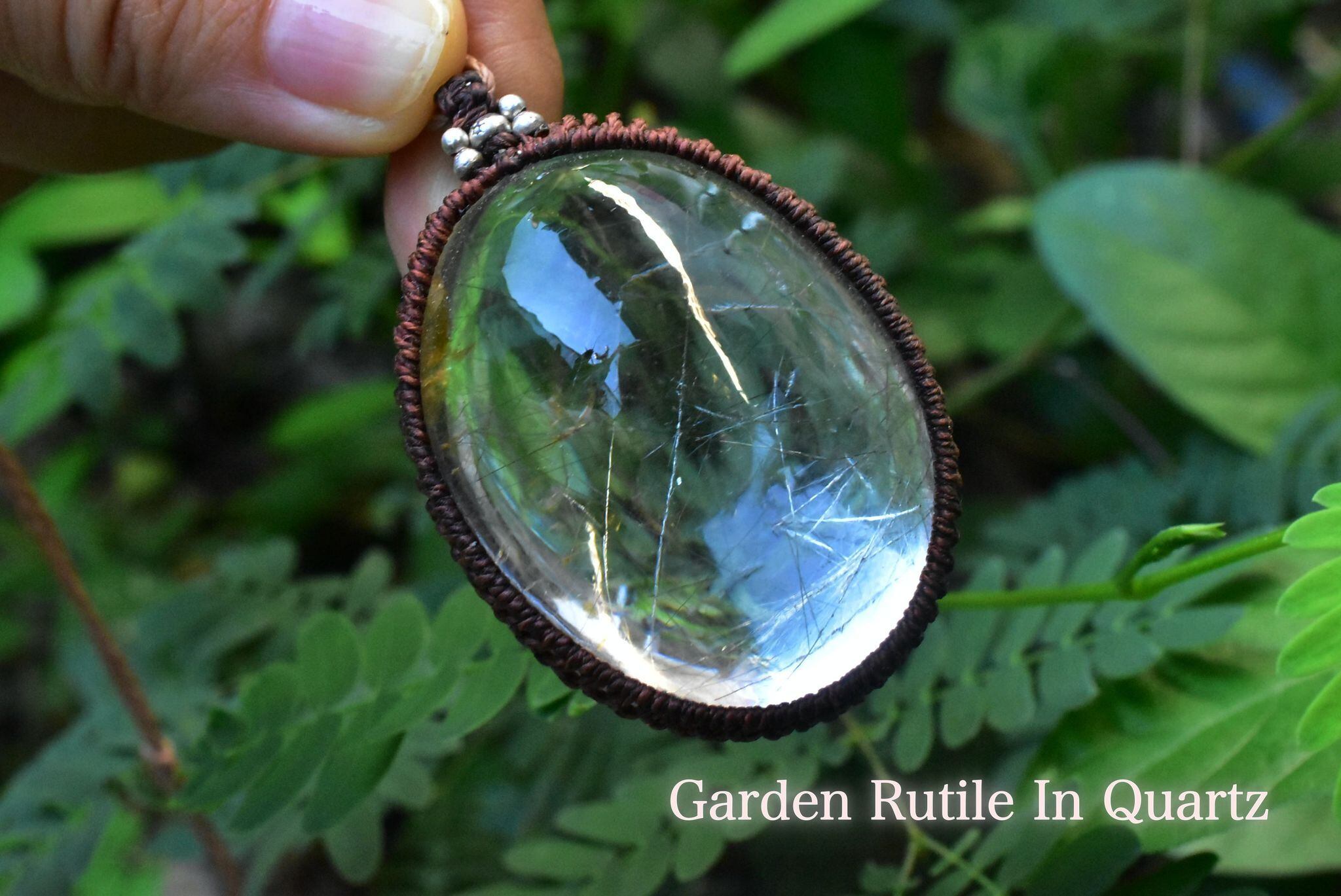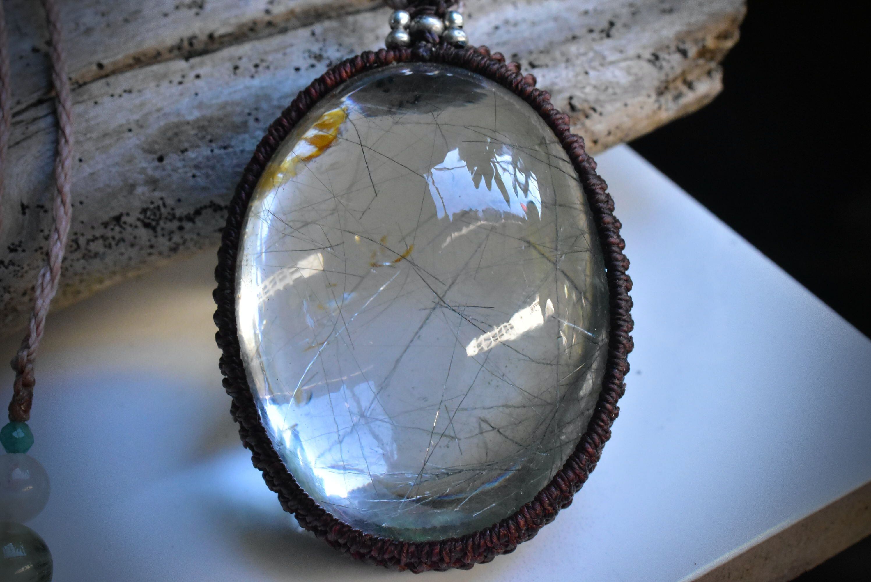 特大★プラチナシルバー針★大きなルチルインクォーツ マクラメペンダント gy020