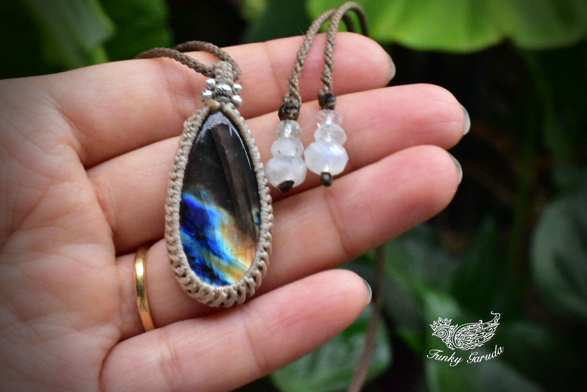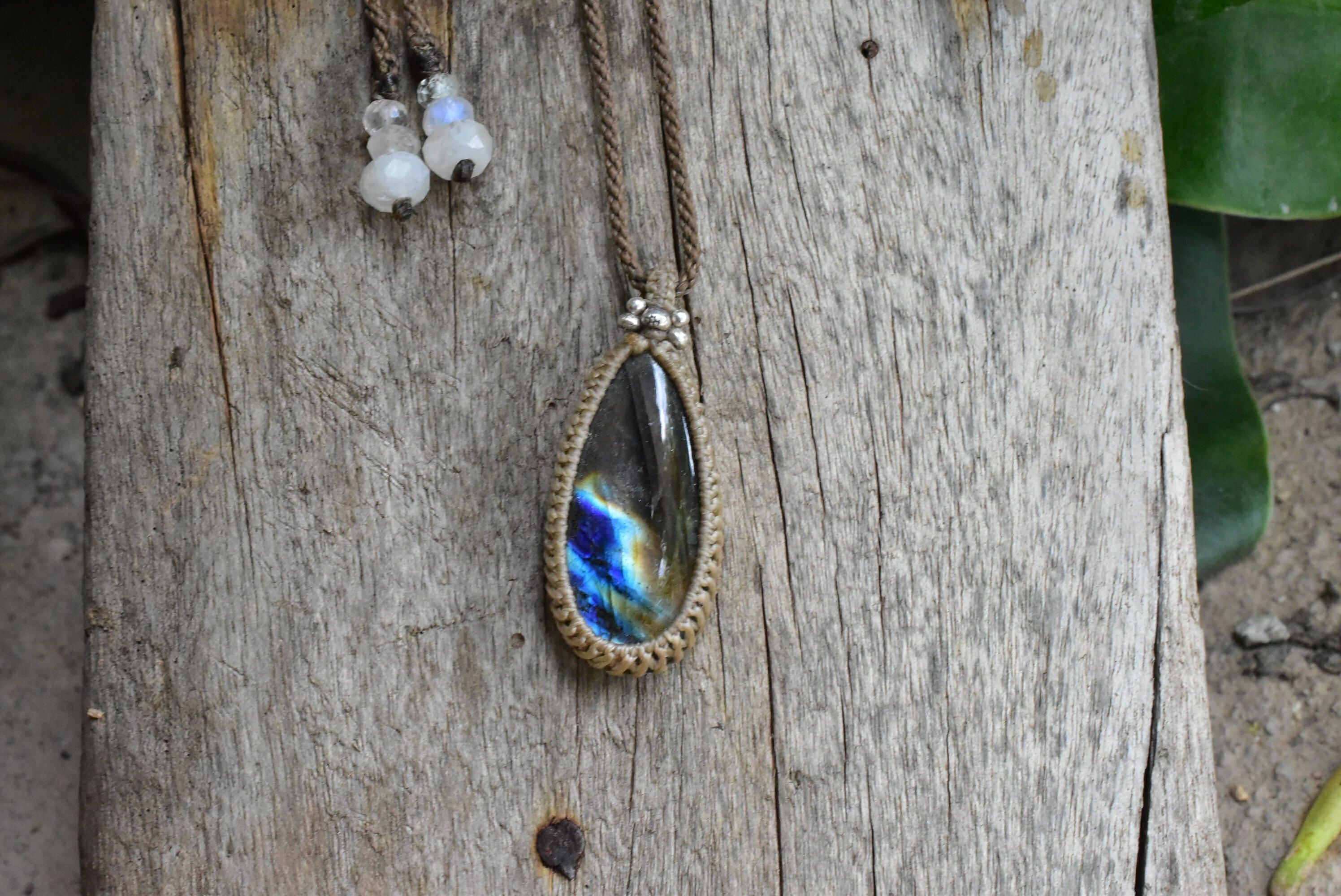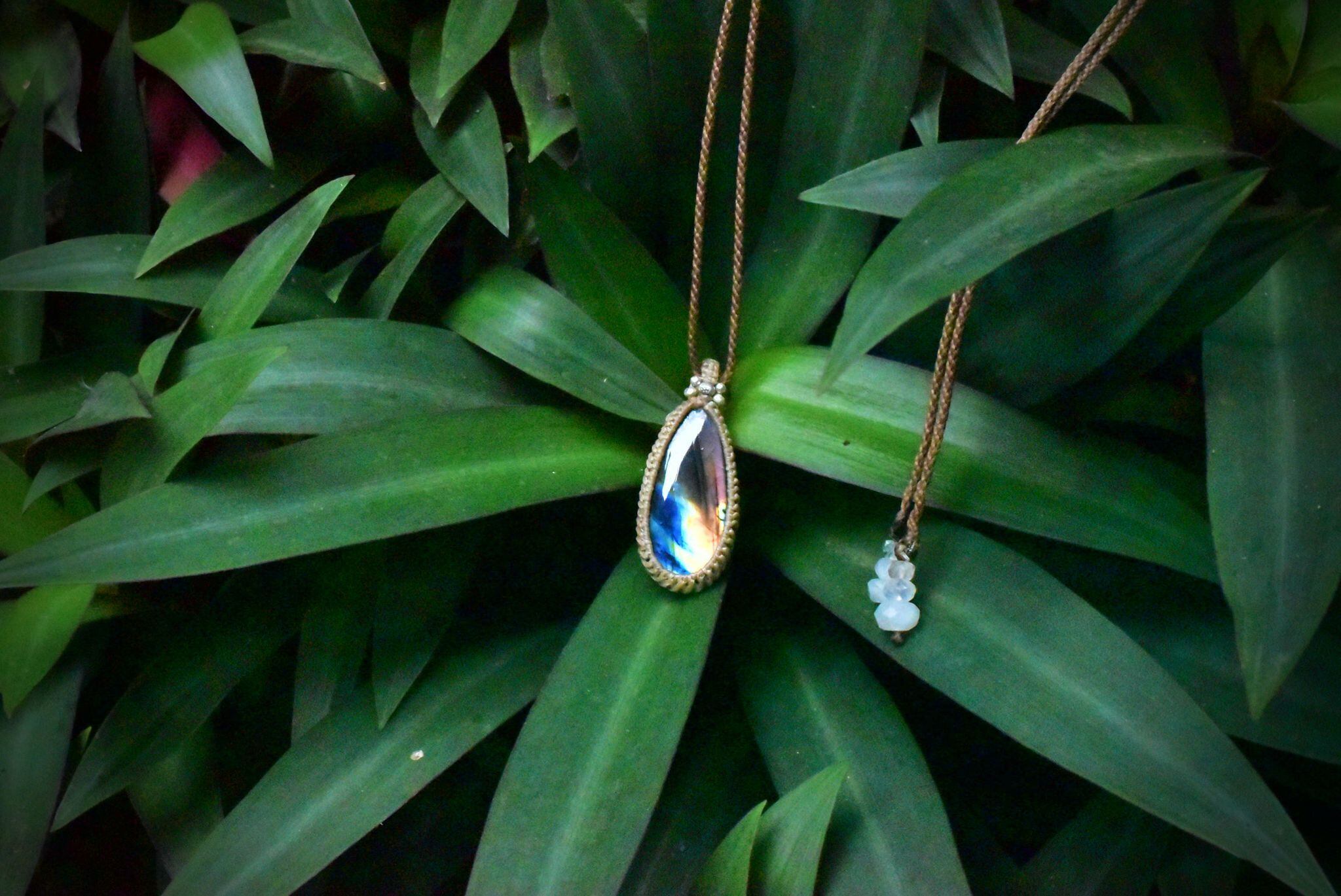 そんな華やかな夜空をイメージさせる天然石をマクラメペンダントに仕上げました。