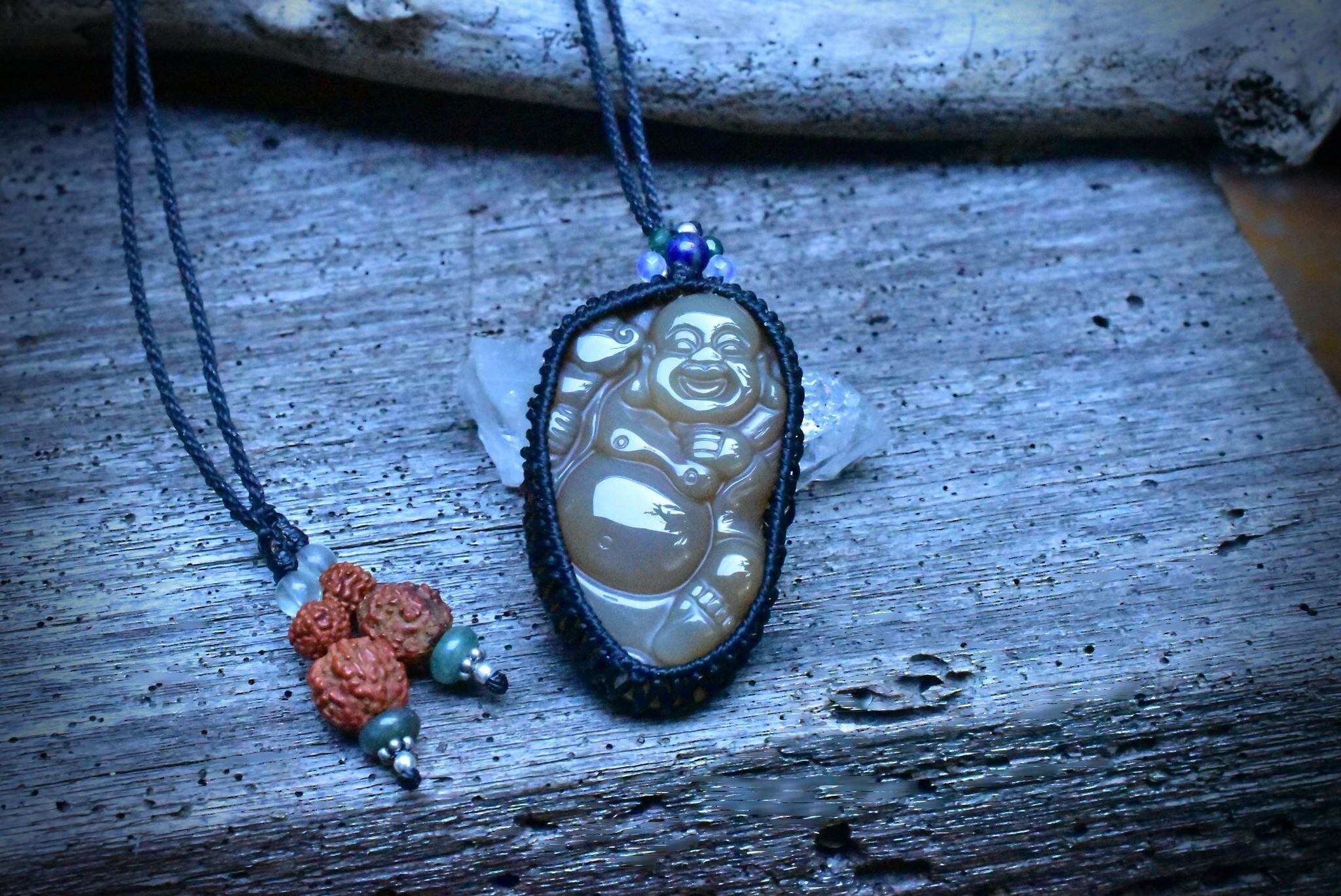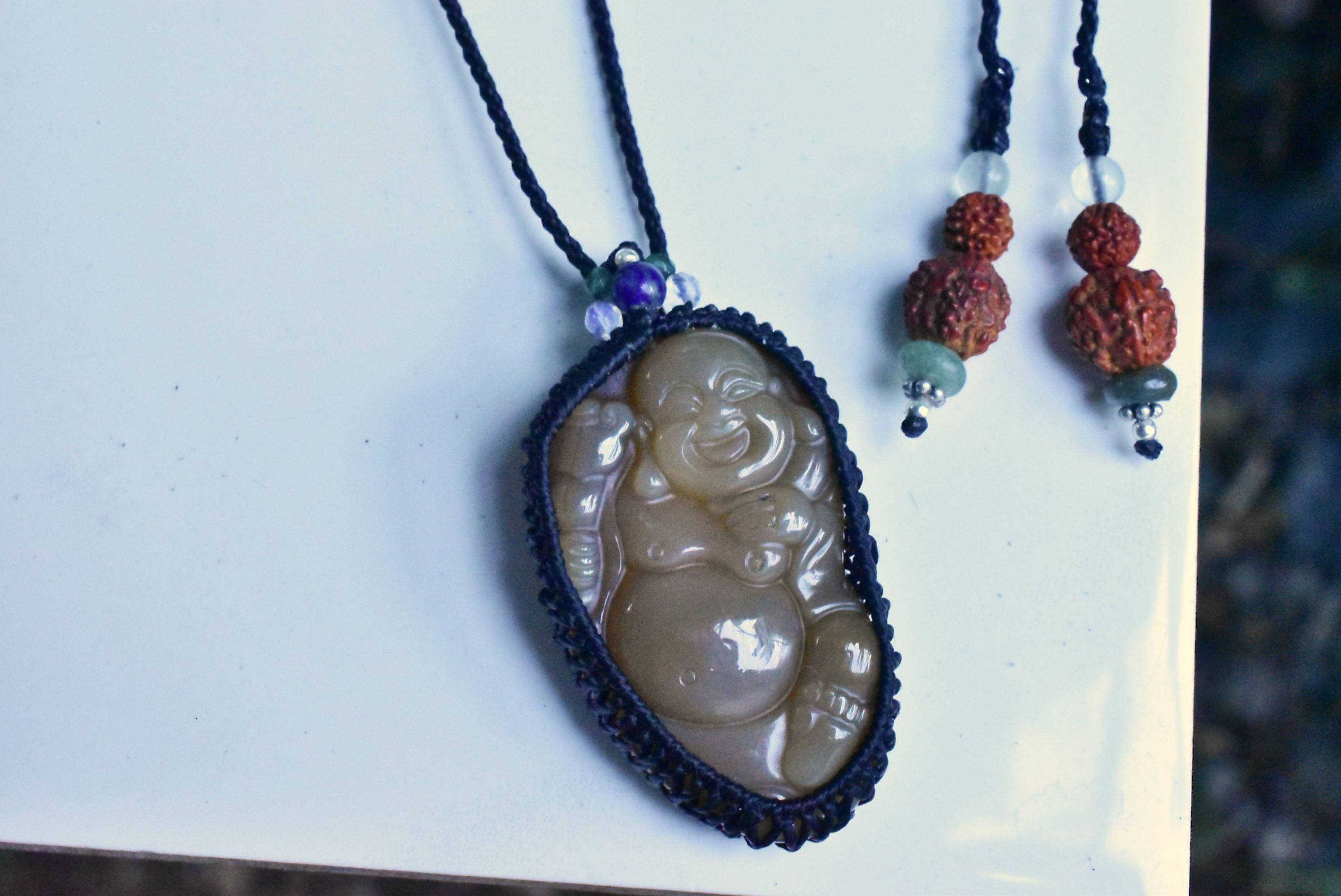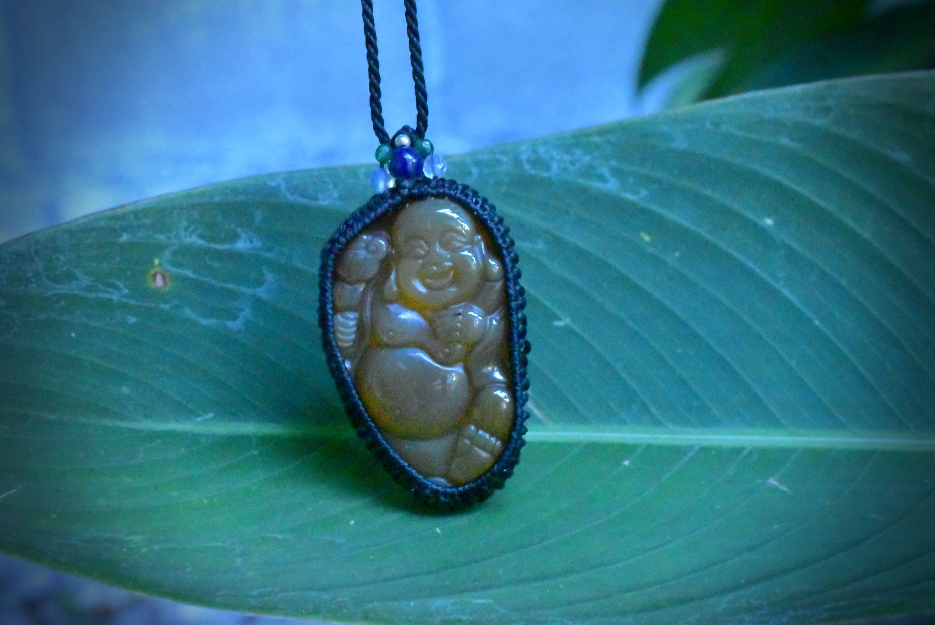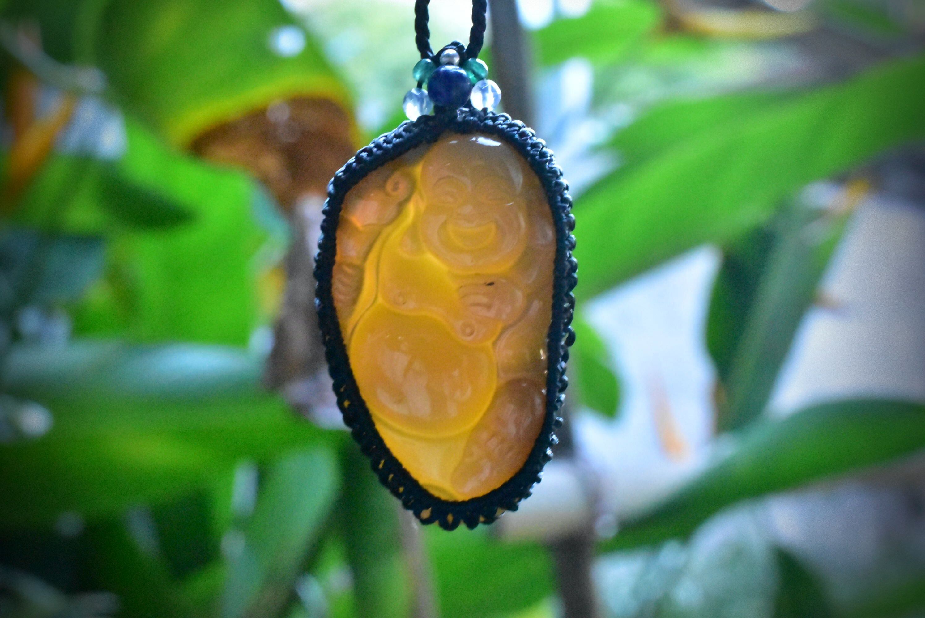 カービングアゲート★仏陀さま マクラメペンダント agey001