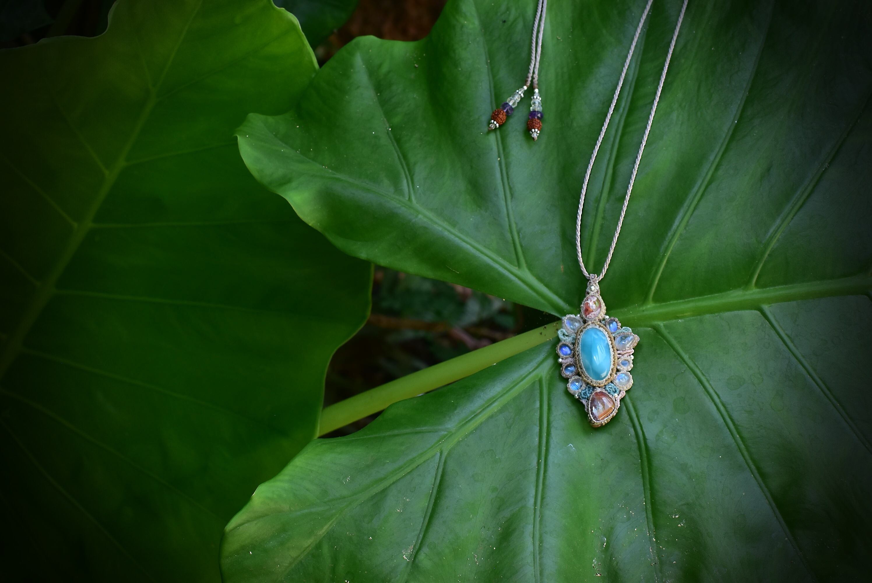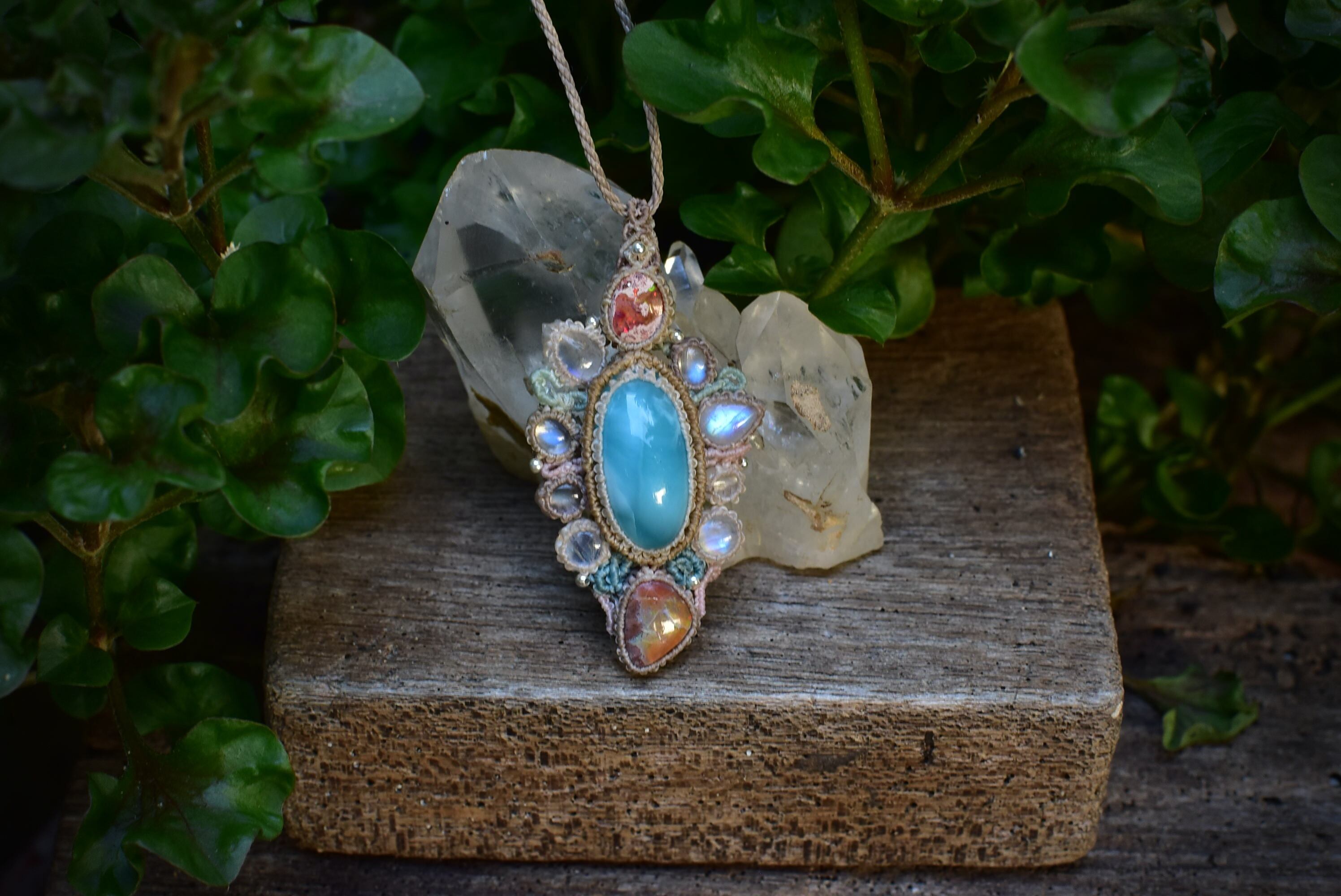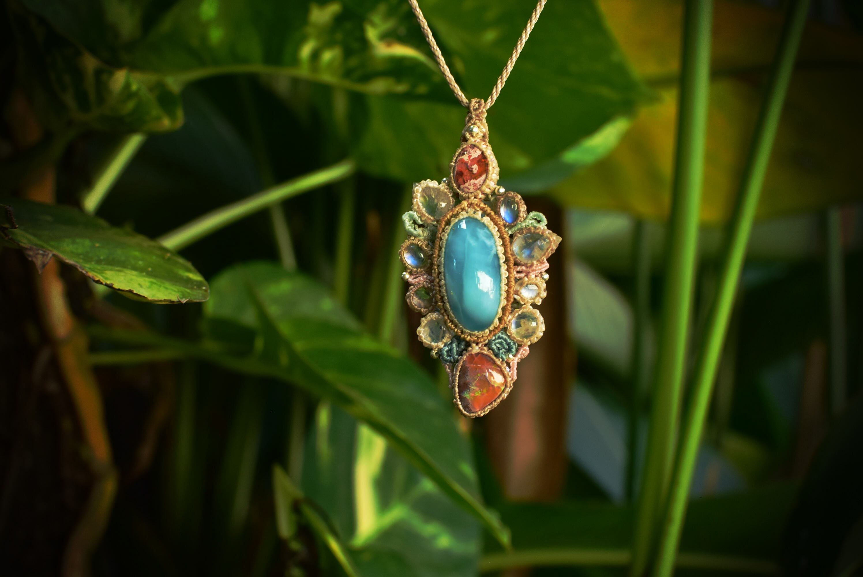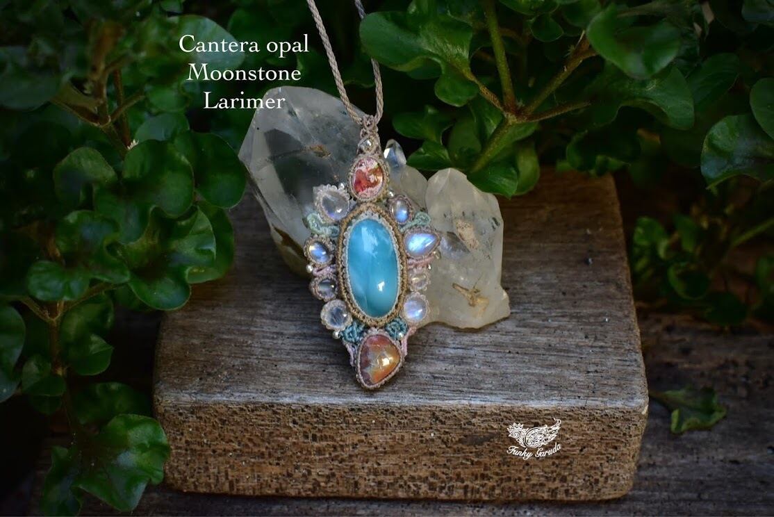 精霊の花★ラリマーとカンテラオパール マクラメペンダントlari038