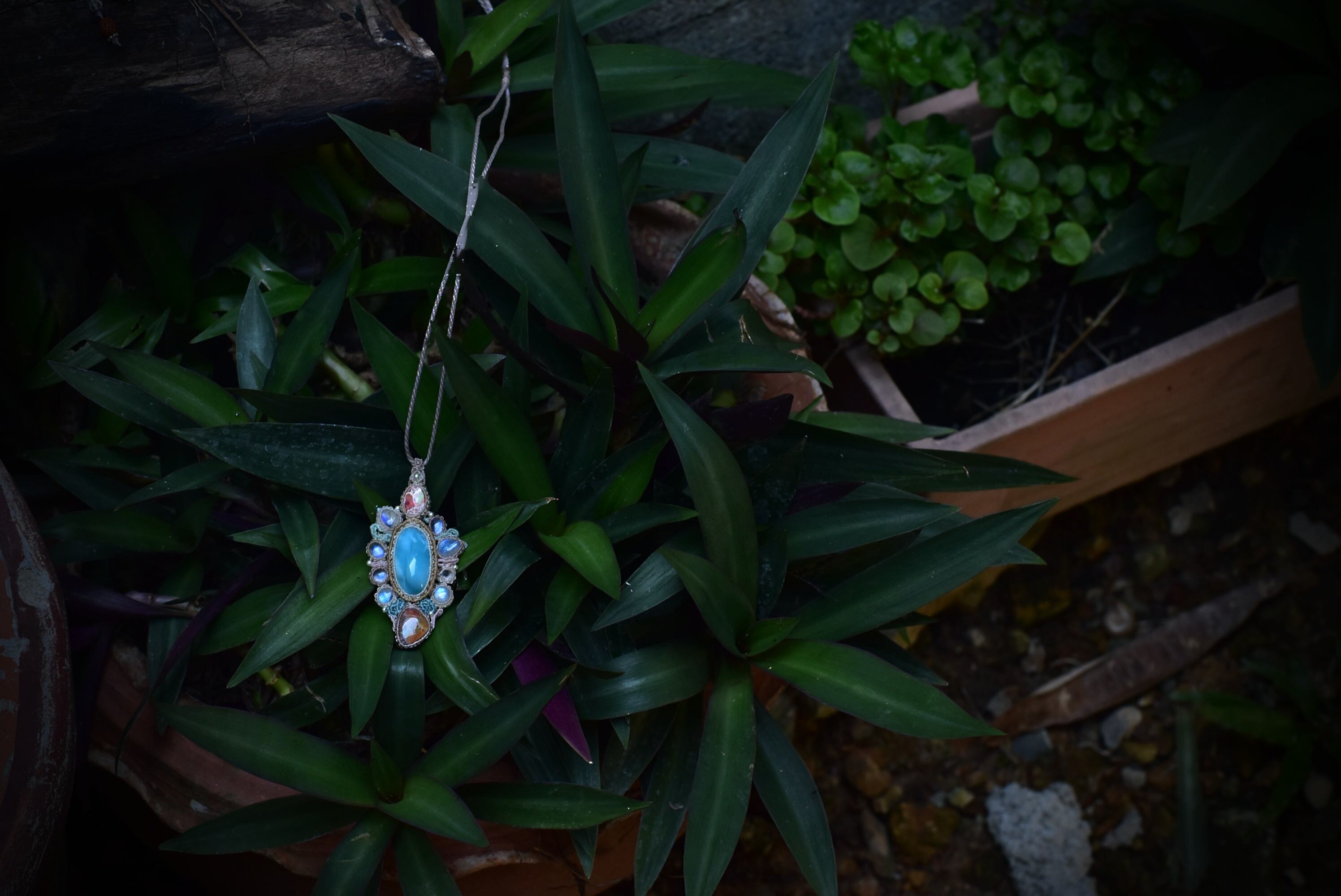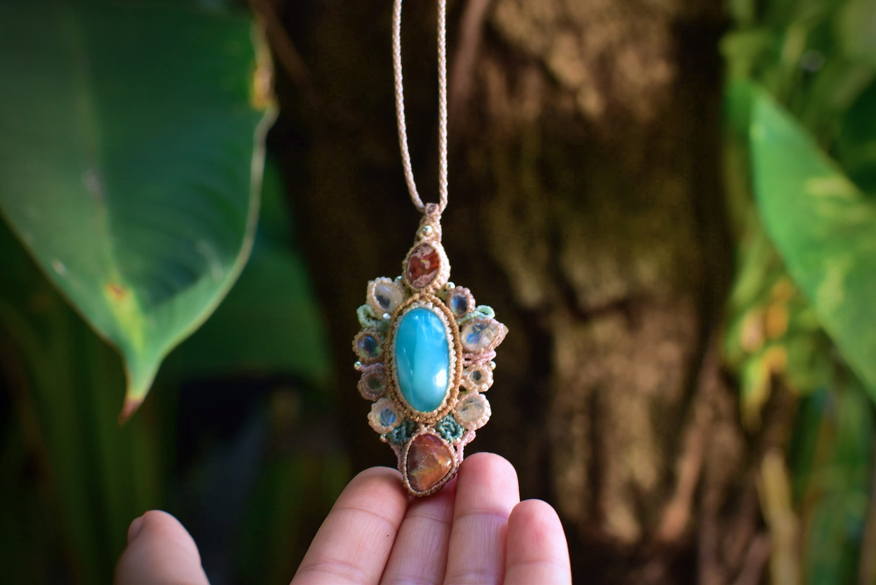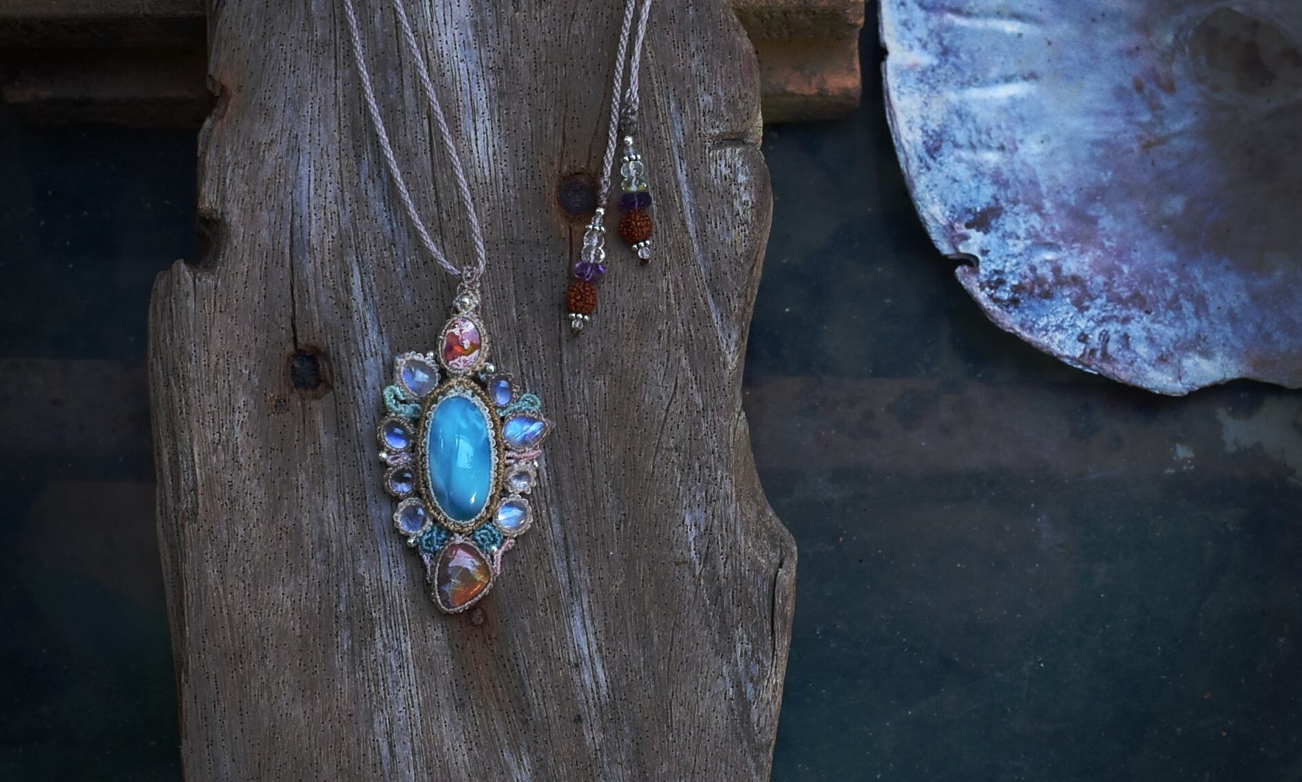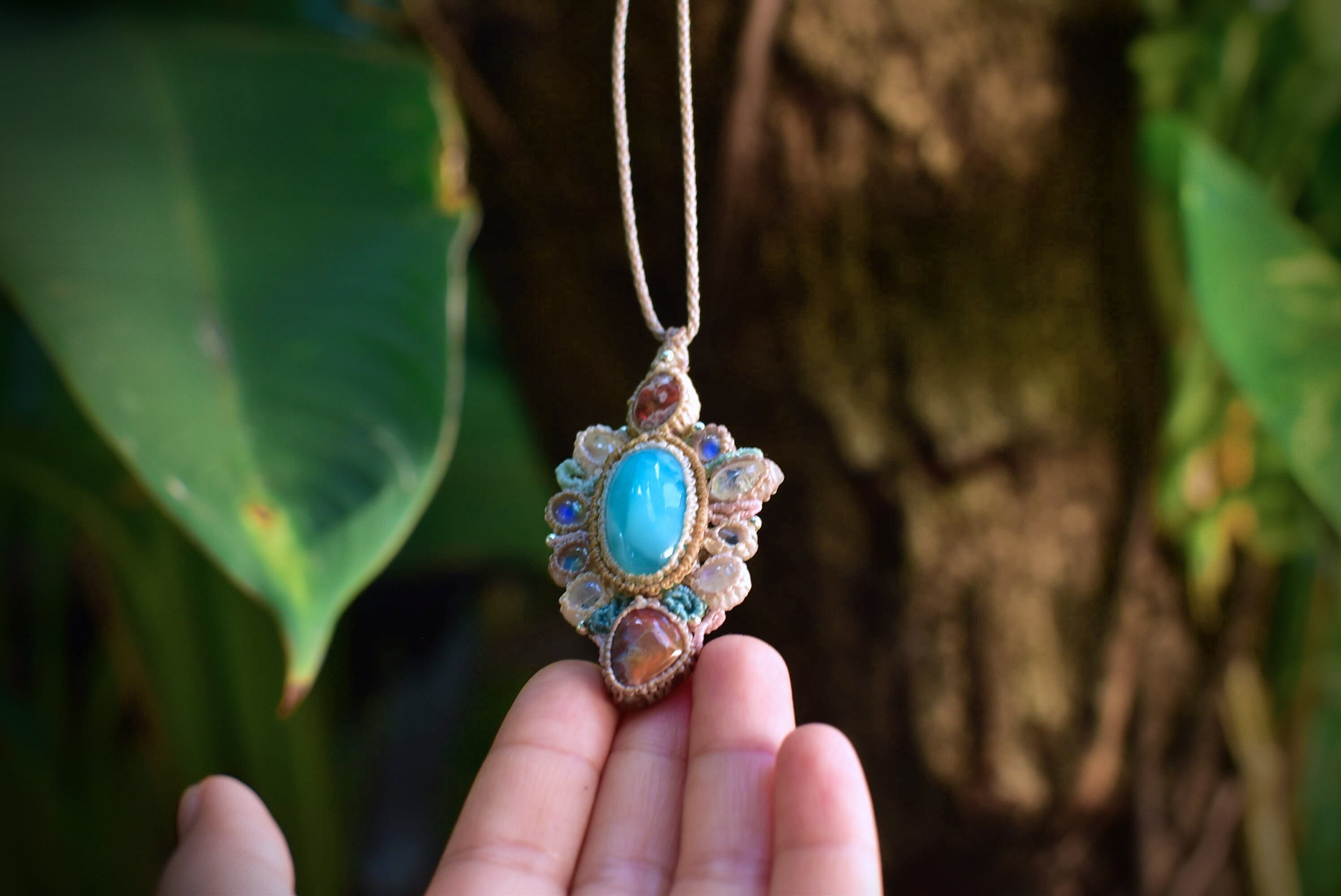 精霊の花★ラリマーとカンテラオパール マクラメペンダントlari038