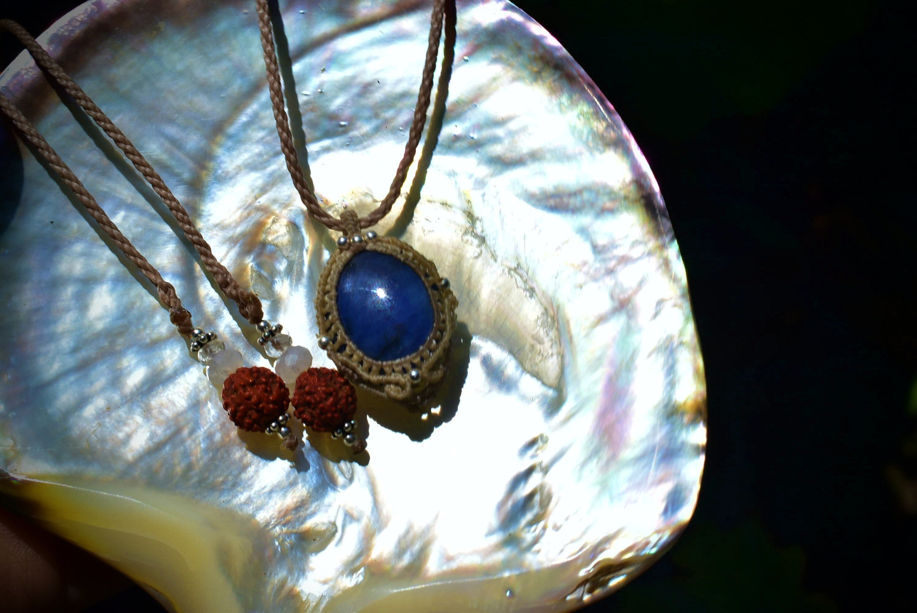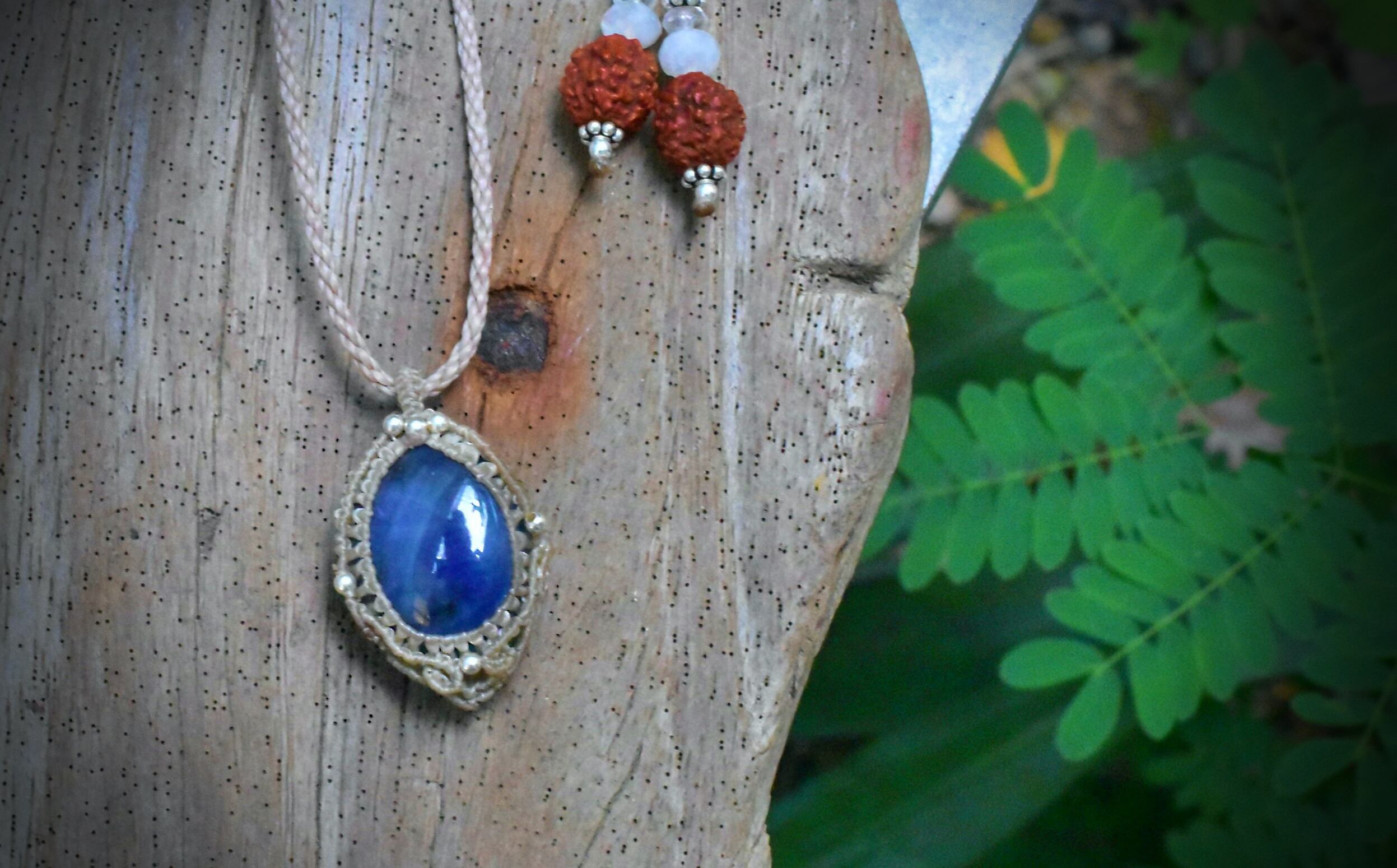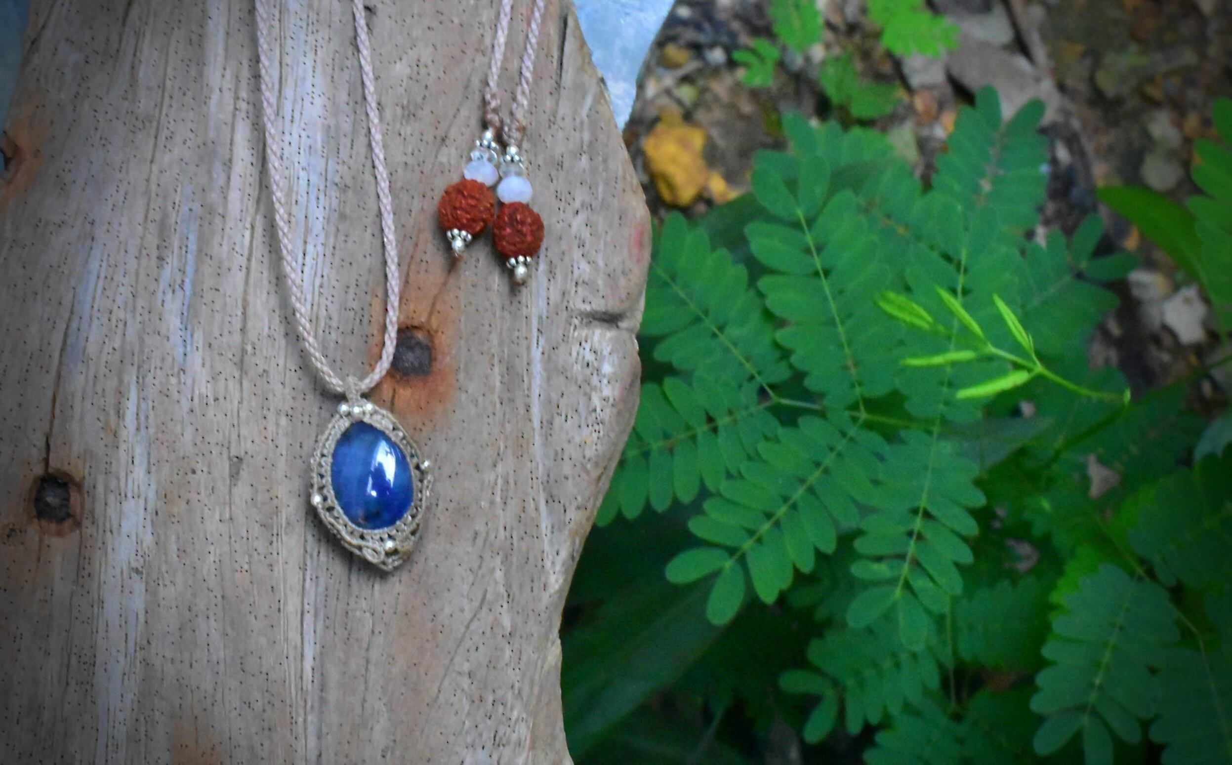 石の周りをアンティークなイメージでマクラメ編み装飾を施し